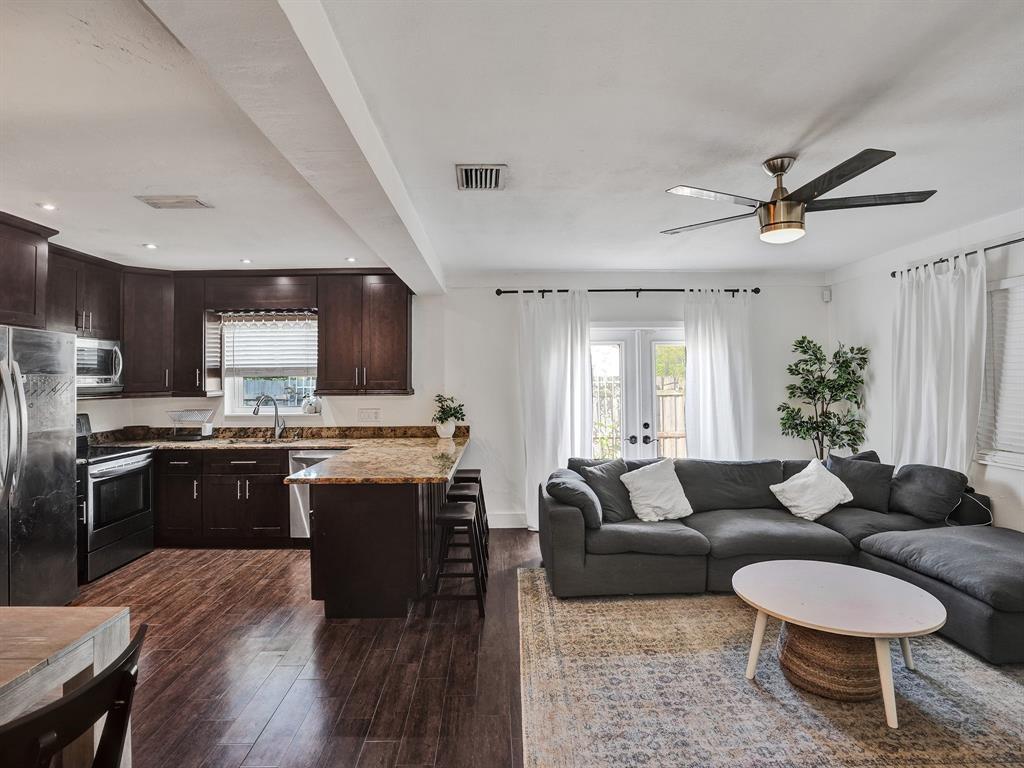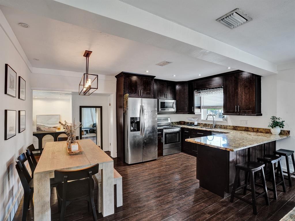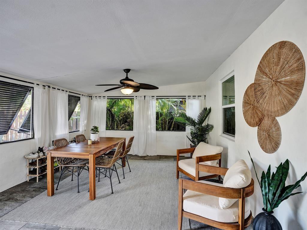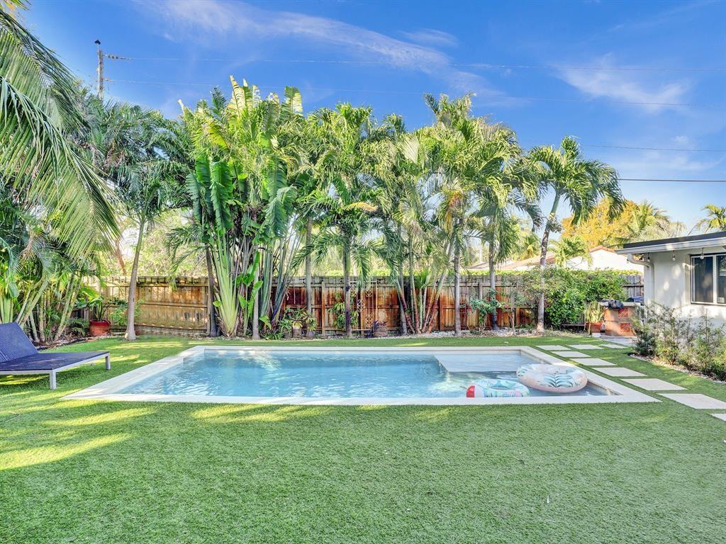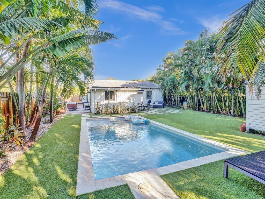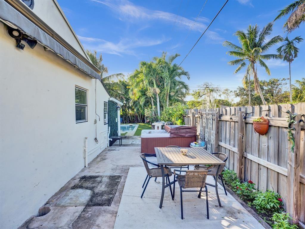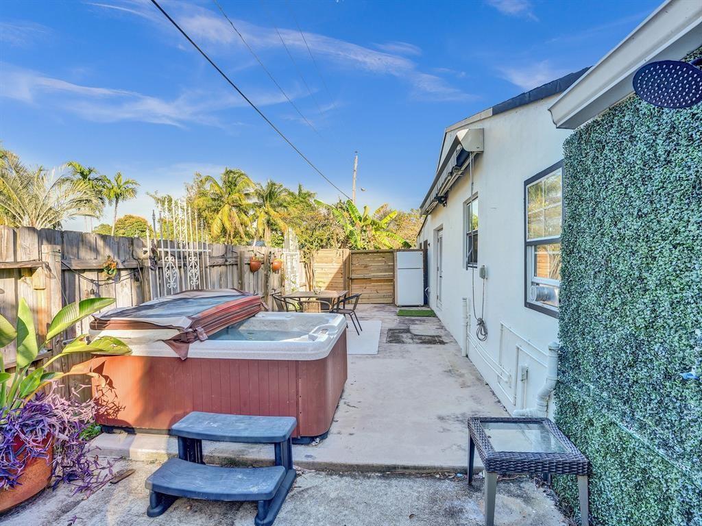 This is a 3-bedroom, 2-bathroom POOL HOME with a tropical oasis in the fenced-in backyard, complete with a hot tub. It features a private covered front patio ideal for entertaining, an updated kitchen with granite countertops, soft-close cabinets, and stainless steel appliances. The bathrooms have been updated, and the home includes porcelain tile throughout. The third bedroom is versatile and can serve as an in-law suite. Additional highlights include impact windows, updated electrical, and a shed for extra storage. The property is conveniently located near Wilton Manors, downtown, beaches, shops, restaurants, and the airport.
