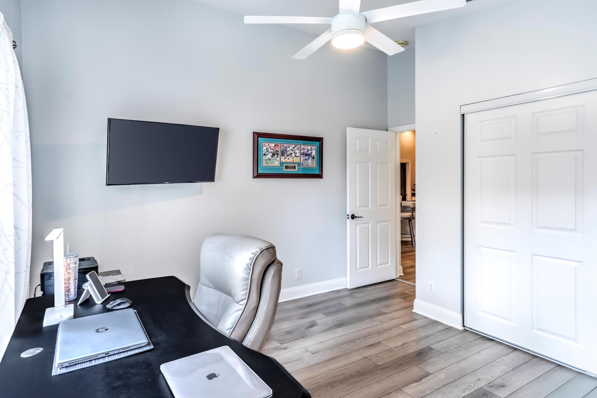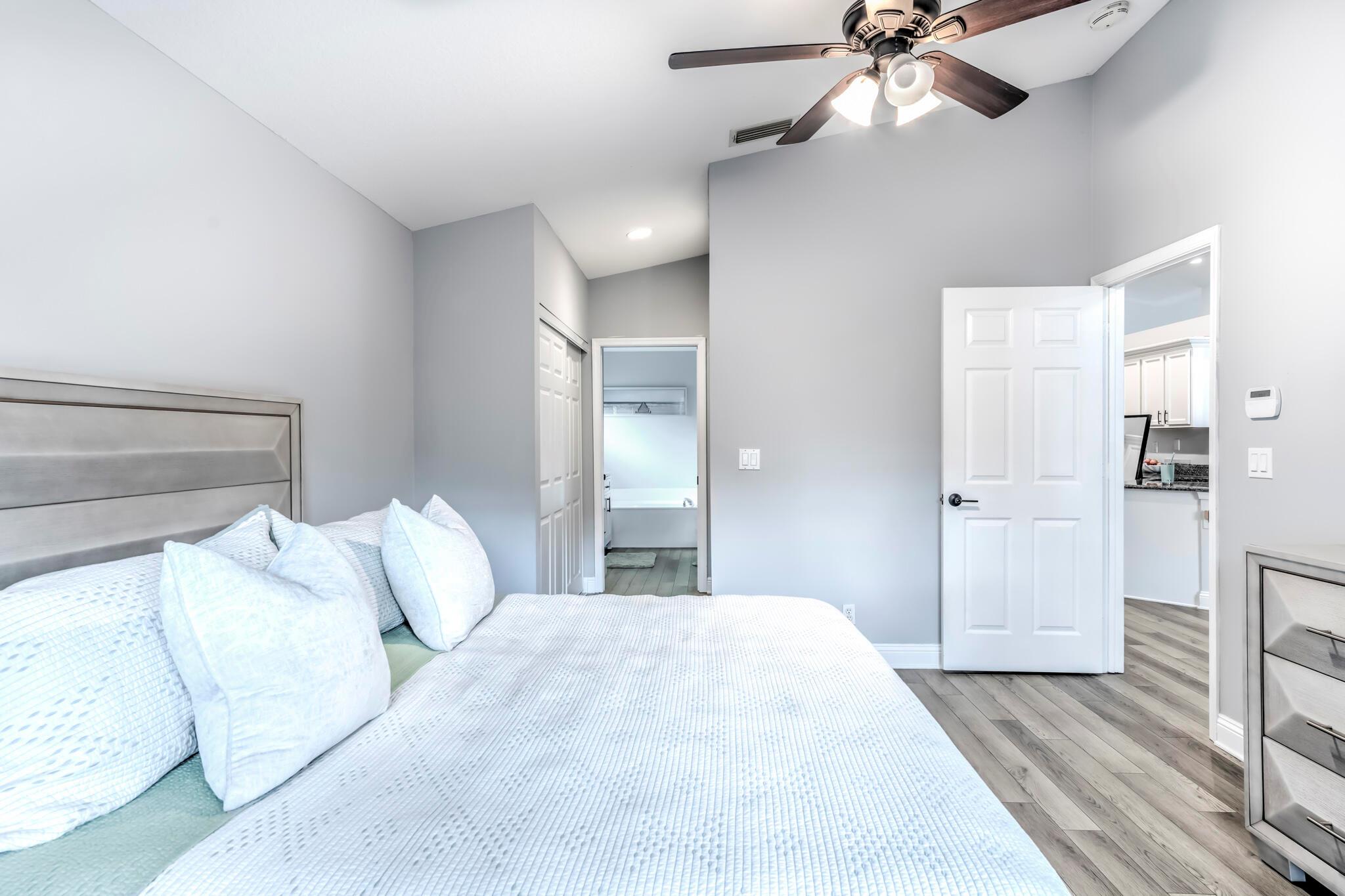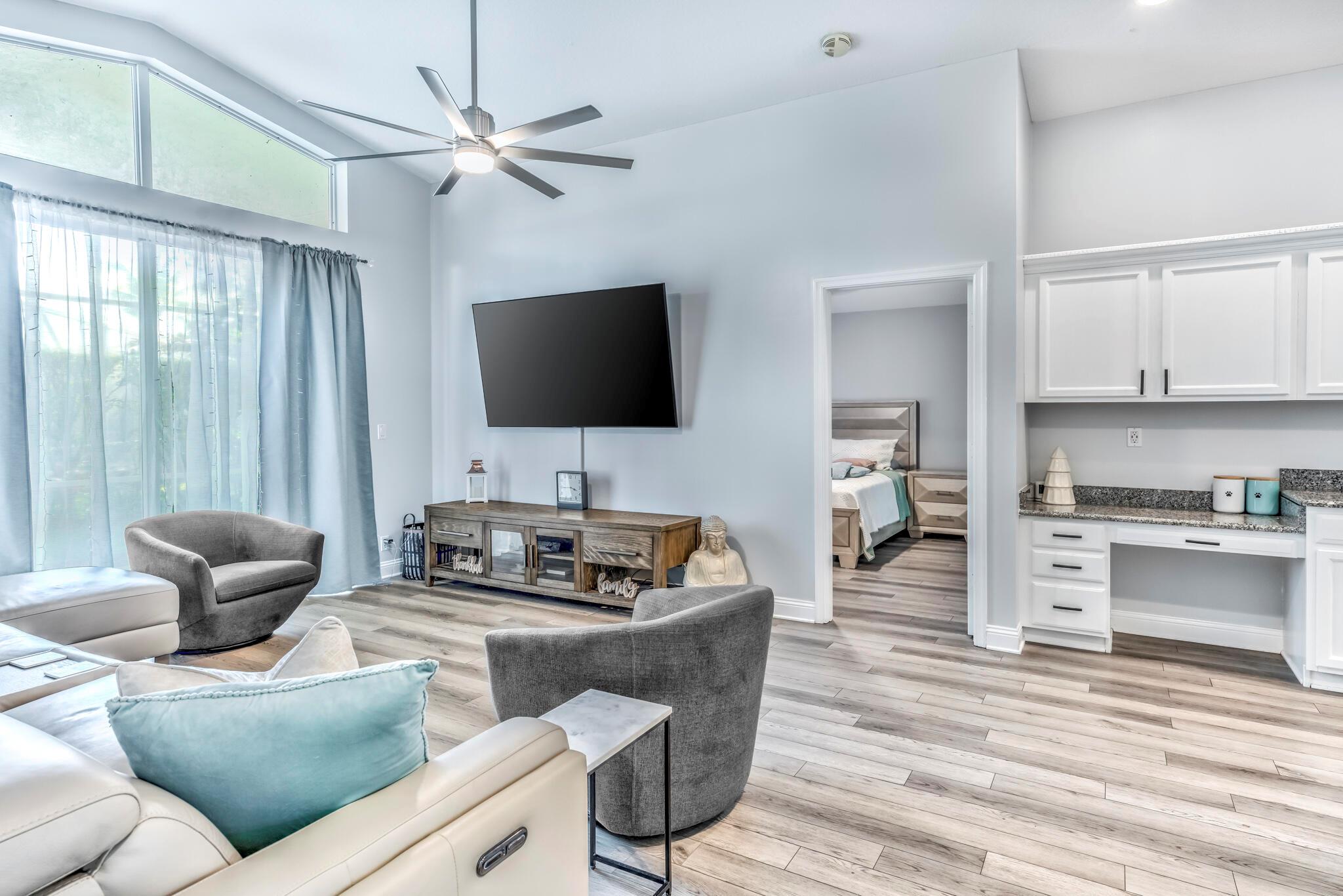 This stunning property has been pre-appraised at $515,000, offering tremendous value for buyers. The entire house freshly painted, additionally, the home boasts luxury vinyl flooring throughout, creating a seamless flow from room to room. The extra wide baseboards add touch of elegance, open kitchen/family room concept, new upgraded ceiling fans, and hi hat lighting throughout the house. The entry foyer, kitchen and family room feature 11-12 foot cathedral/vaulted ceilings with plantation shutters in the family/dining and master bath. The heart of this house is the stunning kitchen highlighted with upgraded solid wood white cabinetry, granite counter tops, large pantry, office station, newer Samsung stainless steel appliances.