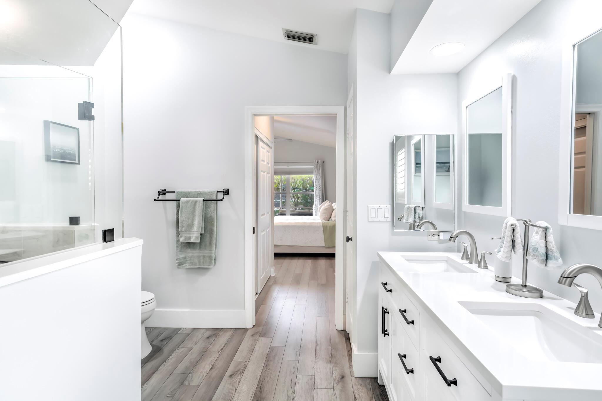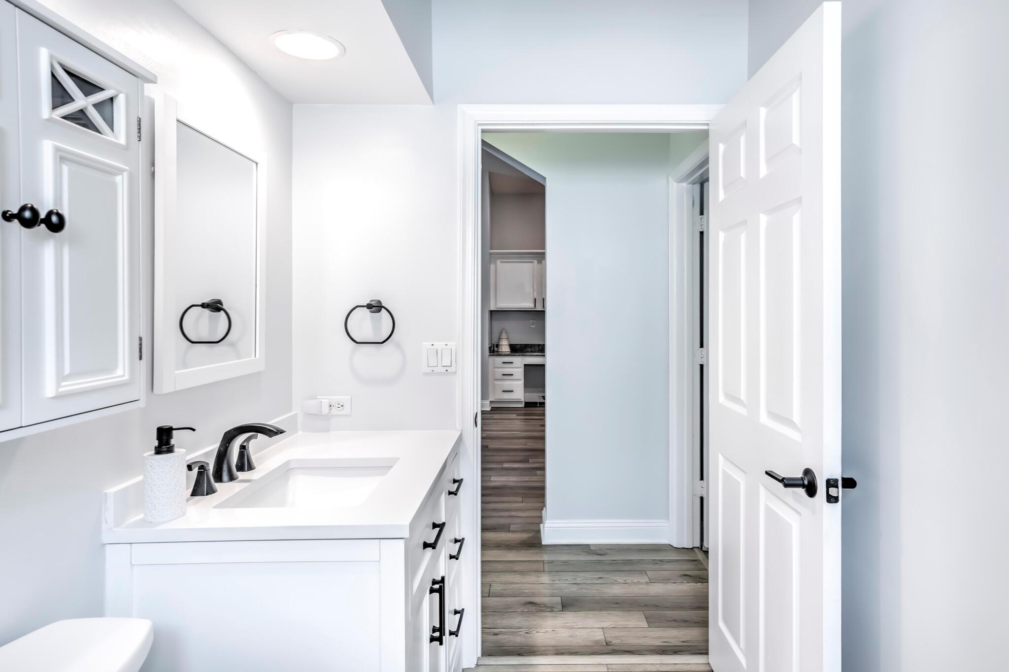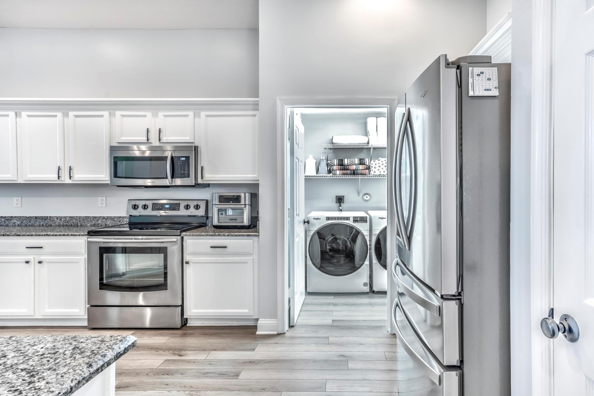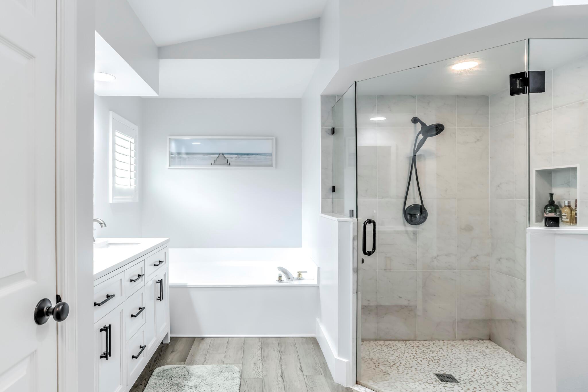 This stunning property has been pre-appraised at $515,000, offering tremendous value for buyers. The entire house freshly painted, additionally, the home boasts luxury vinyl flooring throughout, creating a seamless flow from room to room. The extra wide baseboards add touch of elegance, open kitchen/family room concept, new upgraded ceiling fans, and hi hat lighting throughout the house. The entry foyer, kitchen and family room feature 11-12 foot cathedral/vaulted ceilings with plantation shutters in the family/dining and master bath. The heart of this house is the stunning kitchen highlighted with upgraded solid wood white cabinetry, granite counter tops, large pantry, office station, newer Samsung stainless steel appliances.