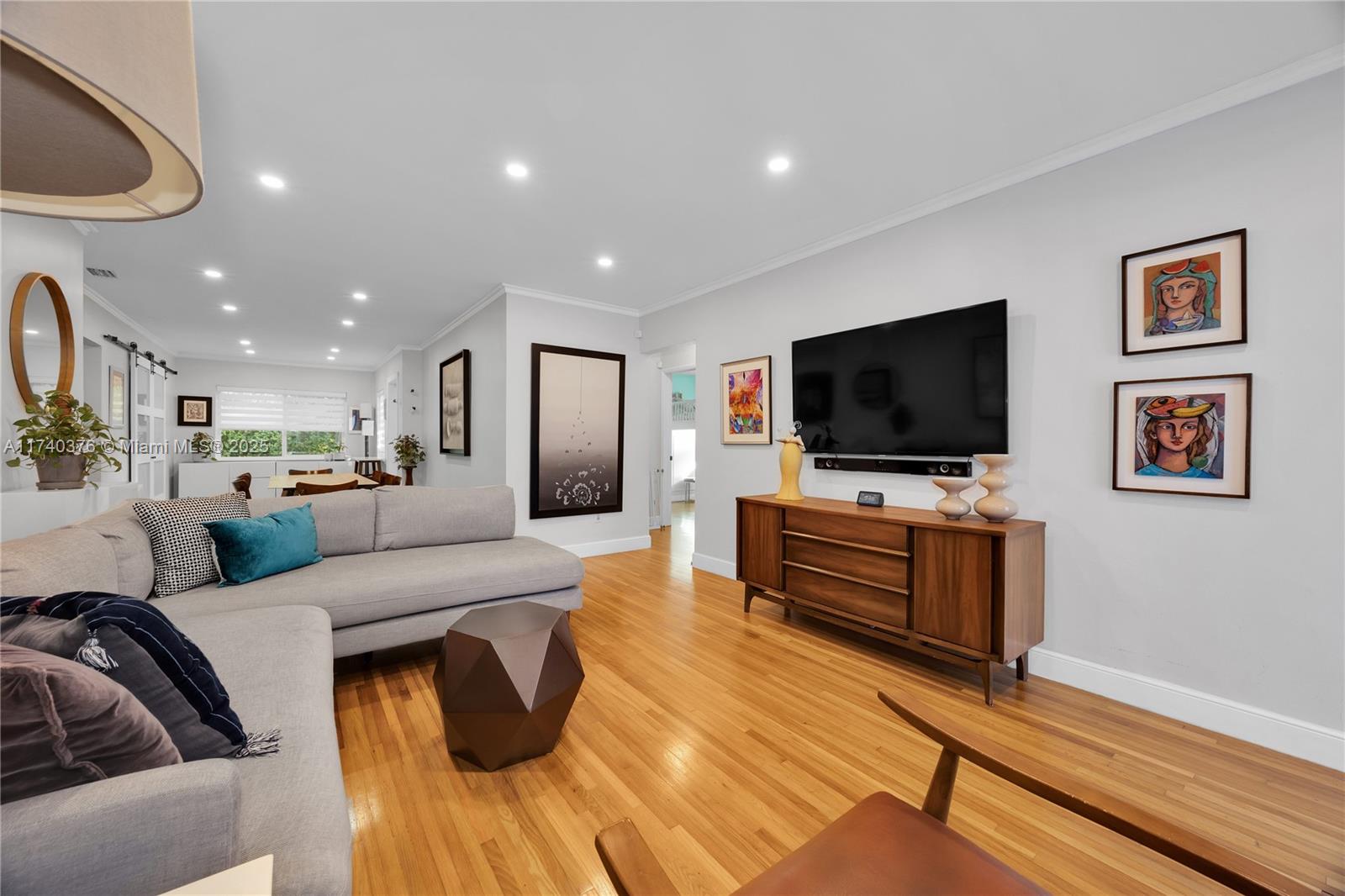 Motivated Sellers! Beautiful home—bring your best offer! Nestled in the desirable streets of North Gables, this charming 3-bed, 2-bath home with an office/den seamlessly blends modern updates with classic character. With 1,595 adj sqft, this home has been thoughtfully remodeled to preserve its original hardwood floors, adding warmth and elegance. Features include high-impact windows and doors, a newer roof (2021), ample closet storage, and updated recessed lighting throughout. Step outside to a beautifully landscaped backyard featuring a brick paver patio, a custom-built grill, and ambient lighting—perfect for outdoor entertaining. Located on a picturesque tree-lined street, this home is just a few blocks from Granada Golf Course and minutes from Downtown Coral Gables. 1-car garage