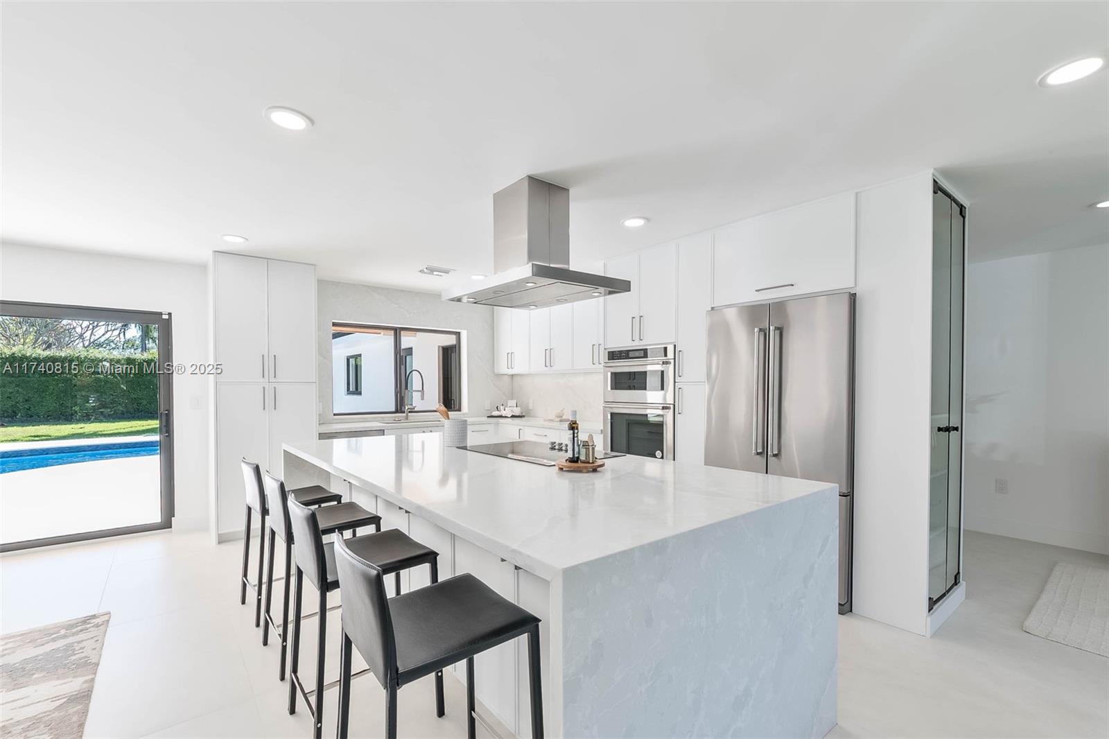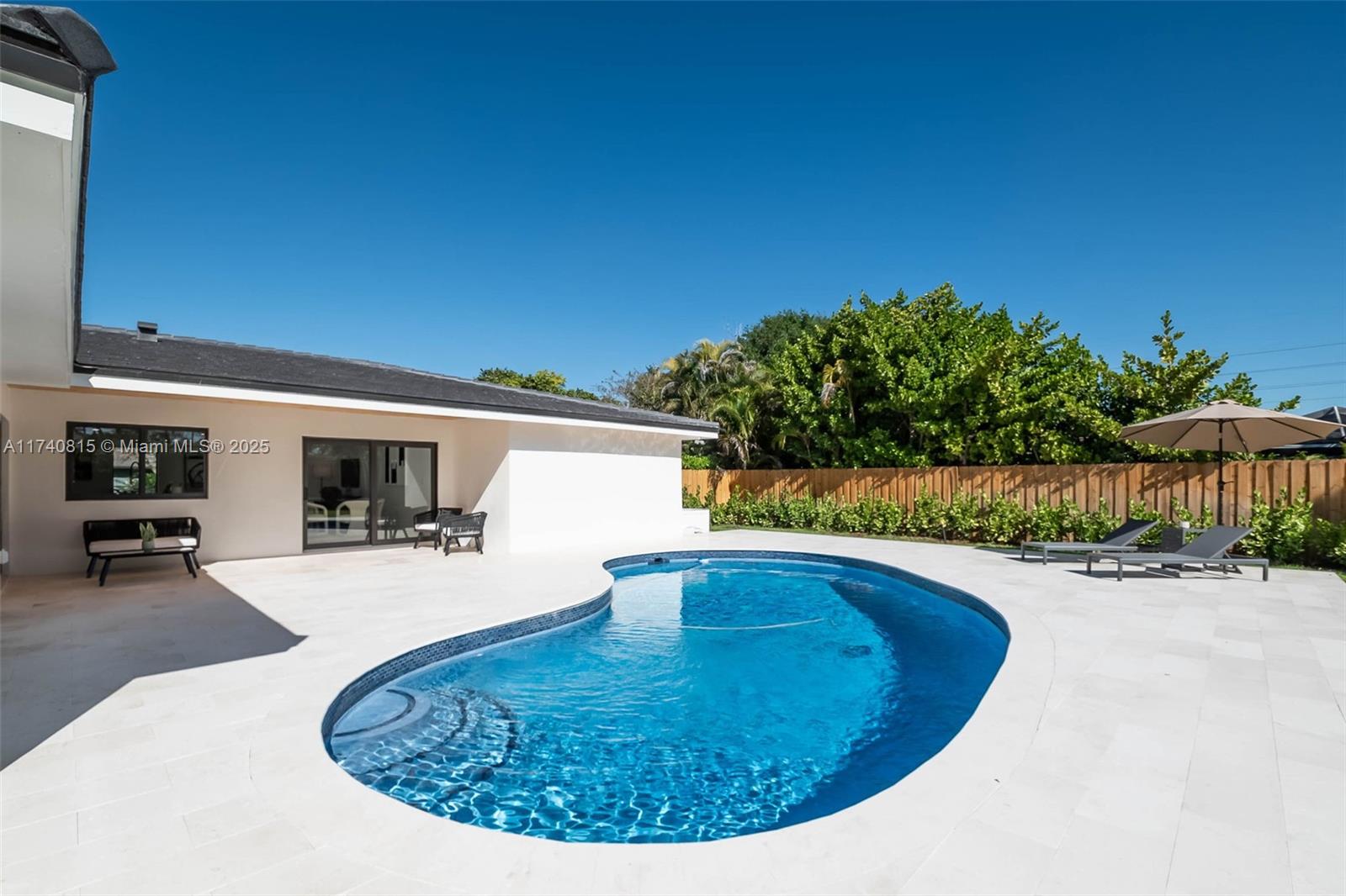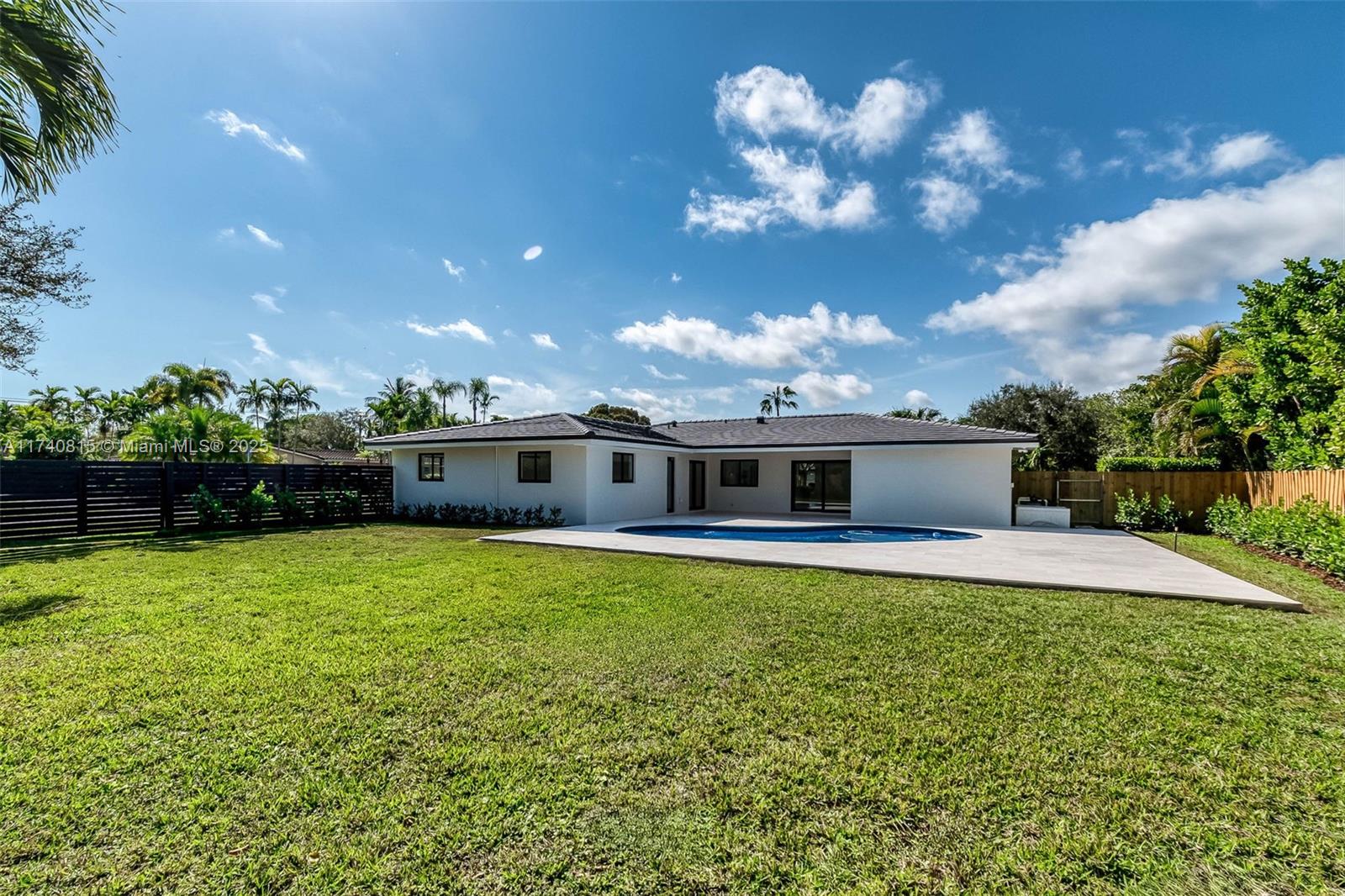 Complete Renovation (with permits) in N Palmetto Bay! Stunning 4 bedroom 3 bath smart home features open concept design. Eat in kitchen showcases center island with quartz countertops, custom wine bar, and Kitchenaid appliances. Porcelain tile floors throughout. Impact windows and doors. Luxurious primary suite with spa like bath with soaking tub & custom closet. Split plan includes junior suite. Den easily converts to 5th bedroom. Dedicated laundry room. 2022 AC and new duct work. All new plumbing, septic system, electrical, tile roof, and paver driveway. Covered terrace, shell stone patio, pebble tech pool. Fenced corner lot on quiet cul de sac. This is a must see!