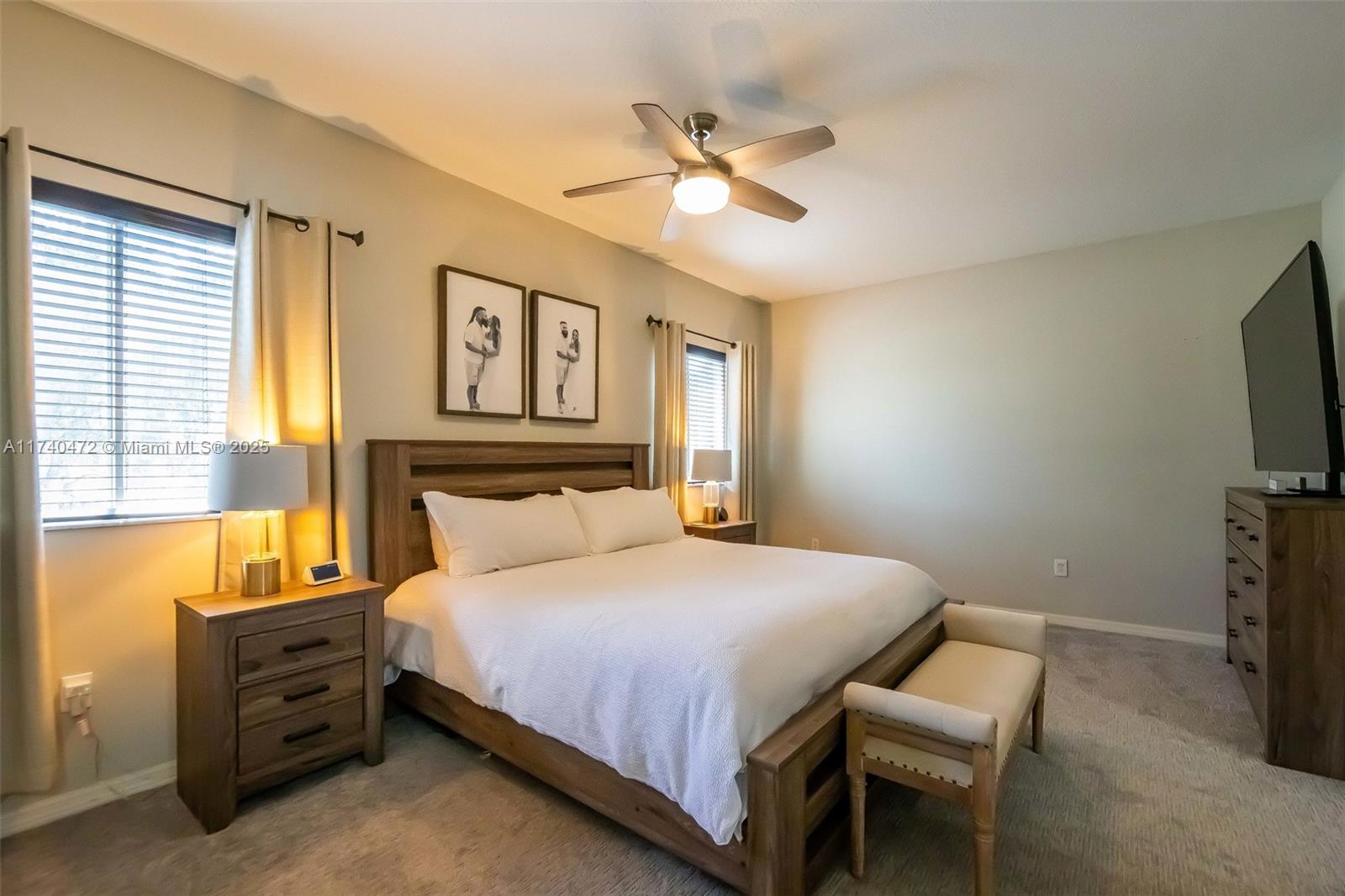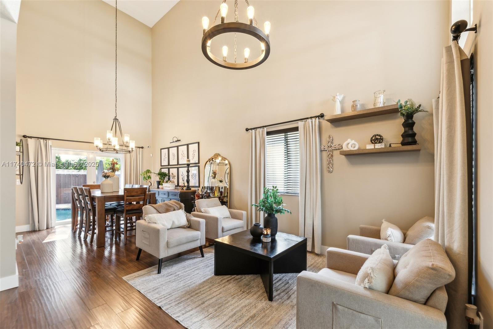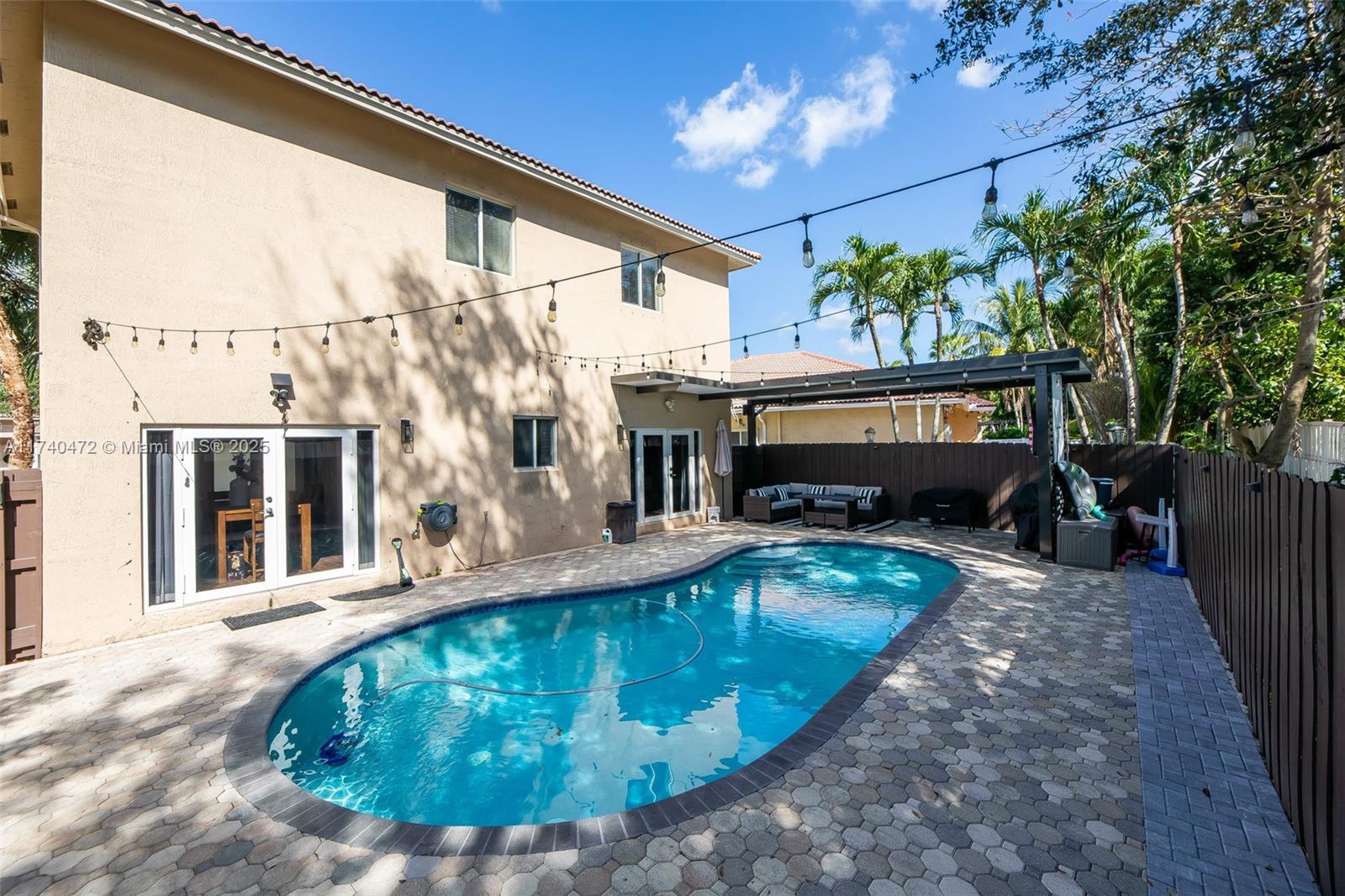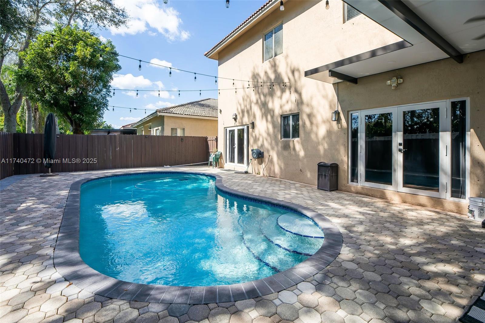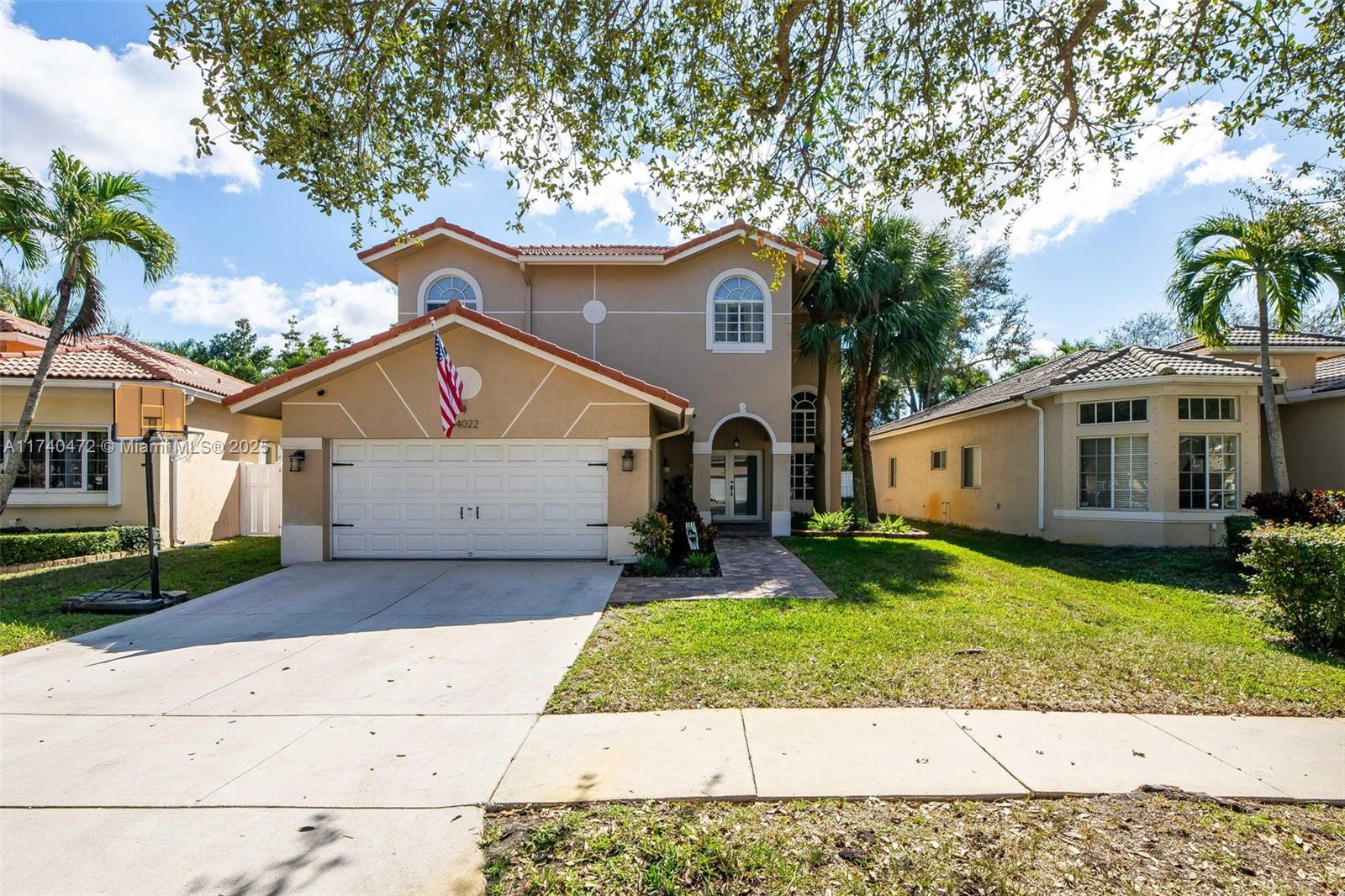 Welcome to this charming 2-story home in a beautifully maintained gated Miramar community. A covered front patio leads into an open layout with a spacious living and dining room, featuring high ceilings for lots of natural light. The eat-in kitchen boasts granite countertops, subway tile backsplash, stainless steel appliances, and a breakfast bar. The cozy family room opens to a private backyard with a pool, perfect for entertaining. The main floor has a bedroom and full bath. Upstairs, the primary suite includes dual closets and a luxurious shower with a freestanding deep soak tub. The fenced backyard offers privacy and security while you enjoy the amazing pool with extensive paved space and a covered patio. Convenient to shopping, dining, and highways. Schedule a showing today.