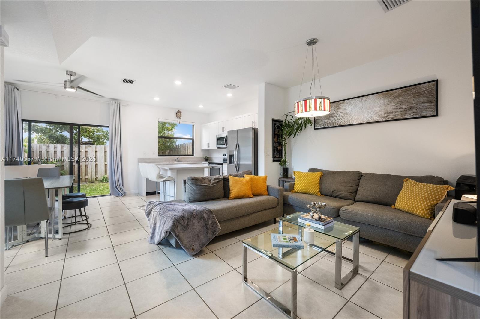 Exceptional corner lot 3-bed, 3-bath townhouse in the prestigious Via Ventura-Las Ramblas gated community, offering privacy and modern living. The first floor features a spacious open-concept design, seamlessly connecting the living, kitchen, and dining areas with direct patio access, and a bedroom and full bath provide convenience for guests or multi-generational living. Upstairs, two large bedrooms each boast an en-suite for ultimate comfort. Sunlight enhances the airy layout and private patio, perfect for relaxing or entertaining. Smart upgrades include a Ring doorbell, smart lock, and voice-assistant-ready thermostat. Enjoy two parking spaces and resort-style amenities: pool, gym, billiard room, BBQ area, and pet stations. Ideally located near I-95, shopping, dining, and Aventura Mall.
