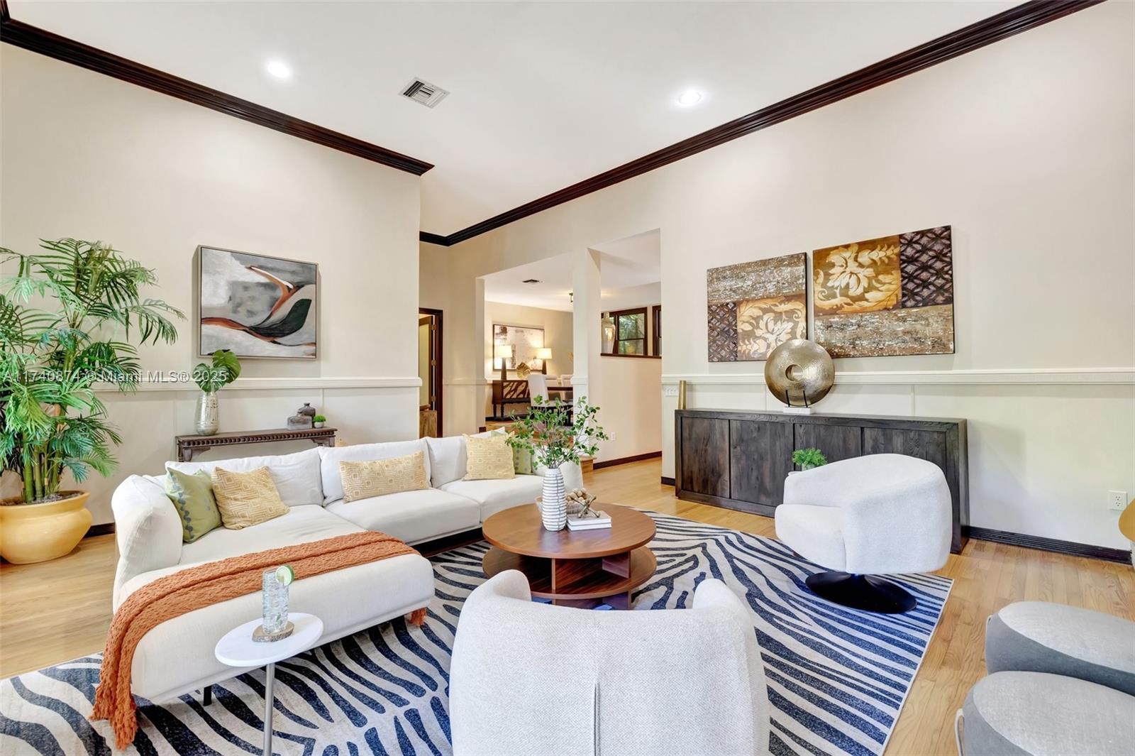 "Jewel of Riverland Woods" architectural masterpiece drew inspiration from Frank Lloyd Wright's 1929 Arizona Biltmore w/ textured art deco geometric patterns. Nestled among majestic live oaks & native palms, this home showcases form & function. Newly updated kitchen w/ quartz counter seating & commercial grade hood w/ direct access to tranquil & private walled exterior courtyard w/ luxurious concrete pool-style spa creating an outdoor sanctuary that mirrors the home's architectural grace. Soaring ceilings range from 9-13 ft, freshly painted interior, '21 refinished real wood floors in living area & PVC Pipes. Located in coveted Riverland Woods near downtown Fort Lauderdale, major highways & waterways, this masterpiece of design offers the perfect balance of artistic vision & modern living.