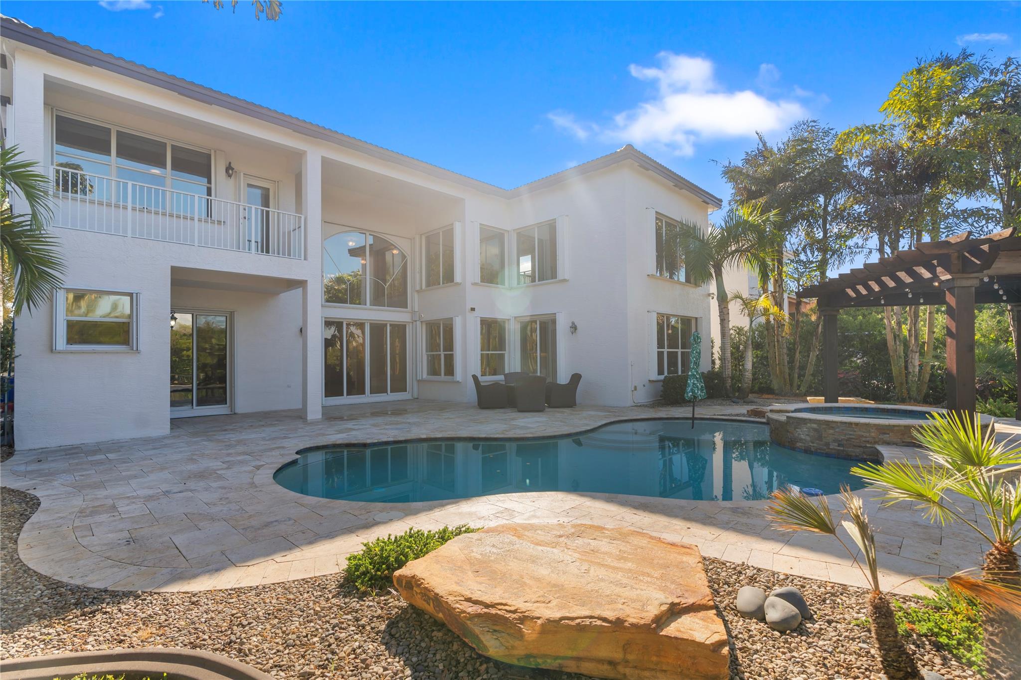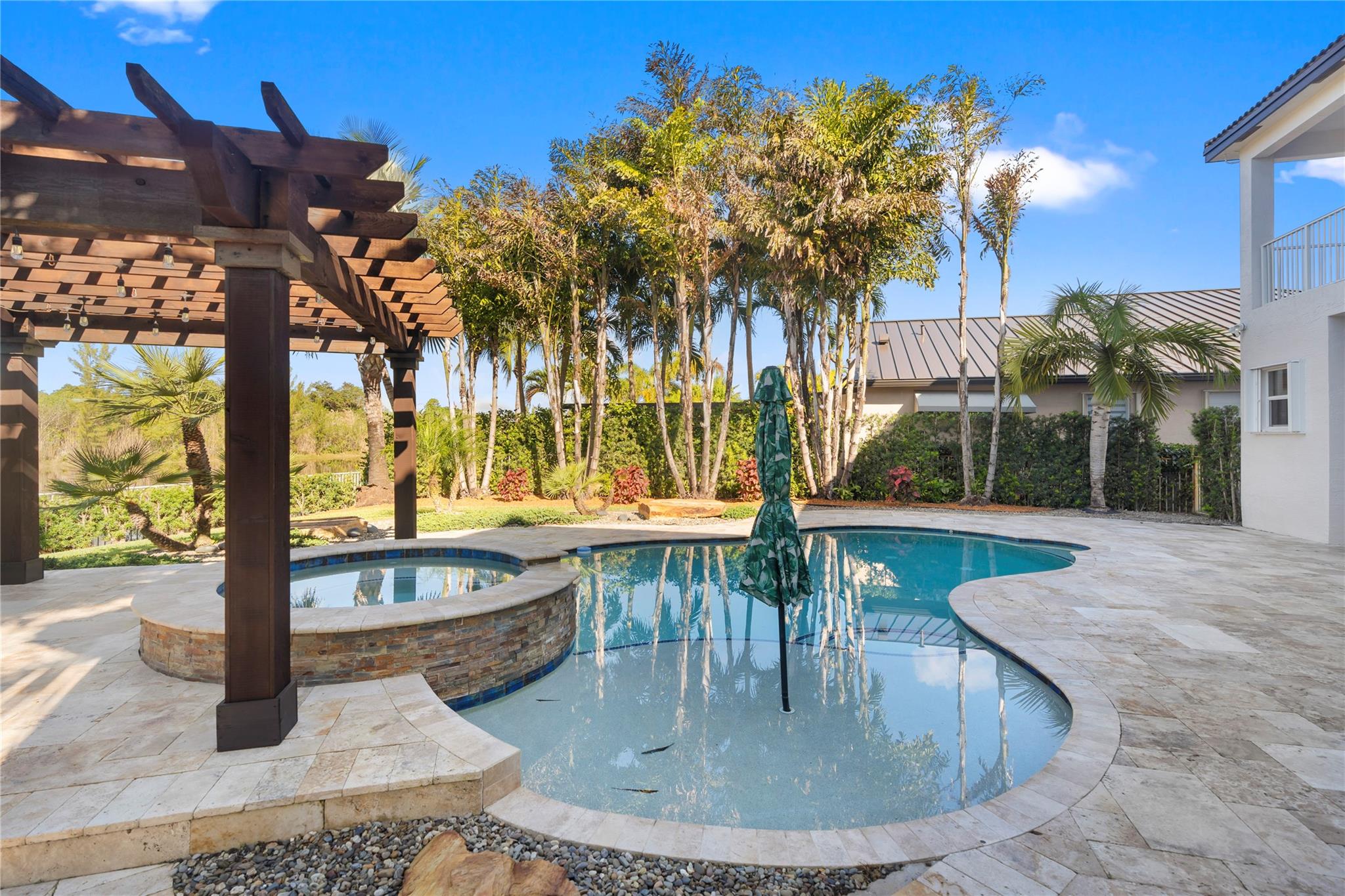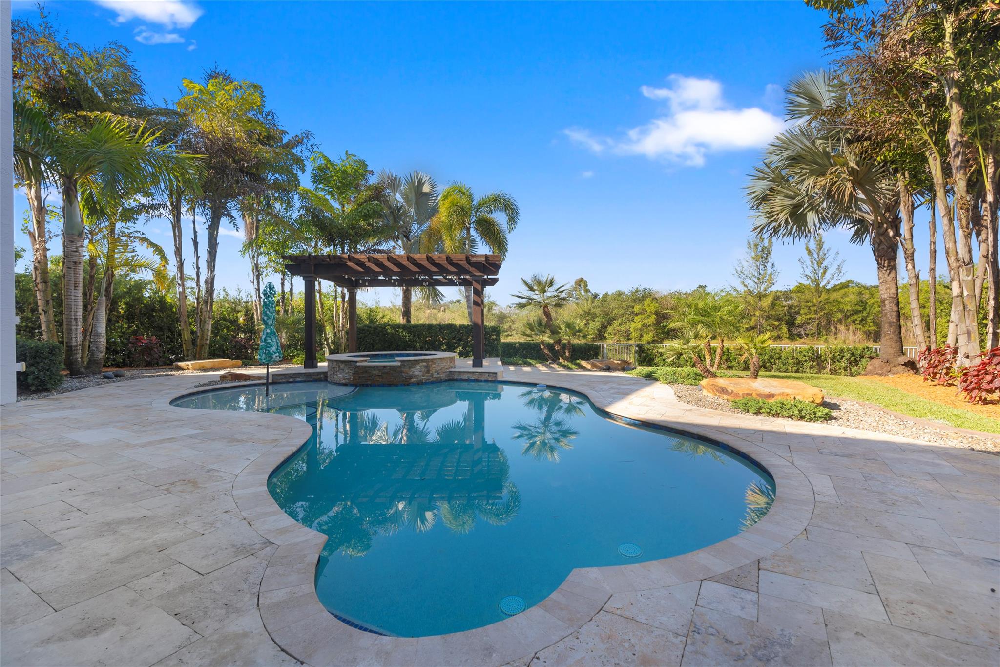 An impressive 2-story home, offering a modern and elegant design with 4bedrooms, 3.5 bathrooms,office and big loft .Upgraded kitchen with new appliances, neutral marble floors on the first floor and wood on the second floor and stairs, beautiful bathrooms, freshly painted inside & outside, new A/C units , new water heater, accordion shutters .One bedroom downstairs with a private bathroom and office. Enjoy the resort style backyard with a preserve, water view, pool and Jacuzzi, travertine pavers, pergola and lush landscaping with plenty of privacy.