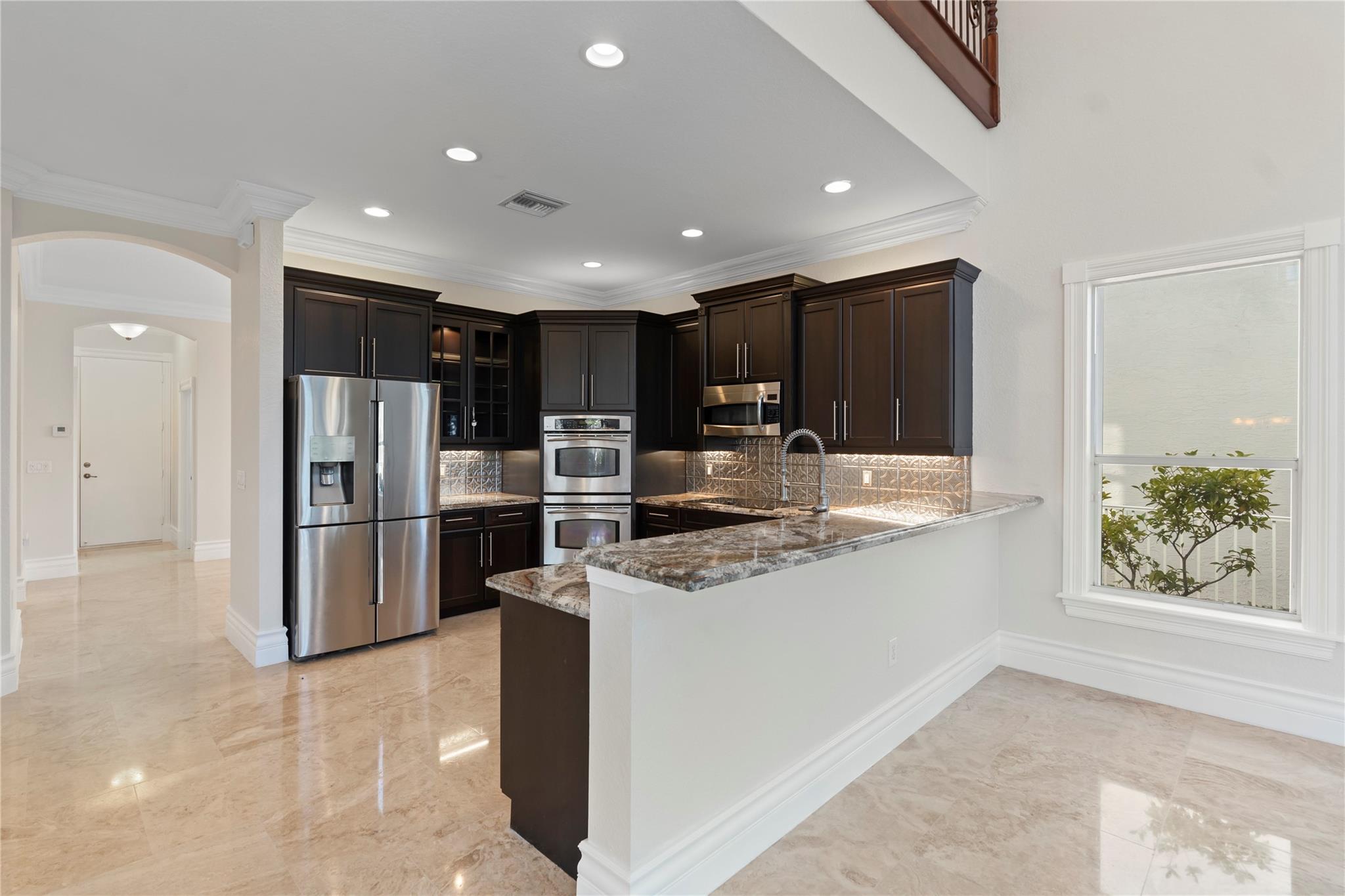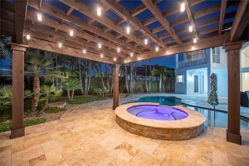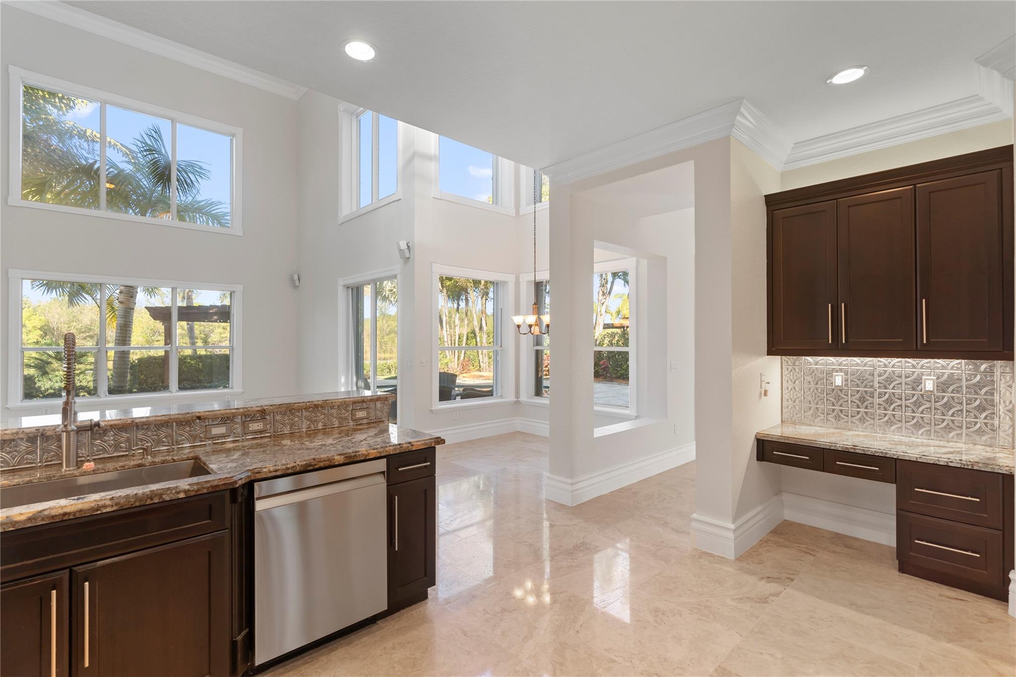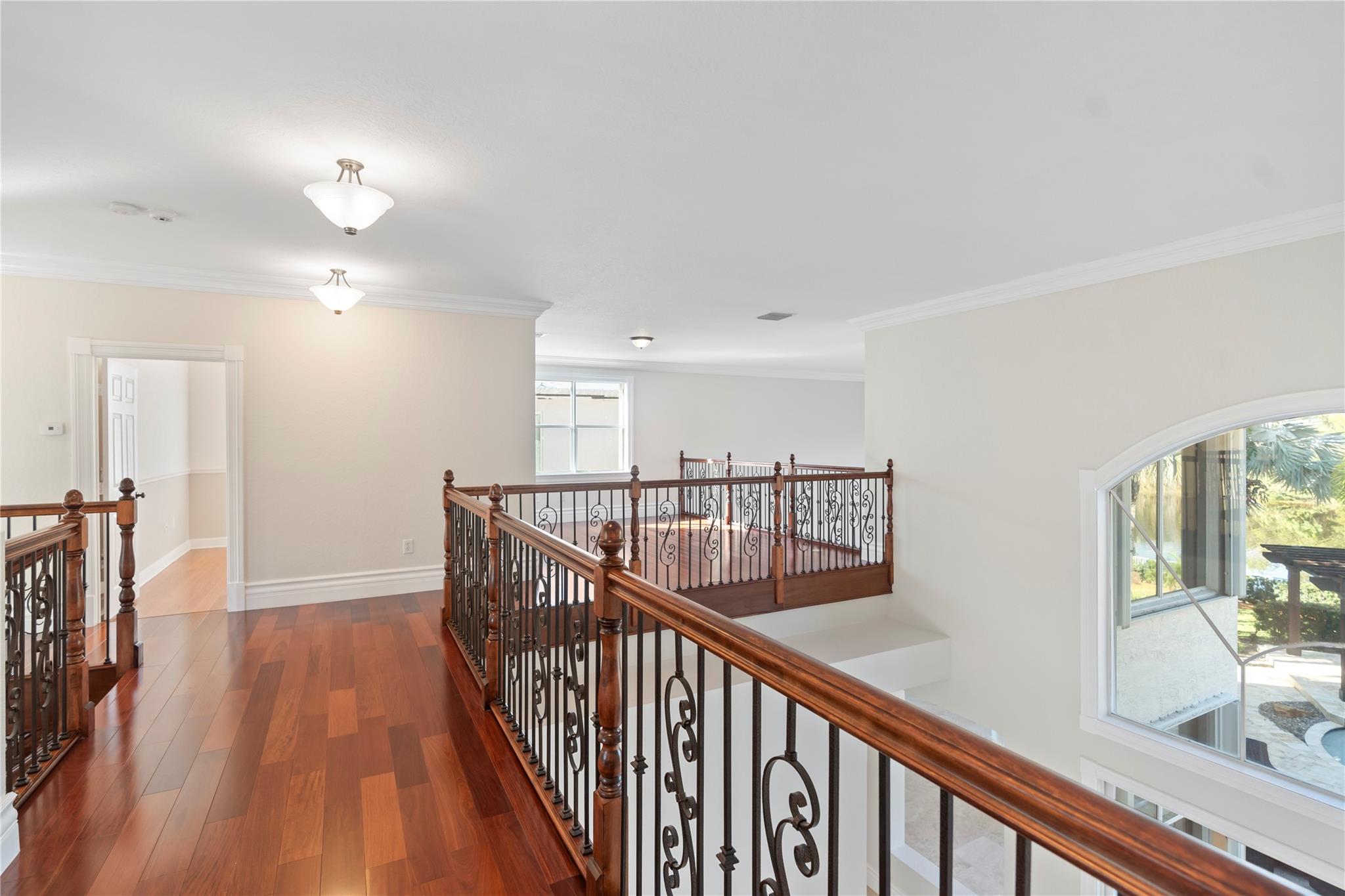 An impressive 2-story home, offering a modern and elegant design with 4bedrooms, 3.5 bathrooms,office and big loft .Upgraded kitchen with new appliances, neutral marble floors on the first floor and wood on the second floor and stairs, beautiful bathrooms, freshly painted inside & outside, new A/C units , new water heater, accordion shutters .One bedroom downstairs with a private bathroom and office. Enjoy the resort style backyard with a preserve, water view, pool and Jacuzzi, travertine pavers, pergola and lush landscaping with plenty of privacy.