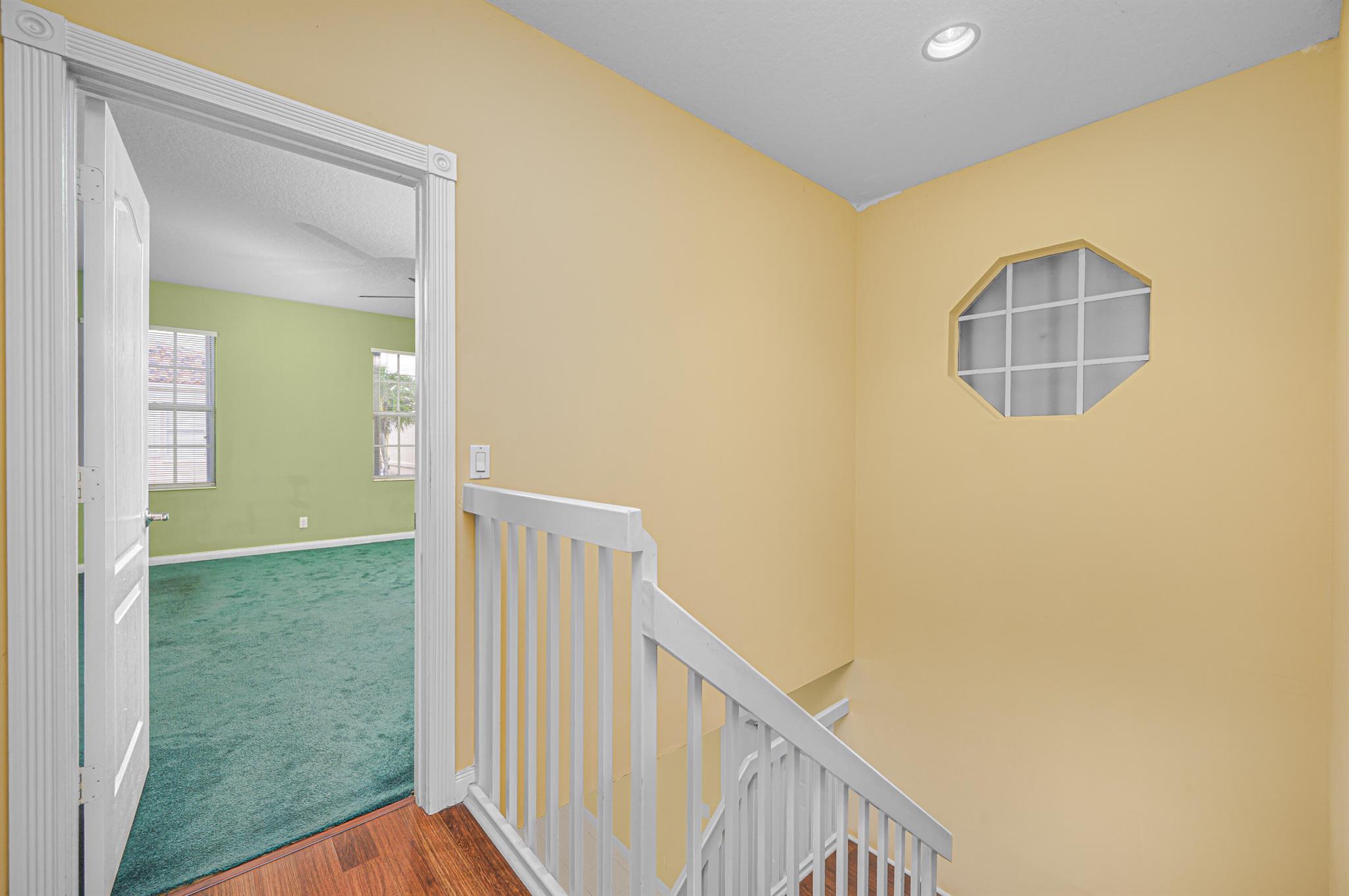 This Charming 3 Bedroom 2 1/2 Bathroom Townhome provides two stories. It boast a NEW ROOF in 2025. The first floor has half a bathroom which leads to a spacious kitchen complimented with Stainless Steel Appliances. The view from the kitchen overlooks the living and dining area leading to sliding doors behind Plantation Shutters. Beyond the screened patio is a lush enclosed back yard. From the first floor, wooden stairs takes you to the second floor which has the laundry area, three bedrooms and two full bathrooms. The master bedroom features a large walk in closet and a spacious master bathroom with his and hers sinks. A second bathroom serves the second and third bedrooms. HOA fee includes cable. CARPET CREDIT IS AVAILABLE AT CLOSING.