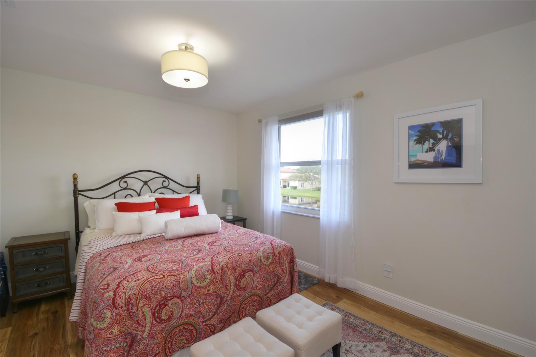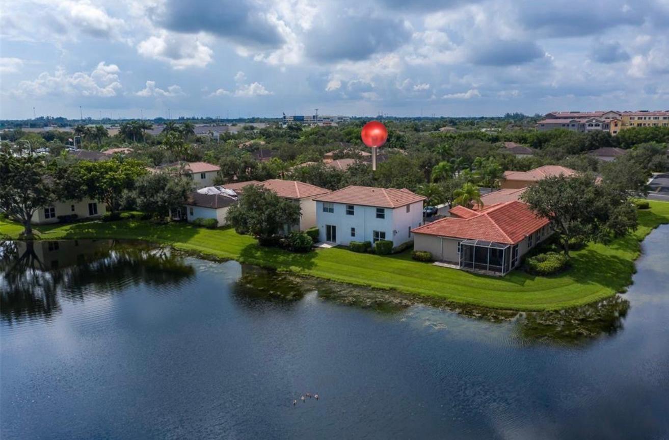 This beautifully renovated two-story lakefront home features 3 bedrooms and 2.5 bathrooms. The 4th bedroom was converted into a huge walking closet for the master bedroom. Renovations include white porcelain flooring downstairs and wood like flooring upstairs. A new wood staircase with steel railings. An open modern floor plan with a stunning new kitchen offering a huge white quartz countertop. Washer and dryer has been conveniently moved into the living area. Modern new bathrooms. New impact front door and all the back windows had been replace for new high impact . This waterfront home is conveniently located in the gated community of Opal Creek which offers a huge community pool, playground, & 24/7 security guard.A rated Schools. Owner has initiated new roof replacement !