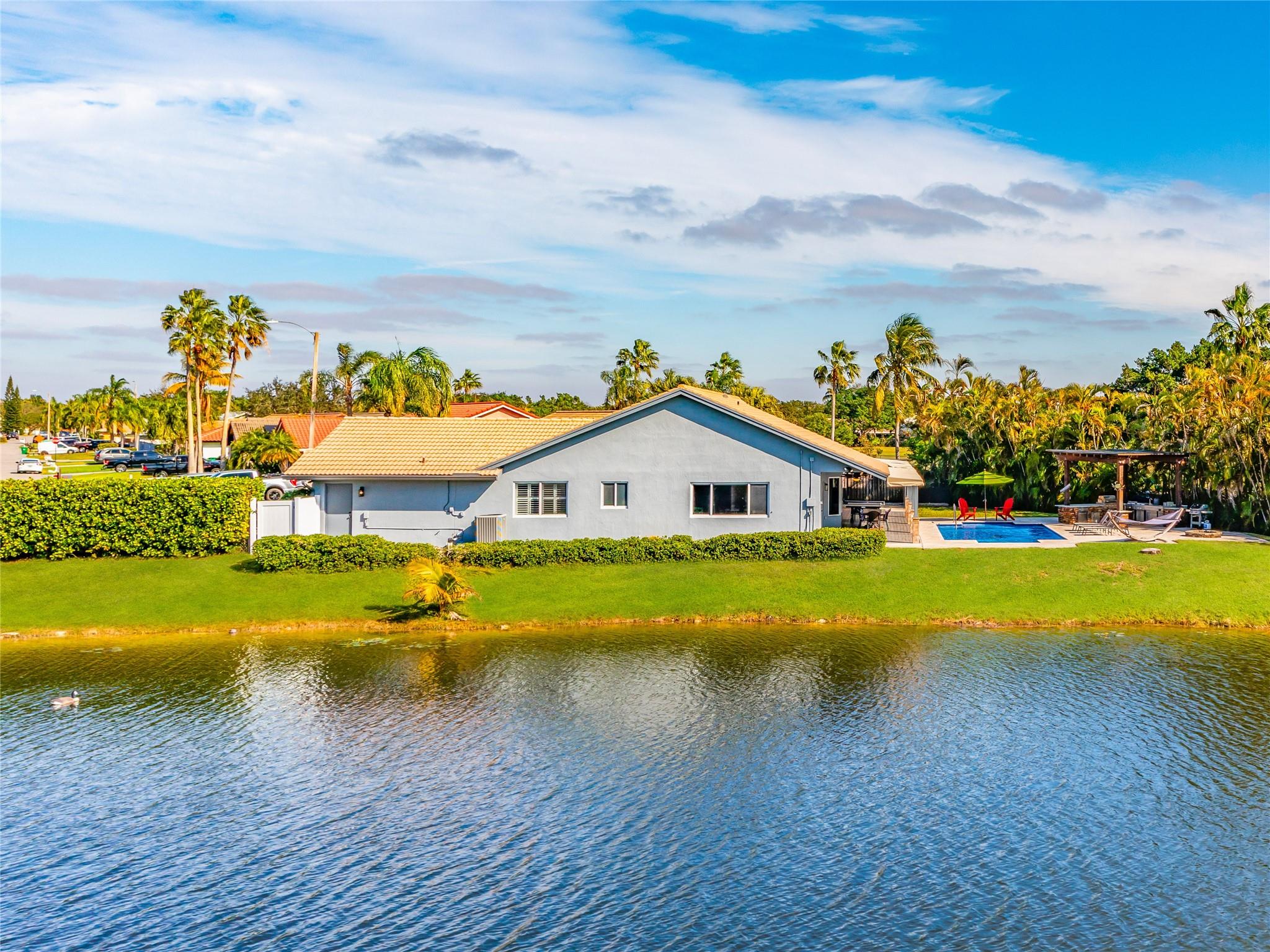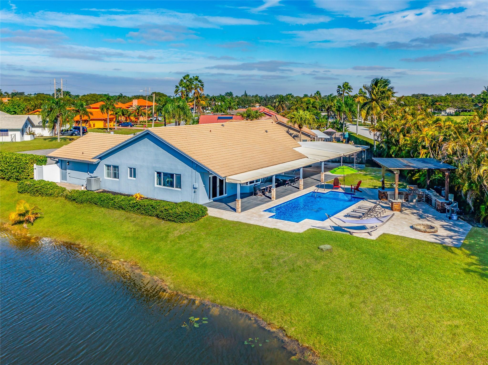 THE WAVERLY HUNDRED, A CUSTOM TROPICAL MASTERPIECE WITH ALMOST A HALF ACRE OF LAND. ONE OF THE LARGEST WATER FRONT LOTS IN THE DEVELOPMENT, A DRAMATIC LAKEFRONT ESTATE, 3-BEDROOMS WITH 2-FULL BATHS, OVER-SIZED PATIO AND HUGE OPEN POOL, A ONE-STORY HOME WITH A TWO-CAR SIDE LOAD GARAGE & SIDE CARPORT/STORAGE AREA, PERFECT FOR A BOAT OR TRUCK, OVERSIZED DRIVEWAY AT THE END OF THE CUL-DE-SAC. A GOURMET DESIGNED KITCHEN WITH QUARTZ COUNTERTOPS, STAINLESS STEEL APPLIANCES, A THREE-WAY SPLIT FLOOR PLAN, EXTRAS INCLUDE, BUILT-IN SUMMER KITCHEN, BUILT-IN FIRE PIT, ENGINEERED WOOD FLOORING, CROWN MOLDING, VOLUME CEILINGS, POOL HEATER, IMPACT WINDOWS & DOORS, REMODELED BATHS, LUSH FLORIDA LANDSCAPING, OVERSIZED FRONT AND BACK YARDS, THE VERY BEST DAVIE, FLORIDA HAS TO OFFER WITH A VERY LOW HOA FEE.