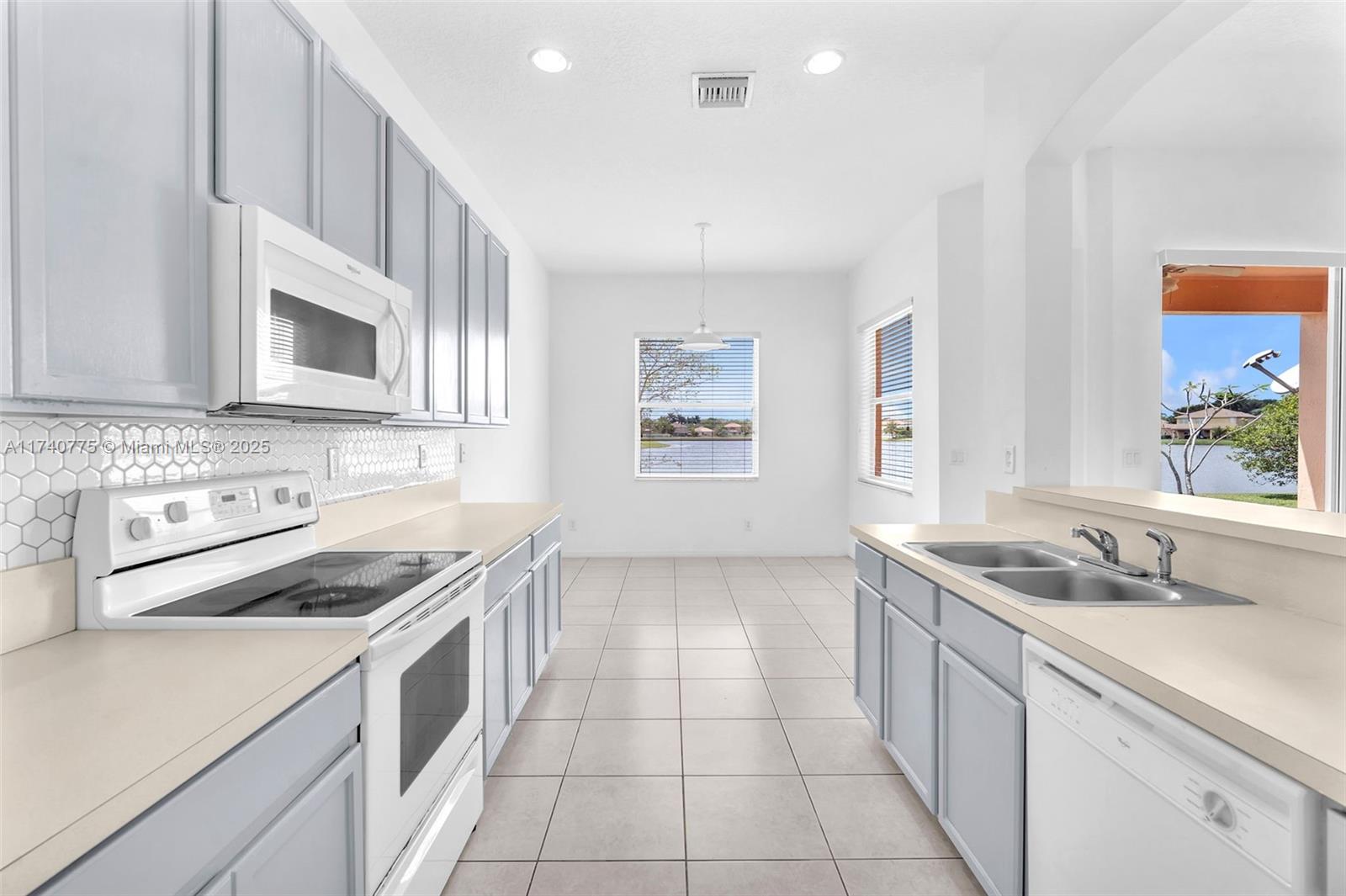 Welcome to Isles at Weston. This beautiful one-story home features a split floor plan with 3 bedrooms and 2 baths. The living areas are tiled, and bedrooms are carpeted. The kitchen includes a breakfast nook ideal for casual dining and pantry, while the laundry room comes with a washer and dryer. Enjoy stunning lake views from the home, and benefit from a two-car garage. The community offers fantastic amenities such as a clubhouse, fitness center, game room, bar, picnic area, swimming pool, volleyball and basketball courts. It’s walking distance to A+ schools and close to shopping and mayor highways, offering the perfect balance of comfort, convenience, and recreation.