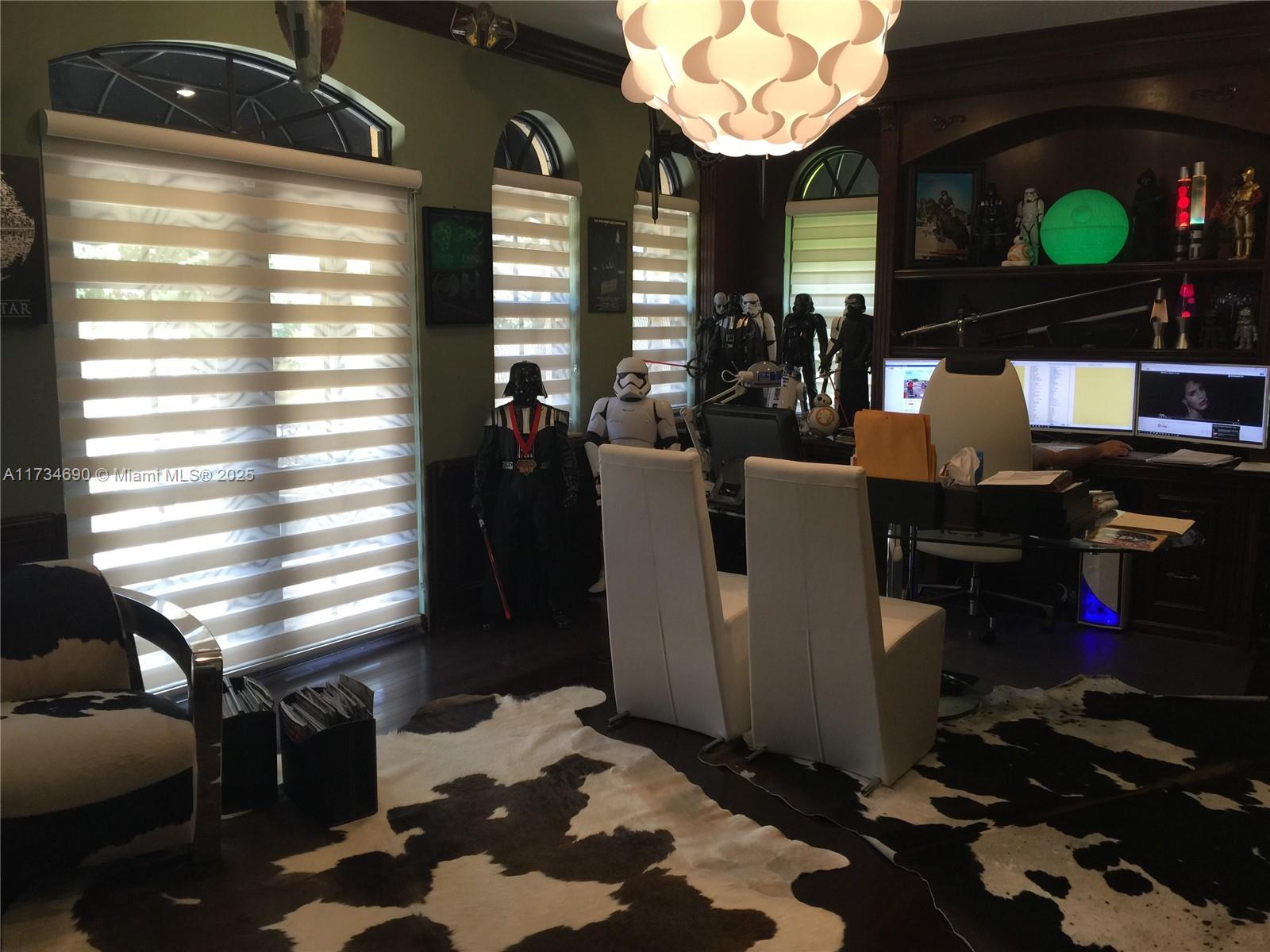 Breathtaking Mediterranean Style Mansion in Whispering Woods, 1 acre Cul De Sac Homesite. 7479 sqf living area. Magnificent gardens, stile resort pool with heater, gazebo and catio. Professionally decorated 2 stories, 7 bedrooms with walking closets and designed cabinets, 7 complete bath and 1 half bath, living room, dinning room, 2 family room, fire place, 2 offices spaces, laundry area, and extra space room used as playroom but can be used as Gym or cinema room, exceptional kitchen with huge eat in area, granite counters, SS Viking appliances ,Stove, double ovens, large center cooking island. Also Wiener room, Huge Garage with cabinets and space for 3 vehicles plus parking area. Marbel, wood fand laminated floors. The roof is just 10 years old, impact windows, new A/C, water heather.