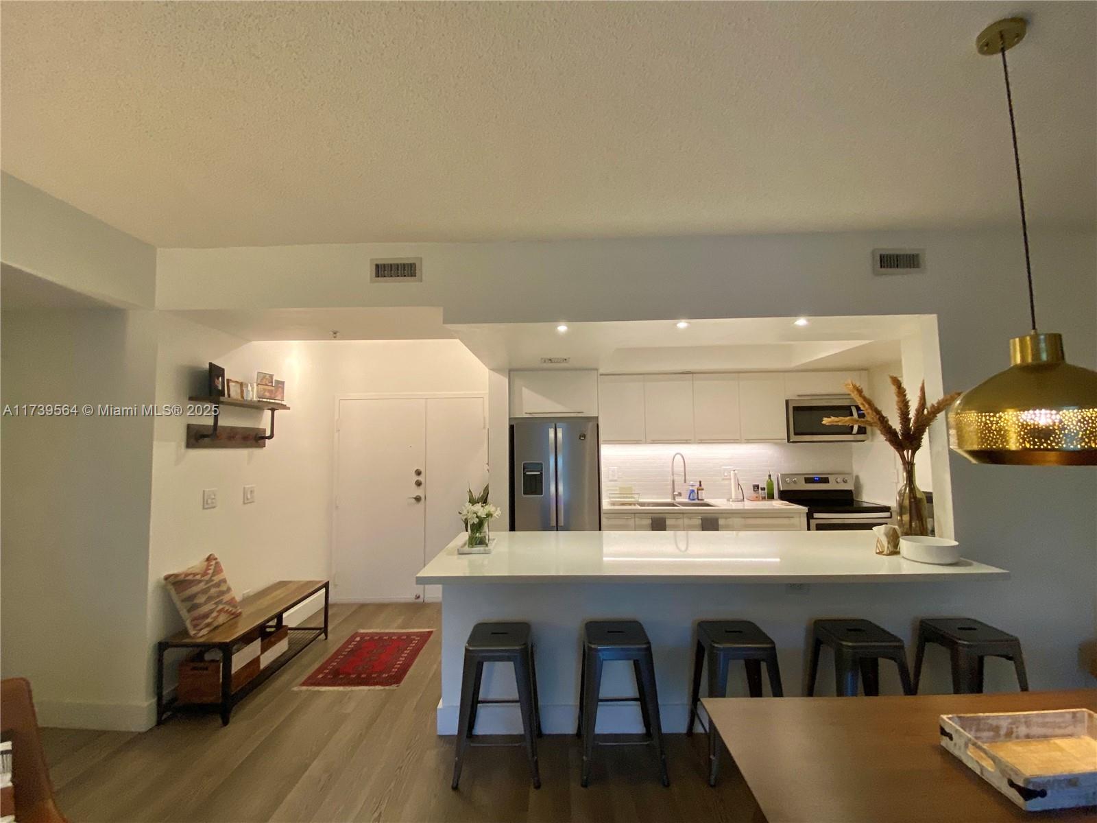 Resort-style living at Doral House 3. Beautifully remodeled 2/2 apartment offers spacious, light-filled open floor plan with tree-lined views. Sleek kitchen dazzles with updated cabinetry, granite countertops, stainless steel appliances, wine fridge and oversized counter ready for entertaining. Earthy wood floors, updated bathrooms and chic finishes complete the space. Well-maintained building with modern updates, fresh paint, ample parking, 24-hour security, and a pleasant atmosphere where everyone is a friend. Exclusive access to the renowned Doral Park Country Club, with pools, tennis, golf, fitness, venues, and vibrant Backyard Restaurant & Bar. Close to A+ schools, highways, MIA airport, this unit offers style, comfort and convenience in one of Doral’s most beloved communities.