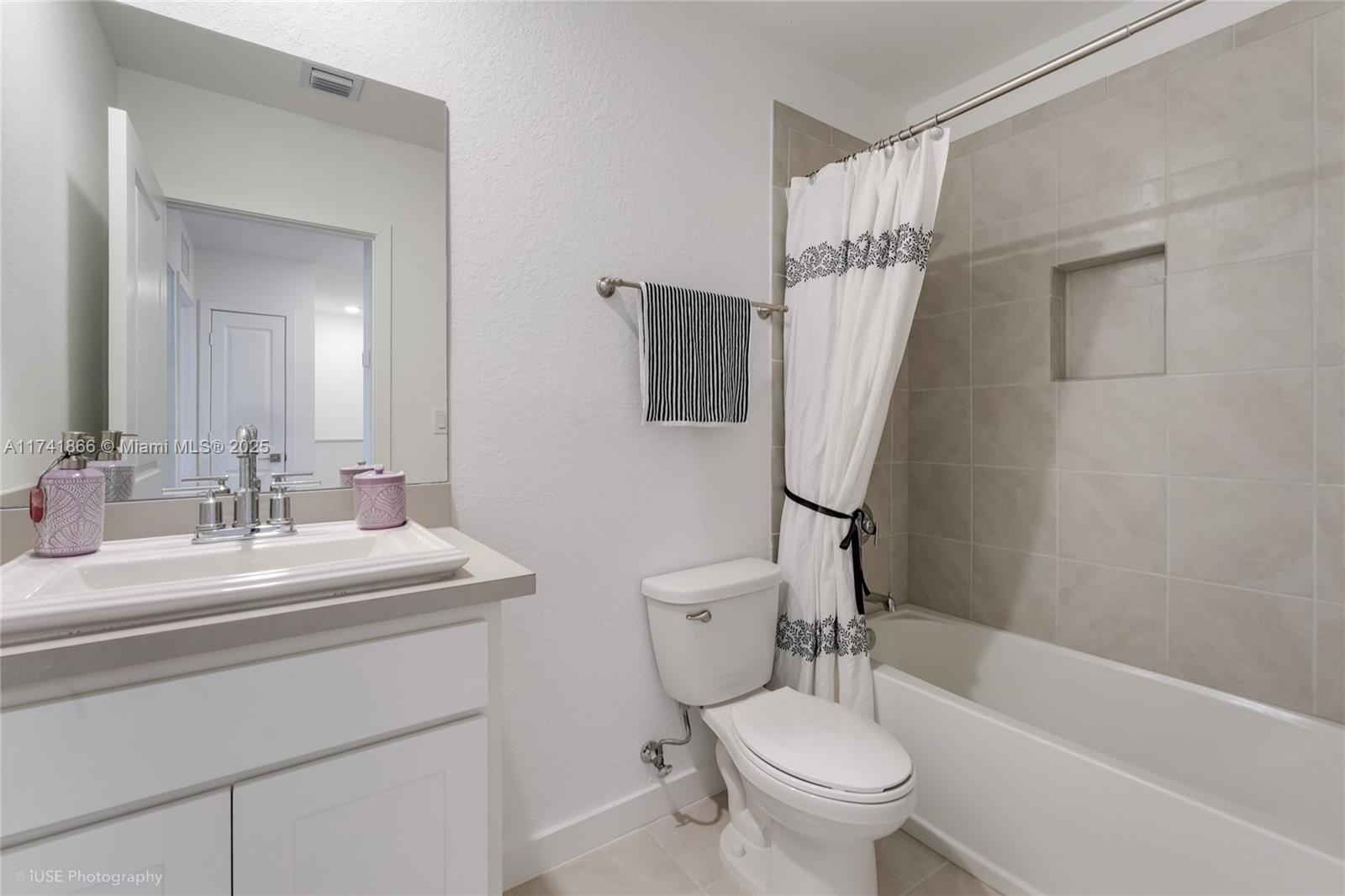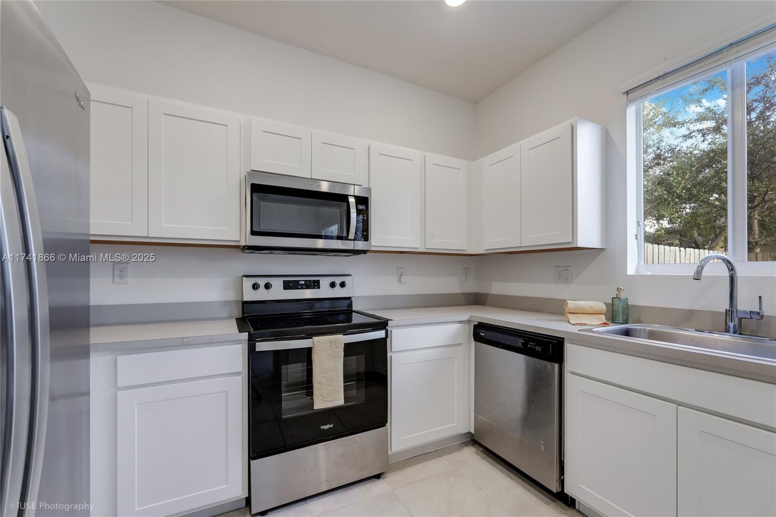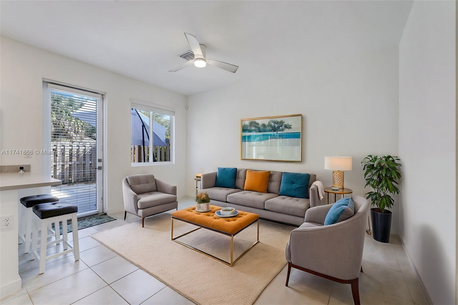Experience modern comfort in this practically brand-new townhouse w/1524 sf, built in 2021 & barely lived in! Designed for effortless living, this spacious, light-filled 3-bedroom, 2.5-bath home boasts an inviting layout w/a family room, dining area, & living room. All bedrooms are thoughtfully placed upstairs, including a luxurious primary suite w/a walk-in closet. Elegant tile flooring graces the downstairs & bathrooms, while plush carpet adds warmth upstairs. Enjoy a private fenced-in patio, hurricane shutters, blinds, & ceiling fans throughout. A one-car garage, large driveway for two cars, & extra guest parking complete the package. Community amenities include a new pool, clubhouse, & playground. Low HOA! Ready to move-in!