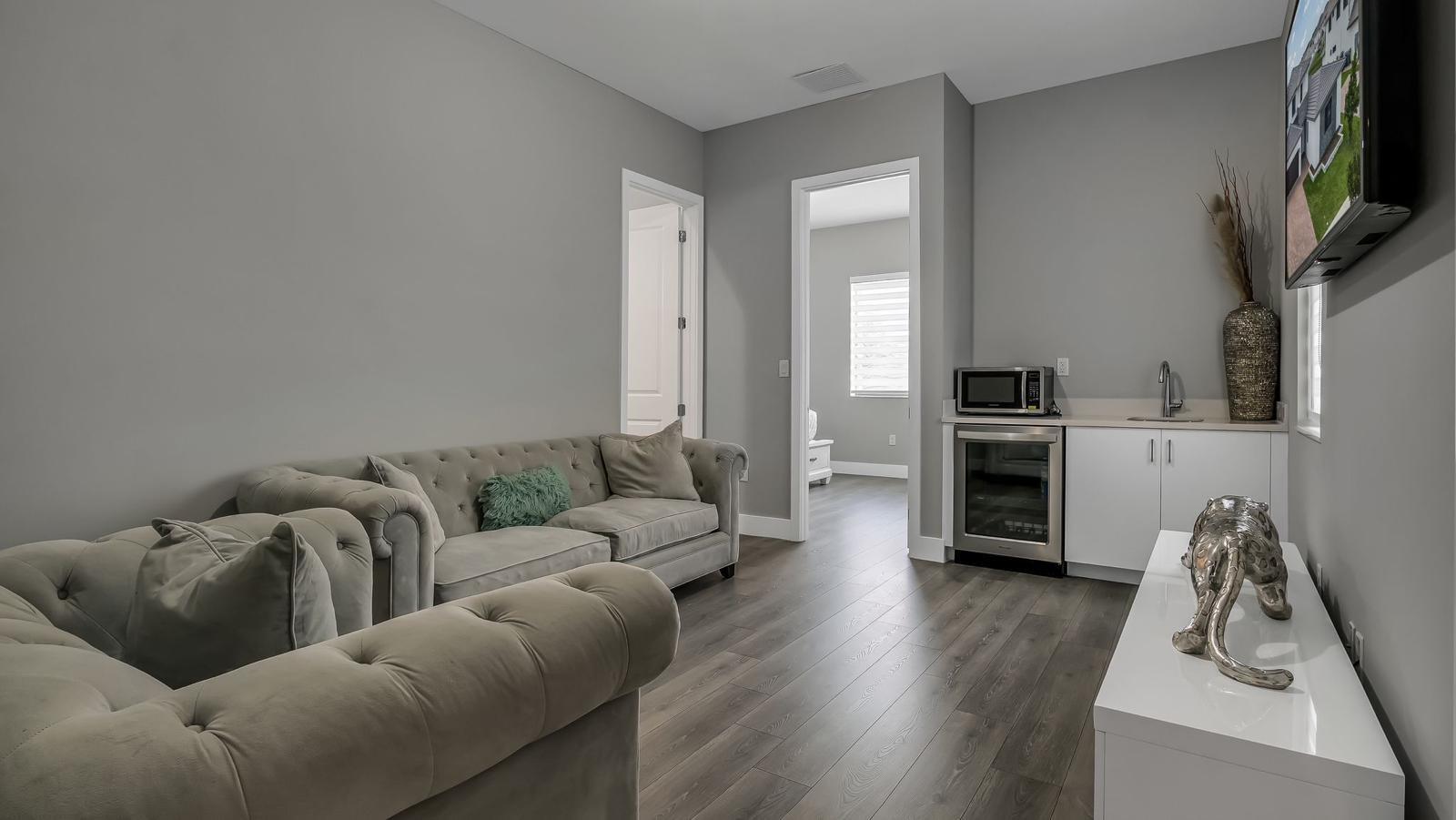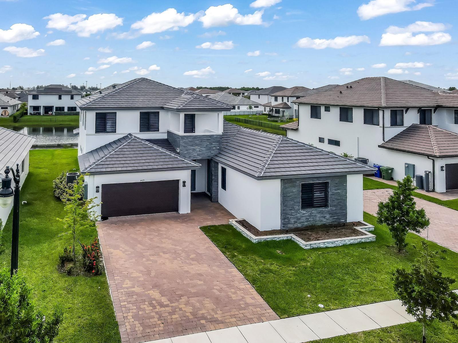 PRICE REDUCED! Brand-new community of Marbella Miramar! This stunning 5 bedrooms, 4.5 bath home offers an open concept combo living, family and kitchen space that flows seamlessly with breathtaking views of the expansive lake and state-of-the-art clubhouse. The pool and deck are ideal for entertaining guests. The home features an attached in-law's quarters complete with a private living, bedroom, bath, and its own entrance. The ground floor boasts a luxurious primary suite with a separate soaking tub & shower + a massive walk-in closet. Upgrades throughout include oversized tiles, modern, sleek custom cabinetry and features, all enhancing the brand-new construction's elegant aesthetic. Upstairs: 3 bedrooms, a loft, and bar, offering a versatility & space. Embrace a lifestyle of luxury!