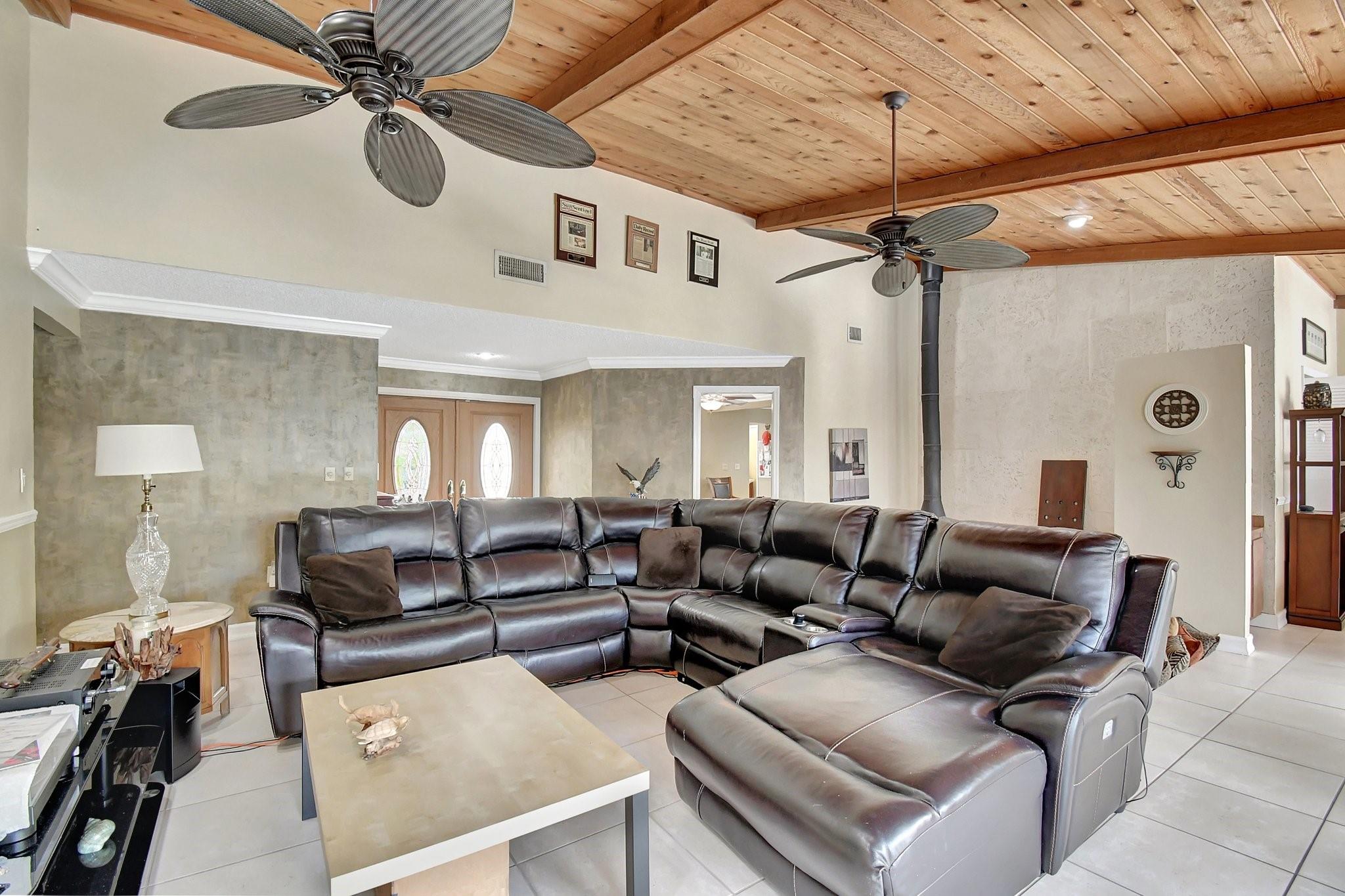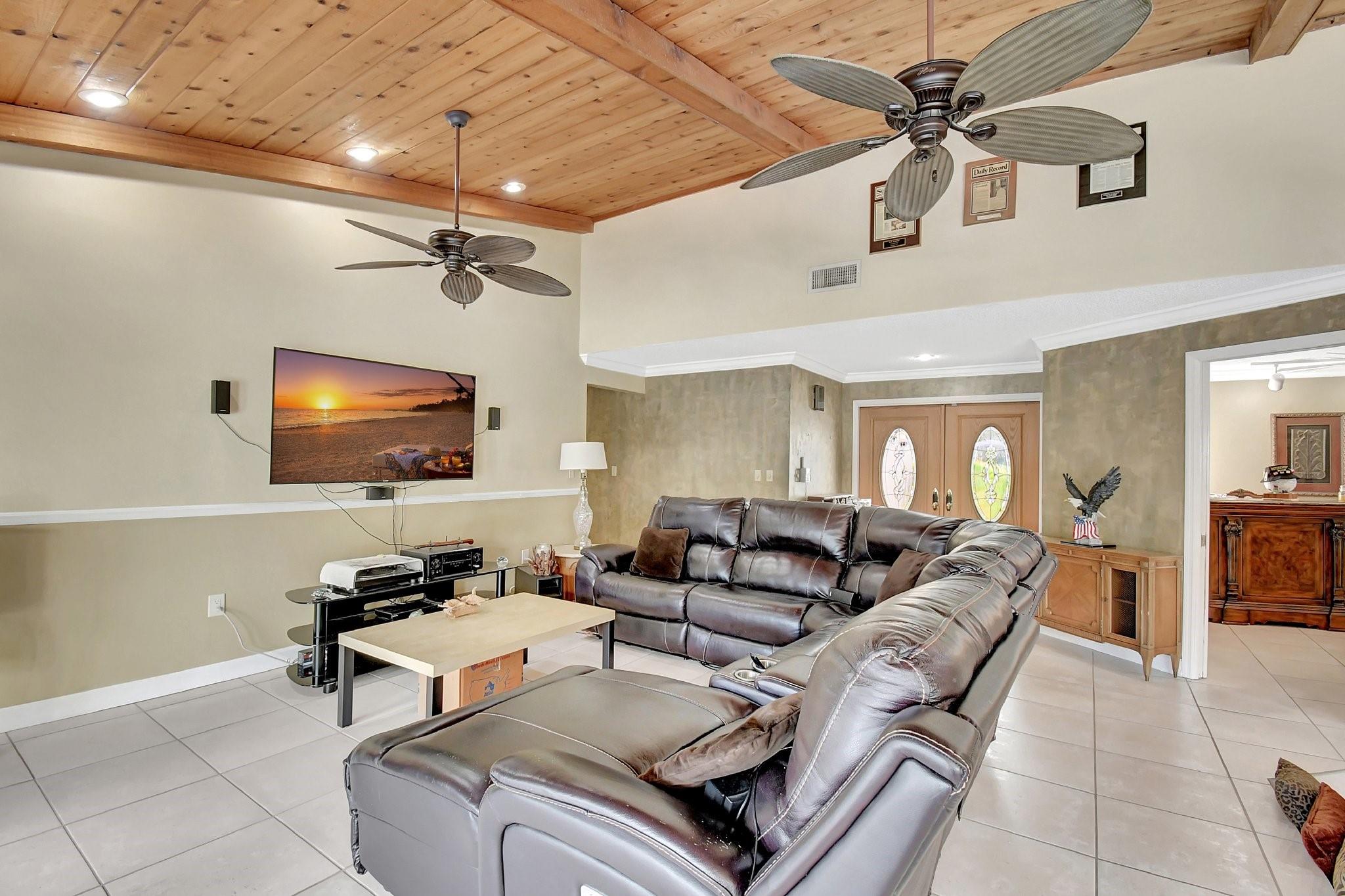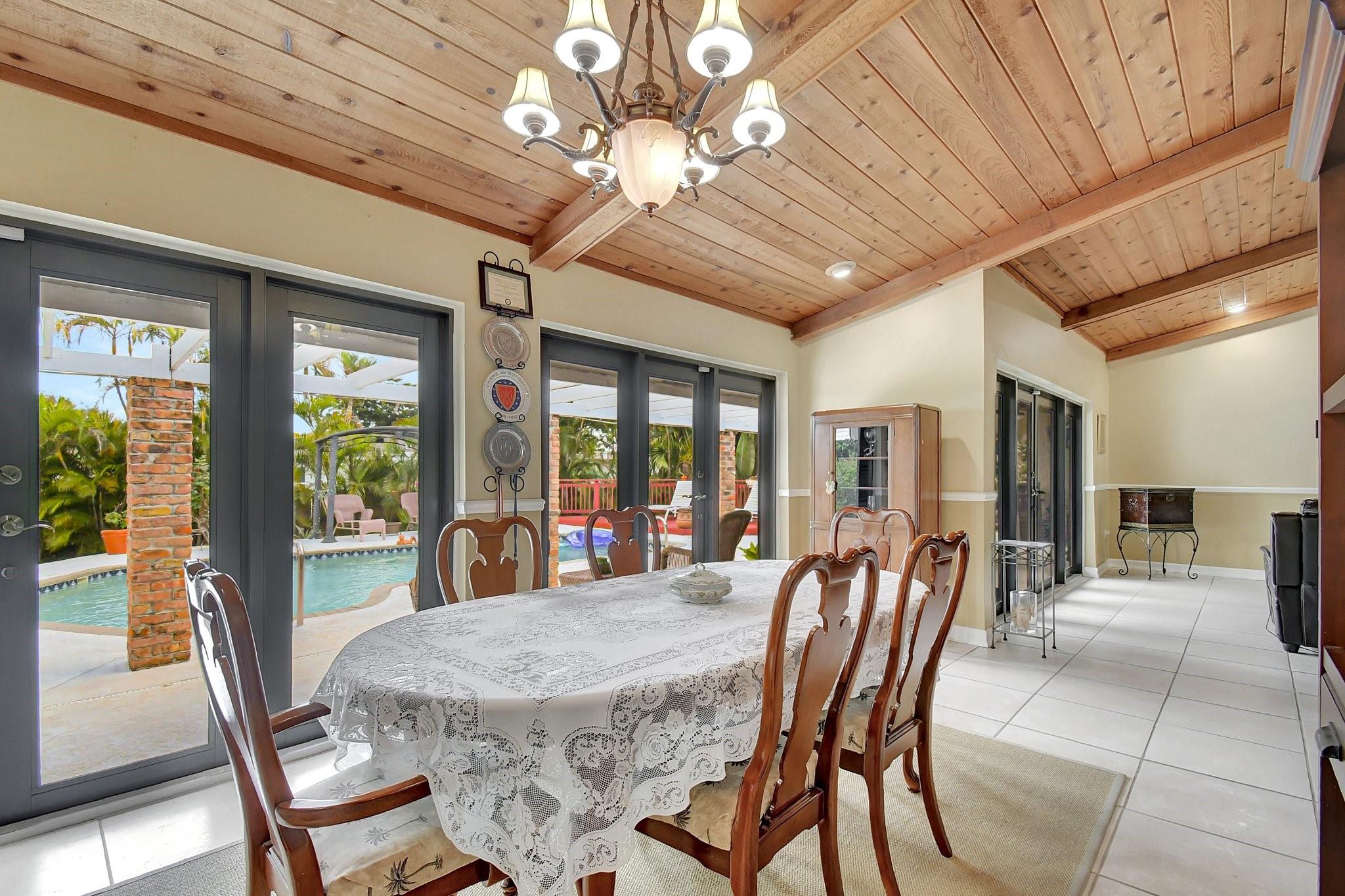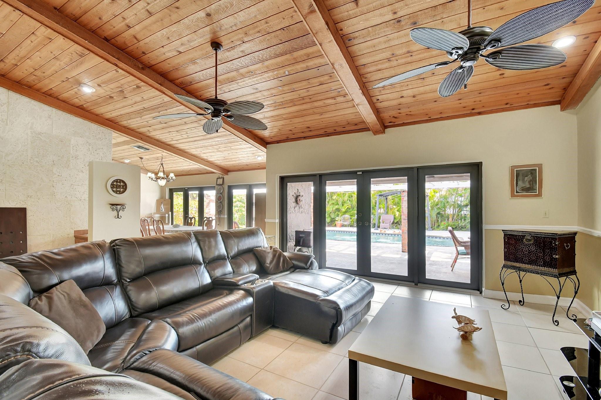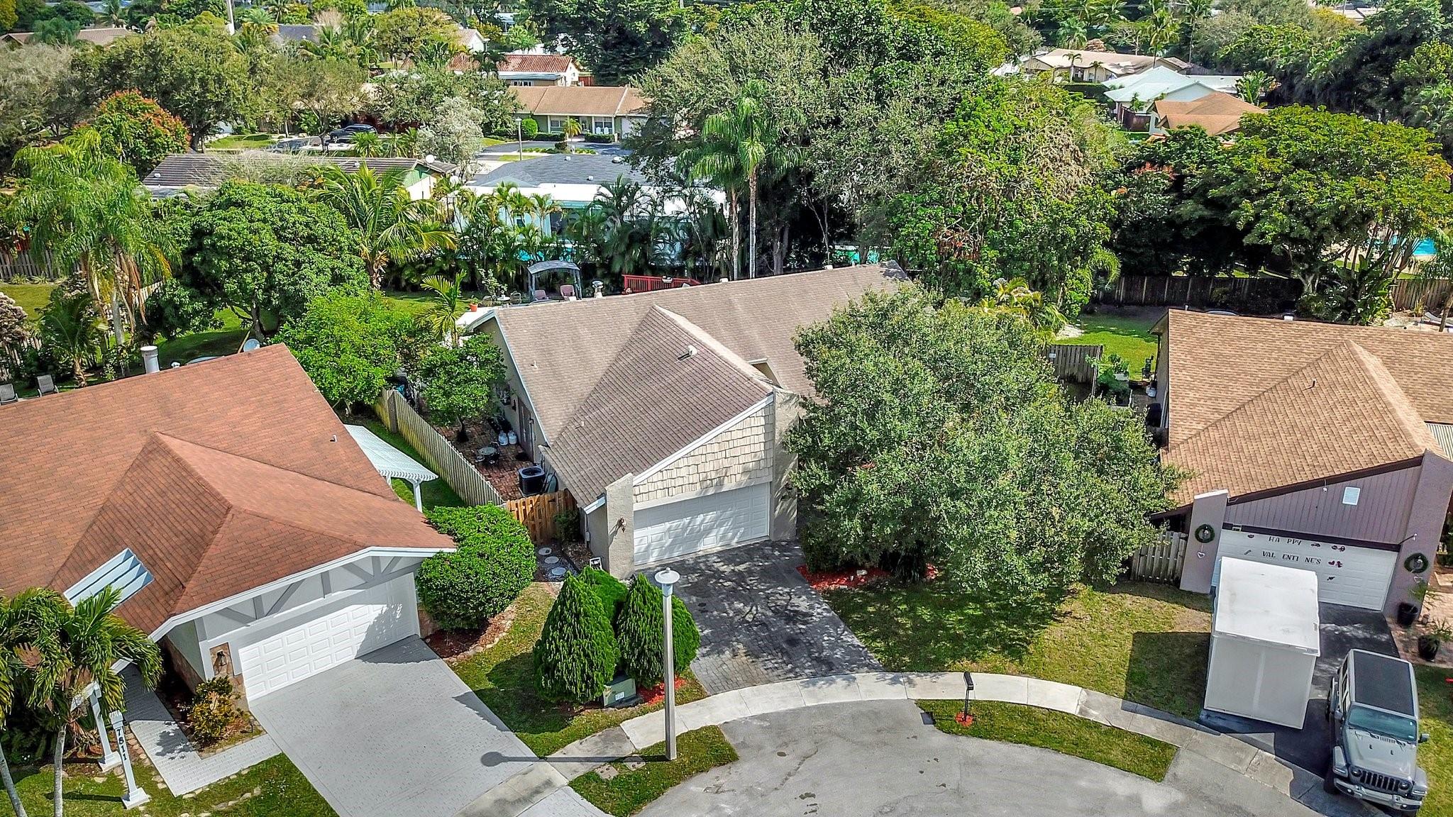 What an AWESOME 3 bed 2 1/2 bath pool home on the end of a cul-de-sac street. This home features volume ceilings, updated bathrooms, a back wall of hurricane impact glass doors, a roof from 2018, an AC from Nov 2024 and a pool that was re surfaced 6 years ago. Sunken conversational pit with a wood burning fireplace. Large primary bedroom with California closets and large walk-in shower. The two other bedrooms also have large closets as well. Great house for entertaining. Oversized tropical back yard with multiple lounging areas and a wood burning fire pit. Close to the highways, shopping, schools, dining, 20-minute drive to Ft Laud Airport and so much more. Great family friendly neighborhood.