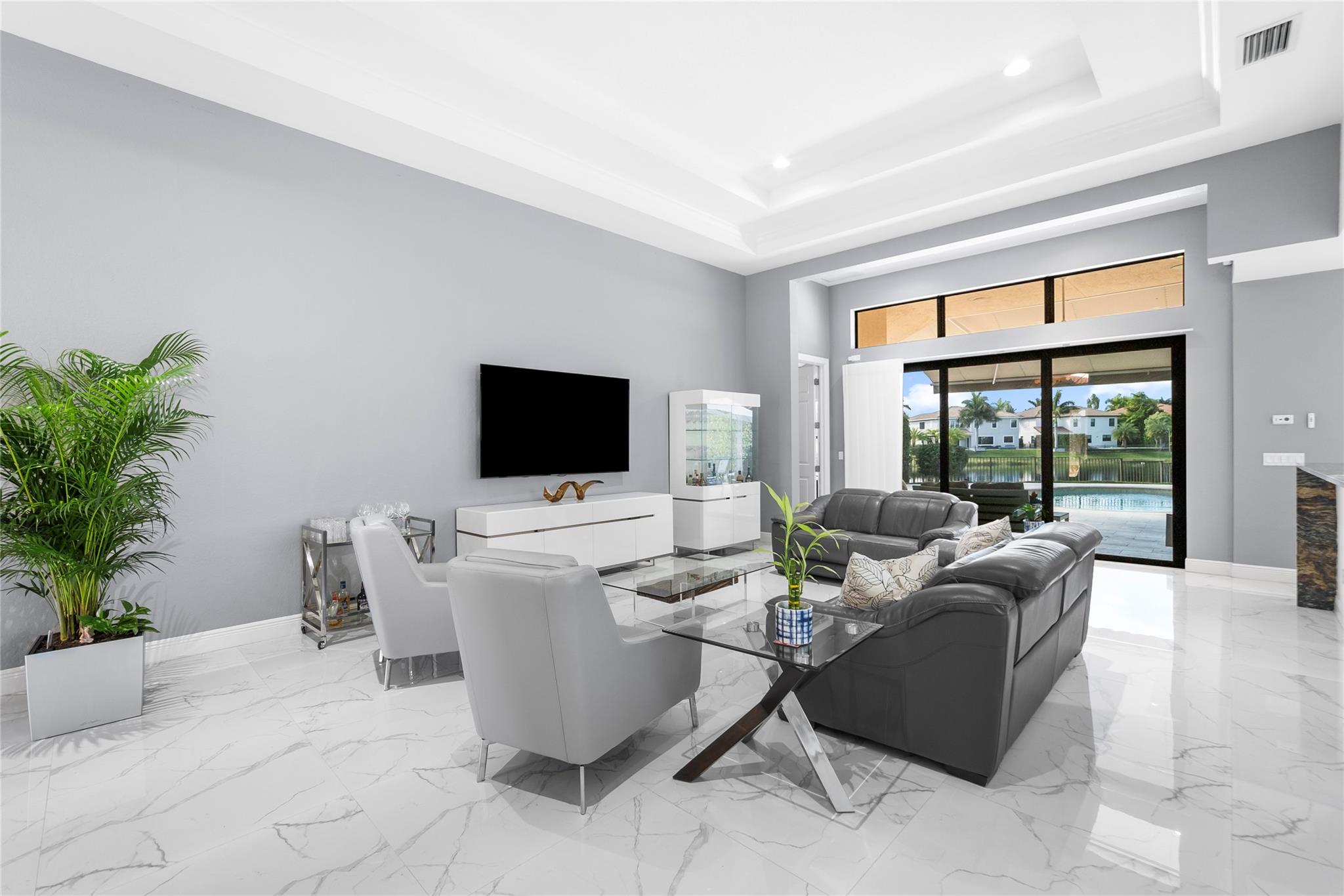 Nestled in the prestigious Parkland Golf & Country Club community this stunning Salerno model boasts 4 bed/3 bath, w/2-car garage, situated on an expansive lakefront lot that offers both privacy & ample outdoor space. The home features triple split floor plan w/soaring high ceilings and marble tile flooring, elegant marble tile throughout, & wood floors in the bedrooms. Gourmet kitchen w/granite countertops & Miele appliances. Spacious master suite w/ large walk-in closets, his/her vanities, Roman tub, and a separate shower. Enjoy breathtaking lake views from the oversized saltwater heated pool/spa. Impact windows/doors provide both security and peace of mind. This home is the epitome of luxury living, combining style, comfort, and an unbeatable location in a highly sought-after community.