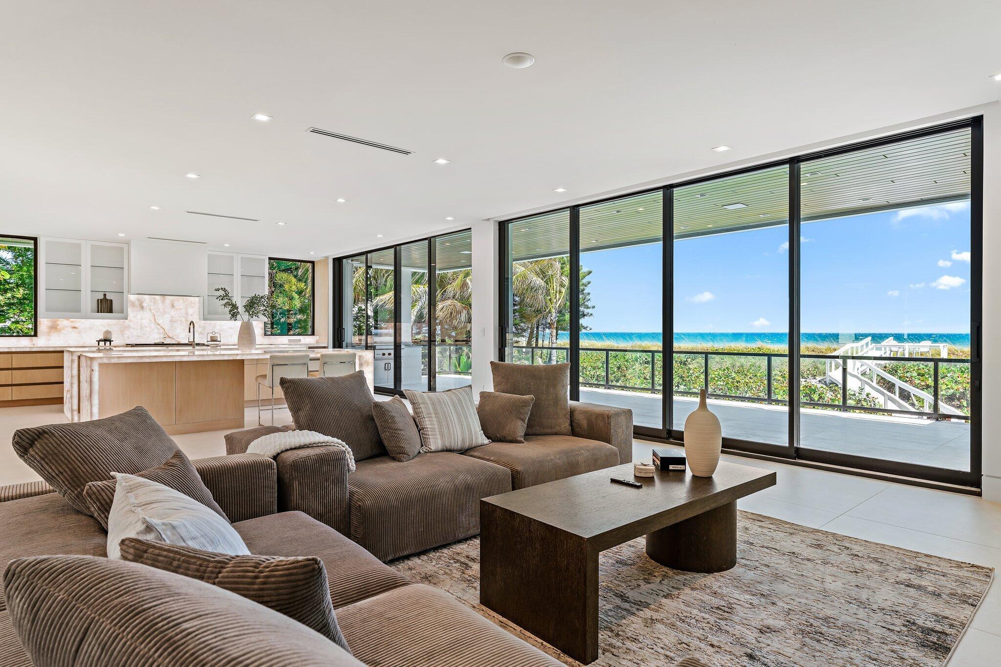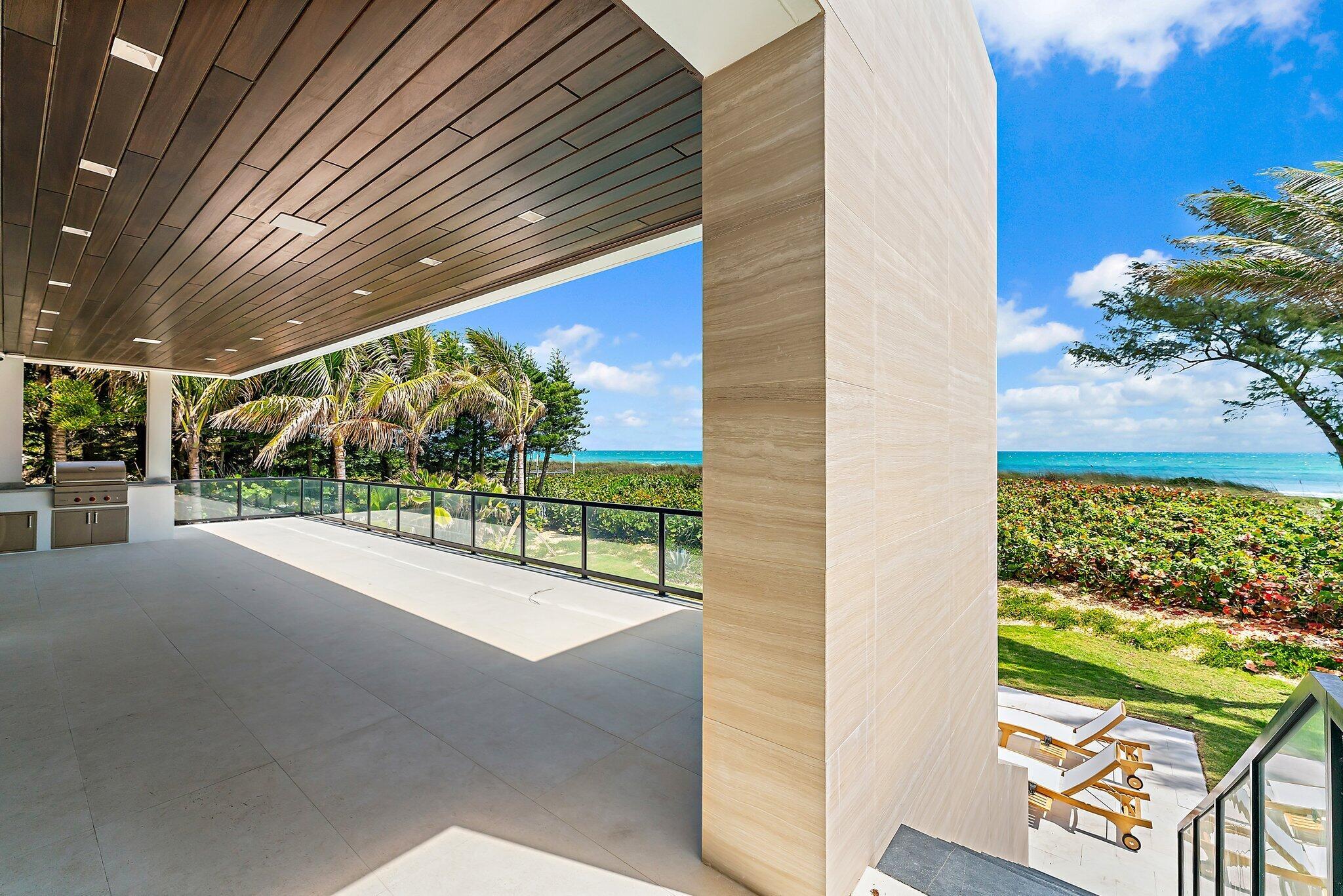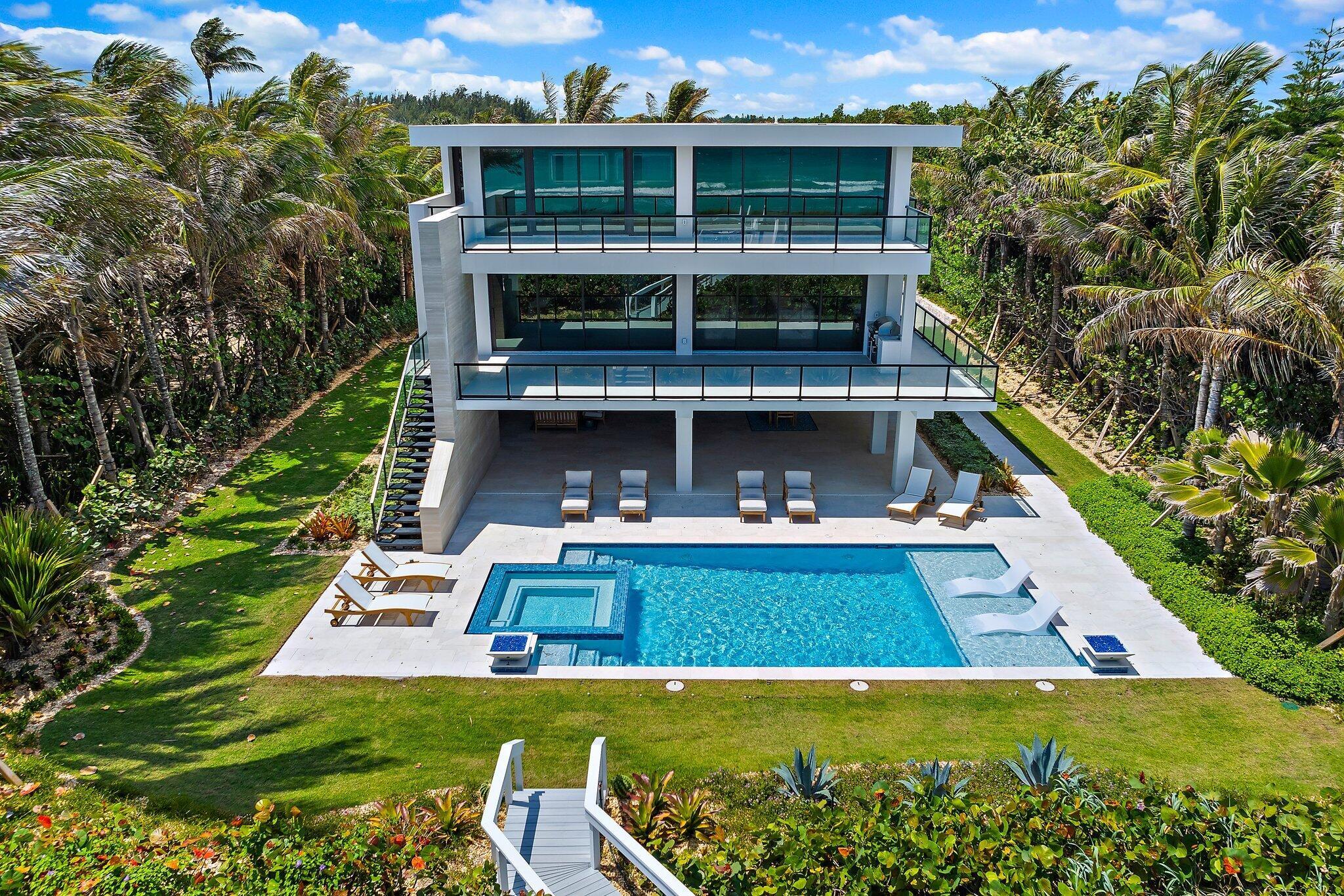 Welcome to Jupiter Island's newest modern beachfront masterpiece! This 3-story estate on 0.67 acres offers 100 feet of private beach frontage and ocean views from every room. Featuring 4 bedrooms + den, 5 full baths, 2 half-baths, a private elevator, chef's kitchen, and great room opening to a covered balcony. Enjoy the resort-style pool, spa, and private beach access. The master suite boasts a luxurious bath, dual closets, and a private balcony. Additional highlights: 3-car + golf cart garage, whole-house generator, and proximity to Jupiter, Palm Beach, Apogee Country Club and major airports. Coastal luxury at its finest!