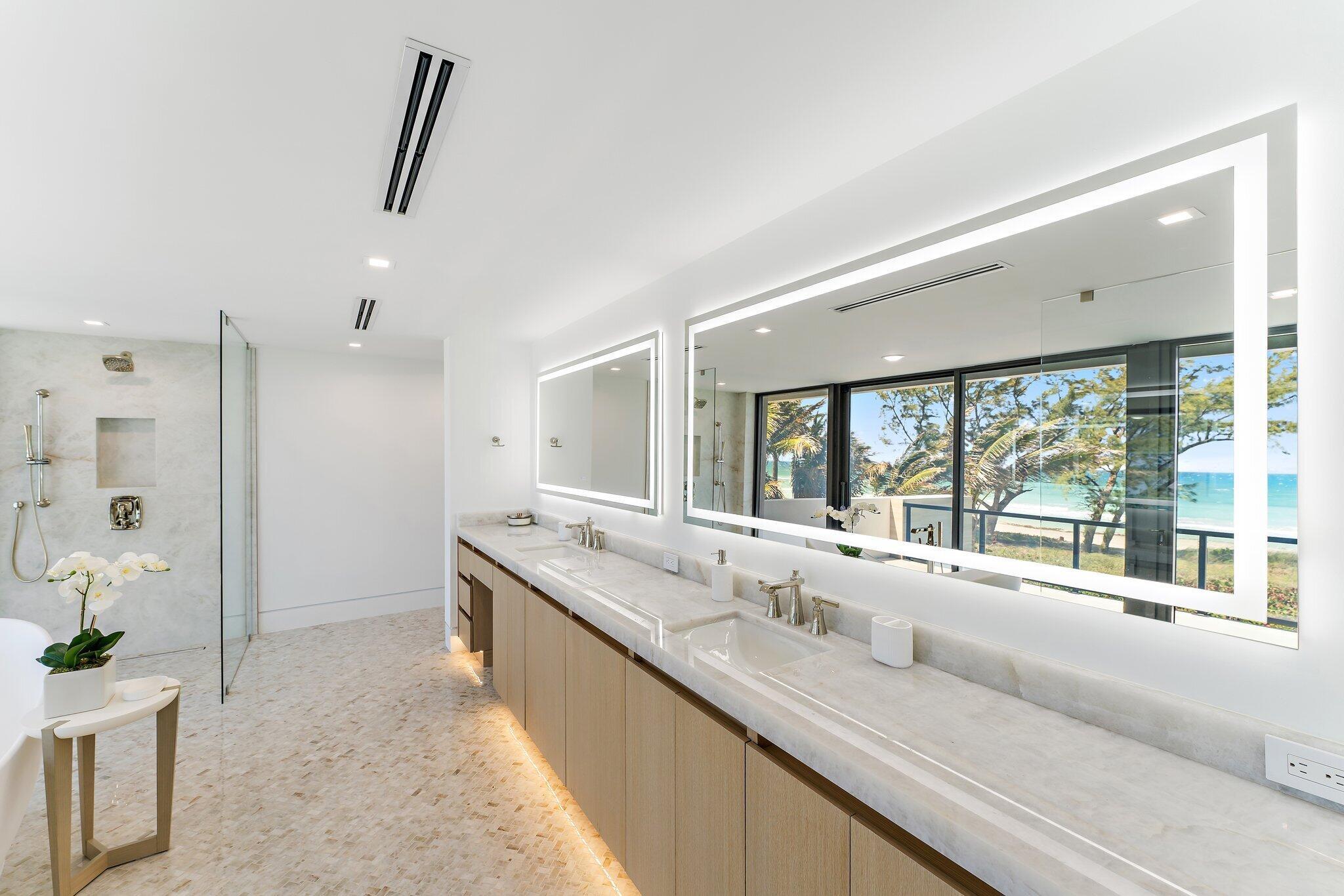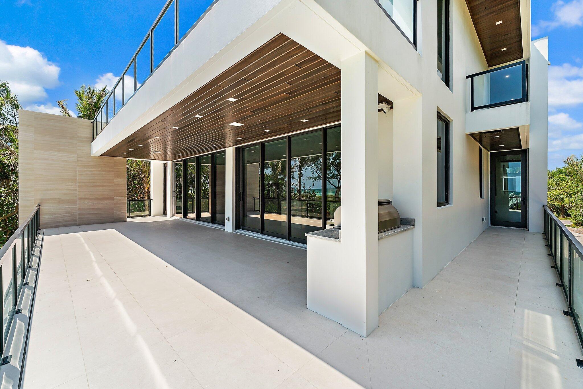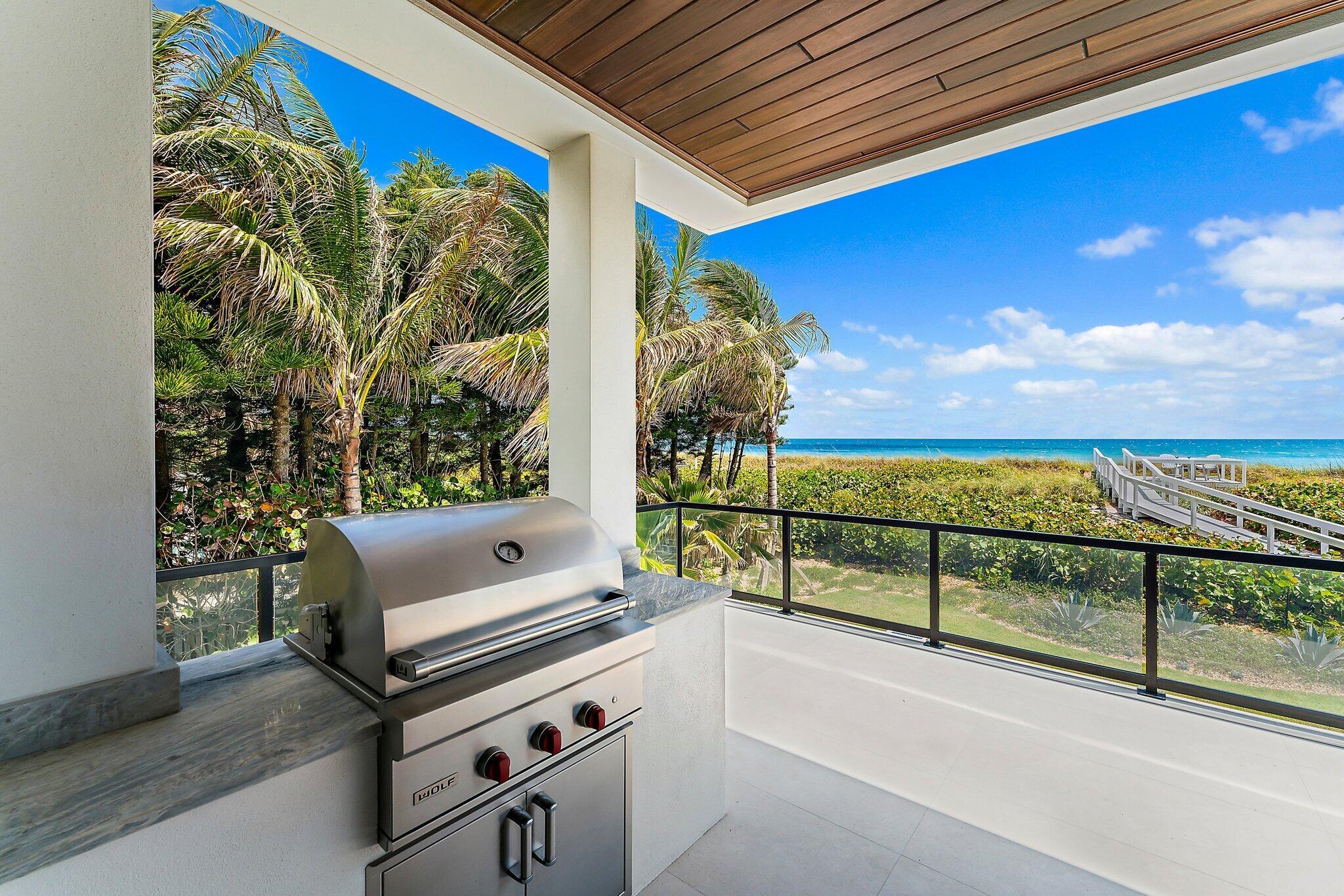 Welcome to Jupiter Island's newest modern beachfront masterpiece! This 3-story estate on 0.67 acres offers 100 feet of private beach frontage and ocean views from every room. Featuring 4 bedrooms + den, 5 full baths, 2 half-baths, a private elevator, chef's kitchen, and great room opening to a covered balcony. Enjoy the resort-style pool, spa, and private beach access. The master suite boasts a luxurious bath, dual closets, and a private balcony. Additional highlights: 3-car + golf cart garage, whole-house generator, and proximity to Jupiter, Palm Beach, Apogee Country Club and major airports. Coastal luxury at its finest!