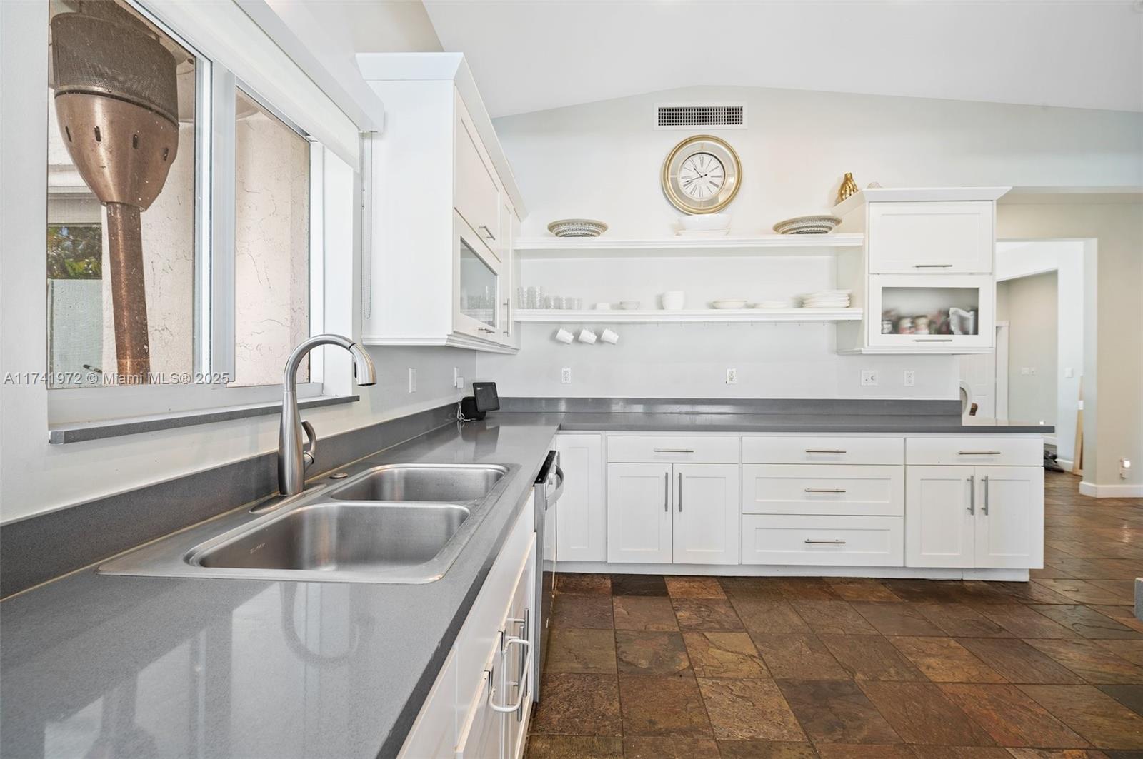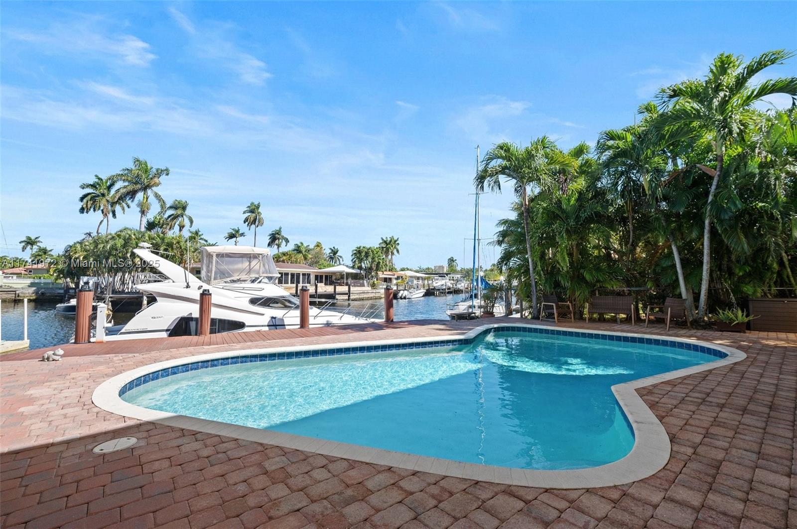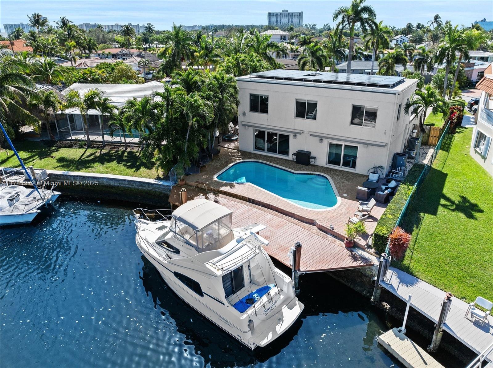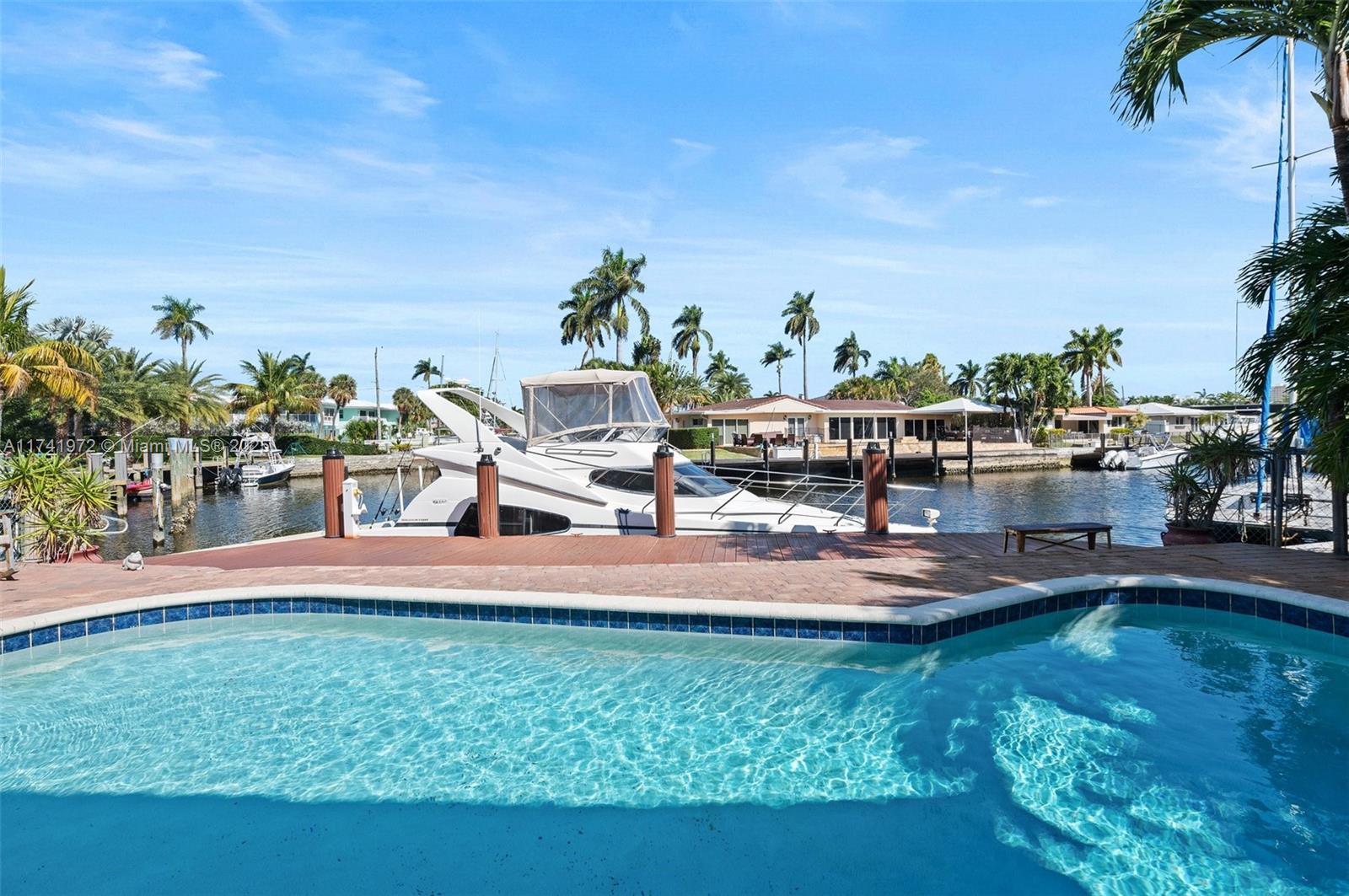 Discover coastal luxury in this spectacular waterfront oasis in Santa Barbara Shores! Boating enthusiasts will appreciate the 50-ft dock with ocean access and no fixed bridges, heated pool and beautiful water views. This 4 BR/3BA features 3,058 sq. ft. open and functional living space with master suite and one bedroom on the first floor and two additional bedrooms and versatile loft upstairs. Gourmet kitchen features wood cabinetry, quartz countertops, and stainless-steel appliances. Embrace modern efficiency with a 2021 roof, solar panels, impact windows/doors and Tesla charging station. Located just minutes from shopping, dining, and less than 10 minutes from the beach. Experience the best of South Florida living in this turnkey waterfront retreat, where luxury meets functionality!