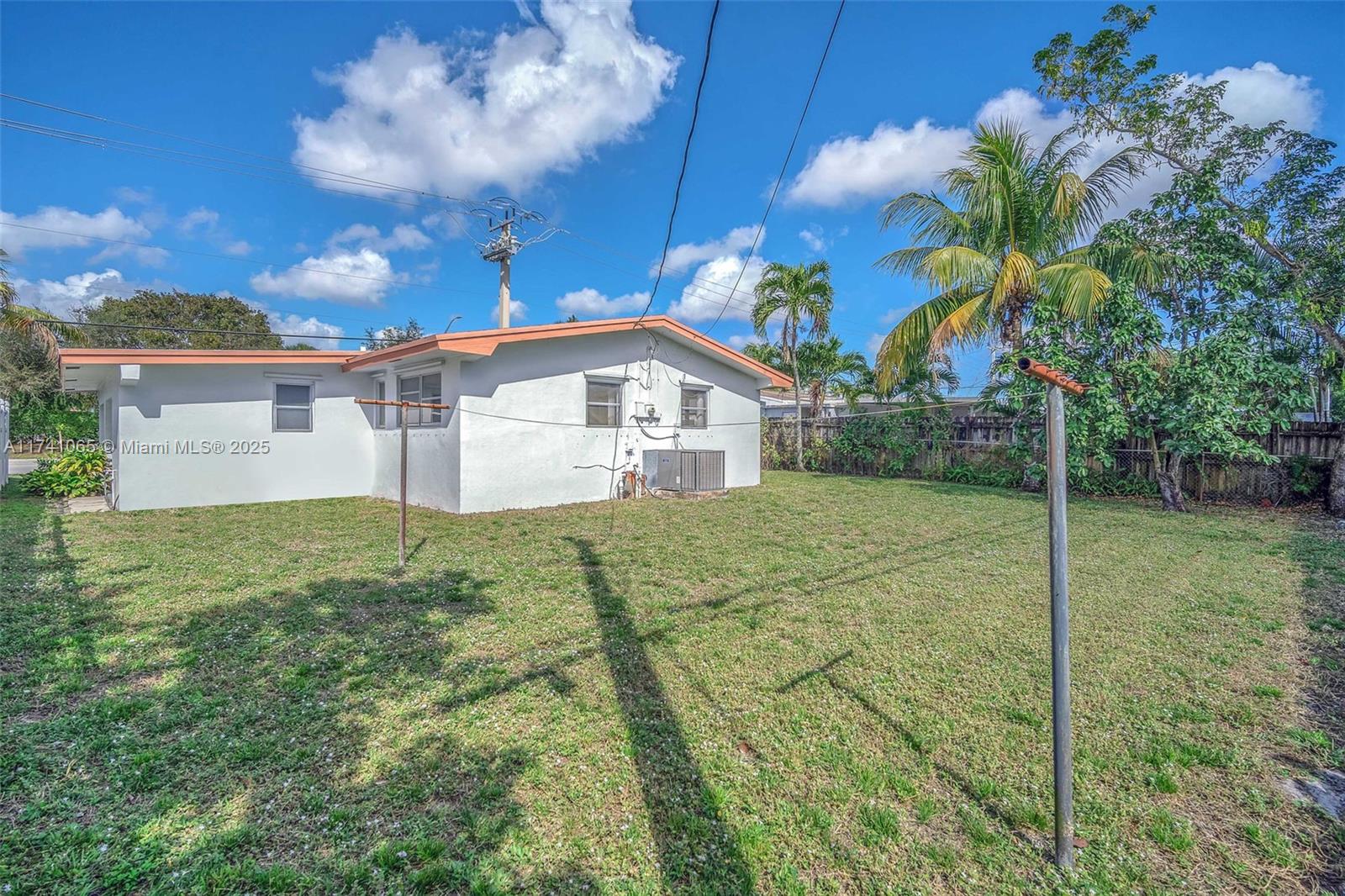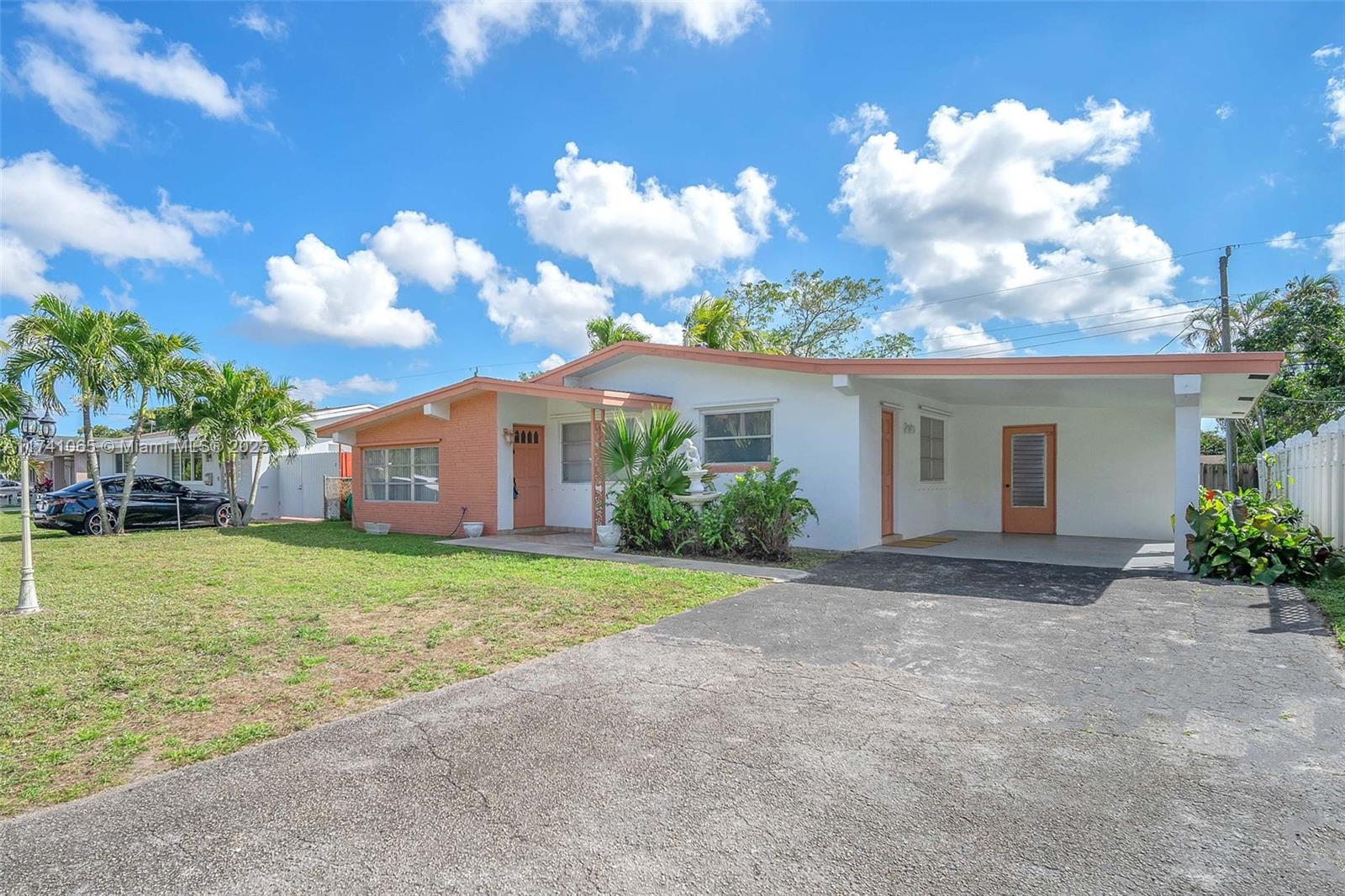 Welcome to this charming 2-bed, 1-bath home with a 1-car carport, spacious driveway, and a separate washer-dryer utility /storage room. Classic terrazzo floors with tons of natural light throughout! The separate living and dining areas create a great flow, while the large backyard offers plenty of space for an abundance of options such as a pool, gardening, to relax and/or entertain. No HOA means more freedom to make it your own! Enjoy peace of mind with a 2017 AC, 2022 water heater, and hurricane panels for storm protection. Conveniently located near shopping, dining, and Hard Rock.