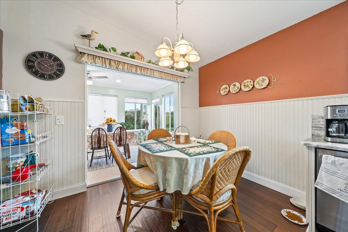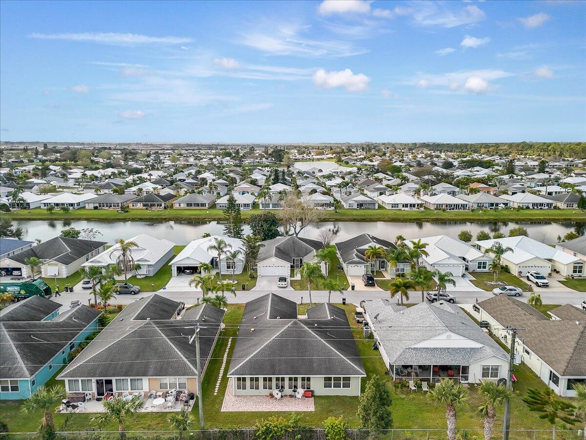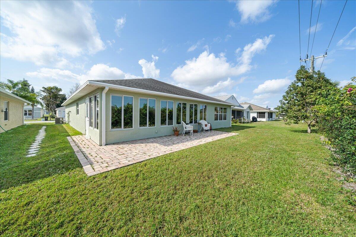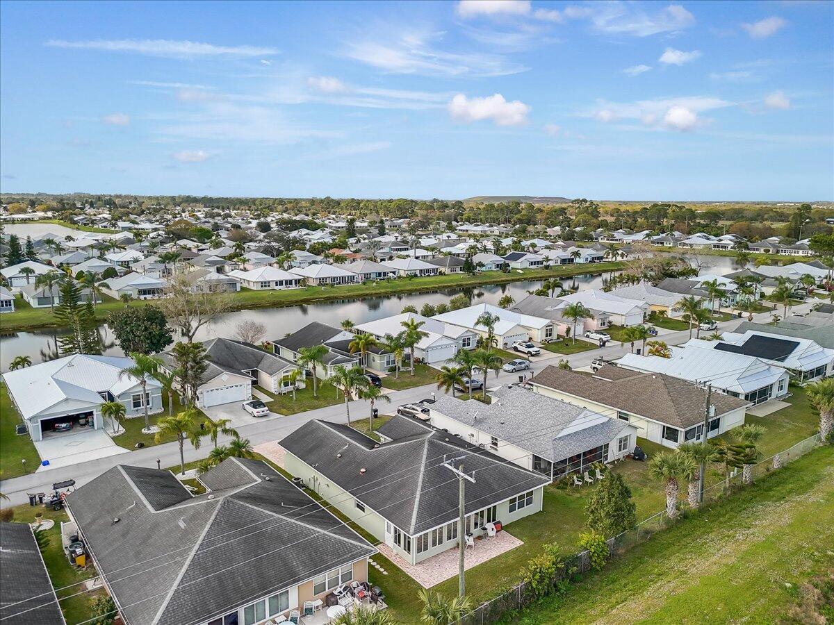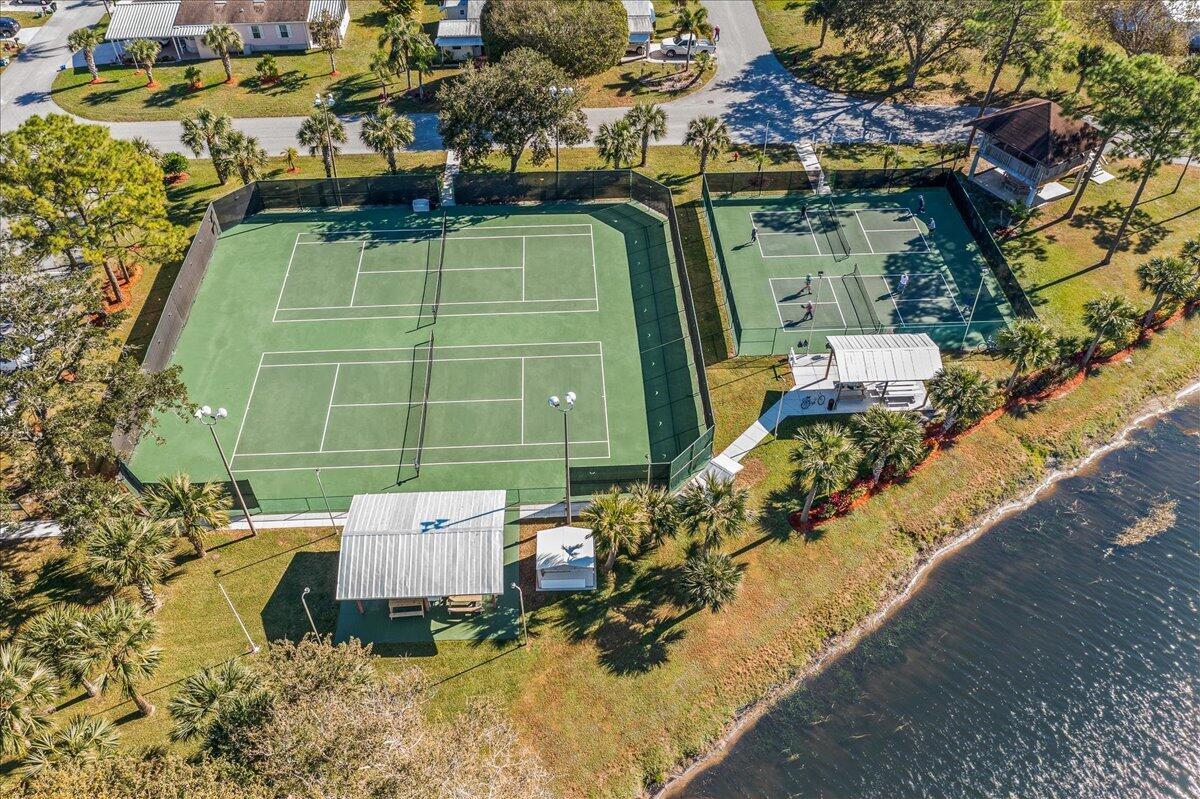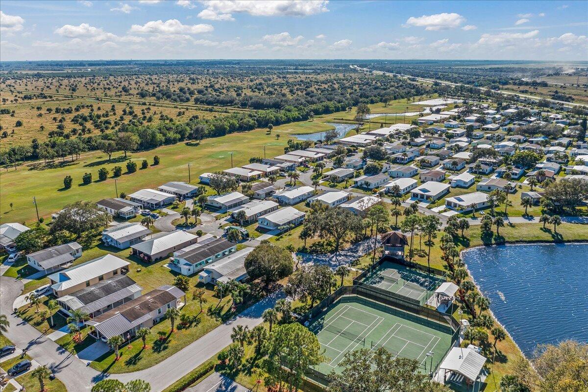 Morning coffee or evening cocktails on the enclosed lanai in this beautiful home in a 55+community. Entertain friends and family with meals that are a joy in the beautiful updated Kitchen with stunning cabinetry, stainless appliances and Granite countertops. Fabulous plank flooring. Both full baths are completely updated. Play golf, swim and tons of other activities available without leaving the community. Minutes from shopping, restaurants and all the amazing opportunities in the area. Situated between Vero Beach and Fort Pierce. NEW OWNERS LAND LEASE ESTIMATED AT $589