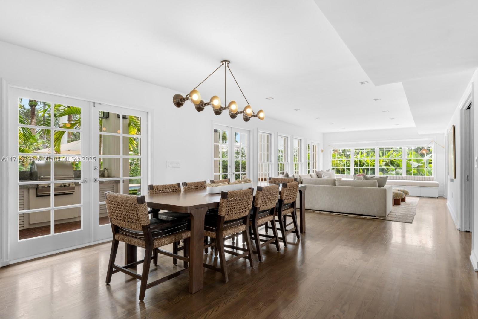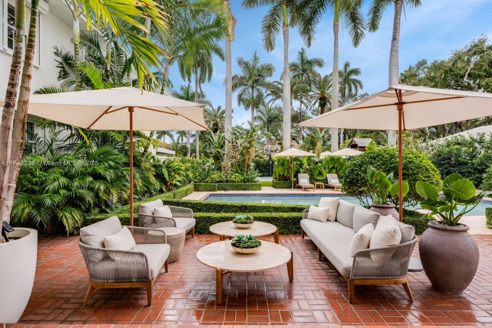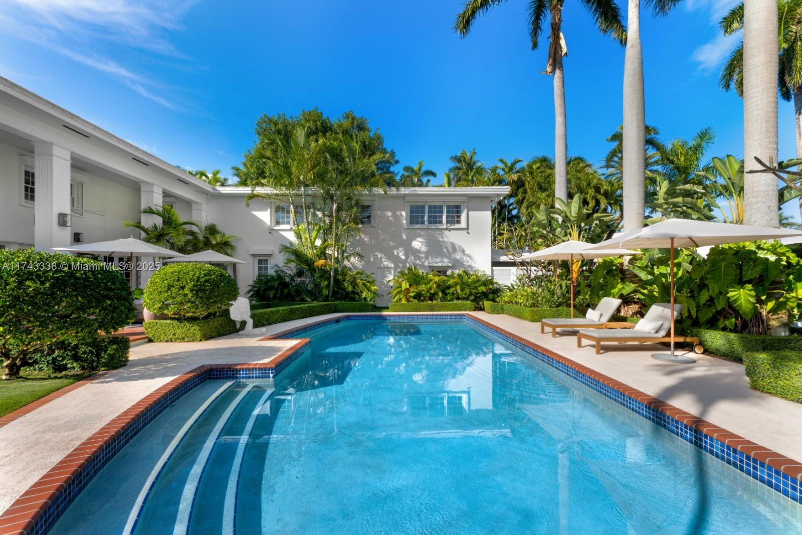 Nestled on exclusive guard-gated La Gorce Island, this exquisite colonial-style 2-story home has been meticulously renovated to blend timeless elegance with modern luxury. Boasting 6 bedrooms & 6.5 bathrooms across 5,472 square feet, the home sits on a 17,200 SF double-frontage oversized lot. This expansive home features a grand foyer, open kitchen to breakfast & family room w/ formal dining & living. Restored wood floors, a cozy fireplace and French doors bathed in natural light, offering serene views of the lush garden and pool. Outdoors complete w/ a half basketball court, and summer kitchen. The primary suite is a private retreat, including a sitting area, walk-in closet and a spa-like bath with separate tub & shower. This home offers unparalleled privacy, security and sophistication.