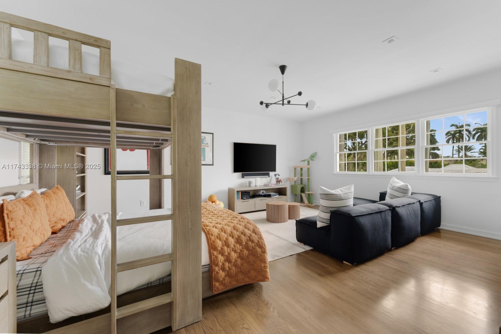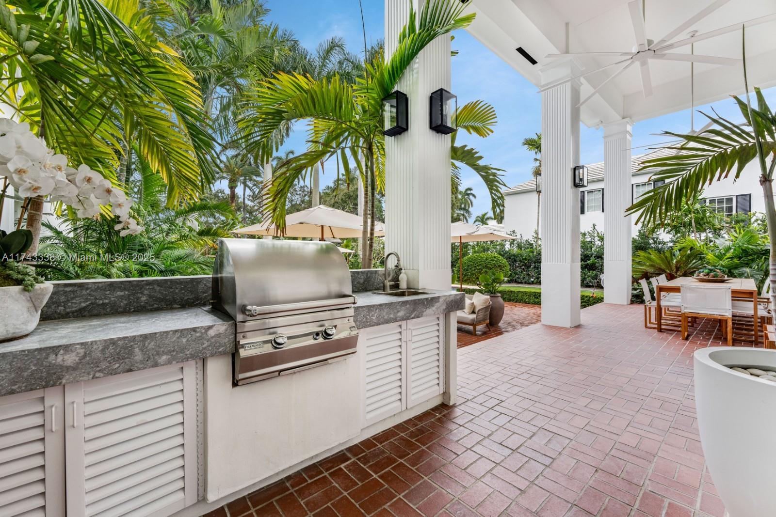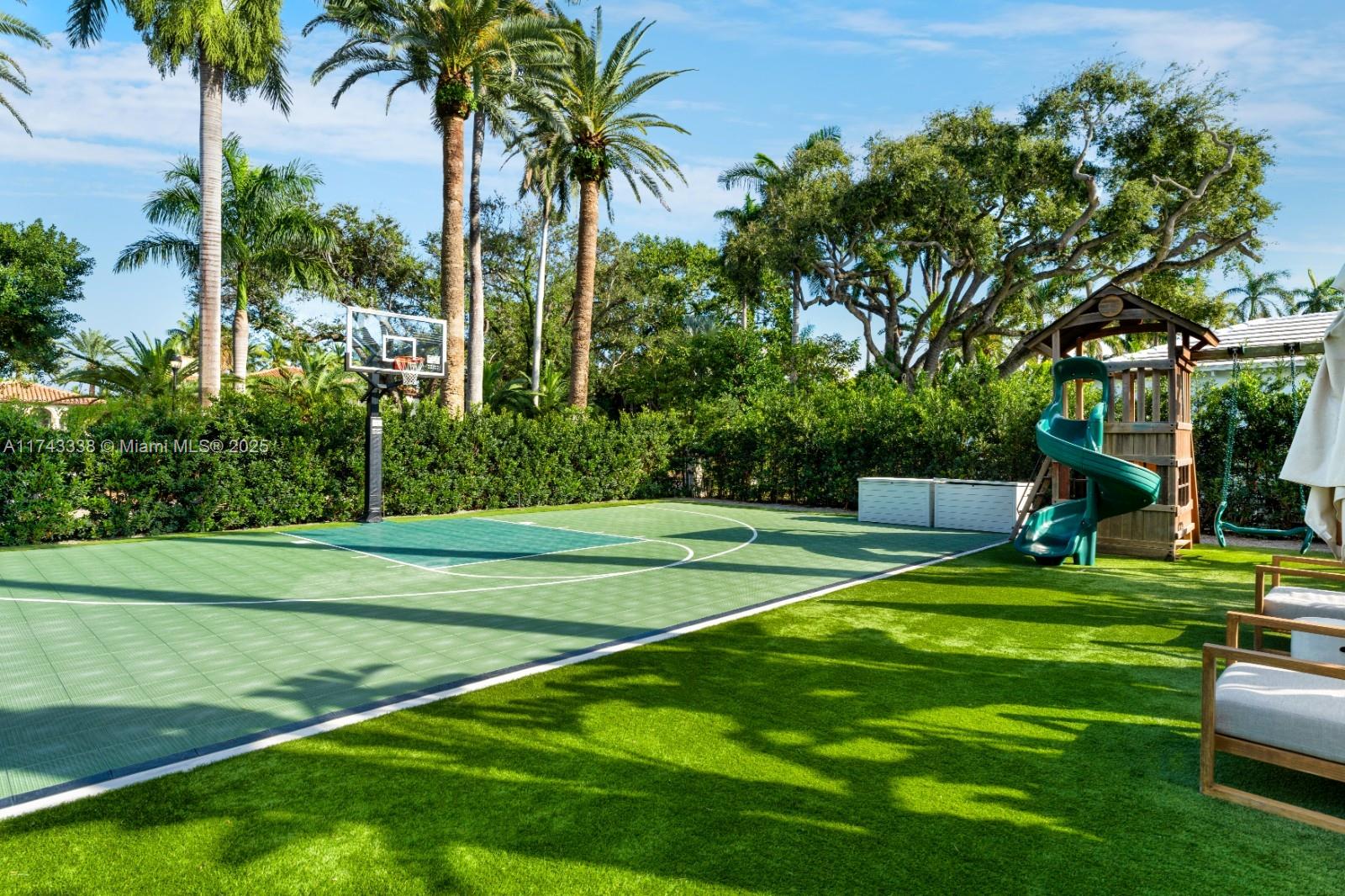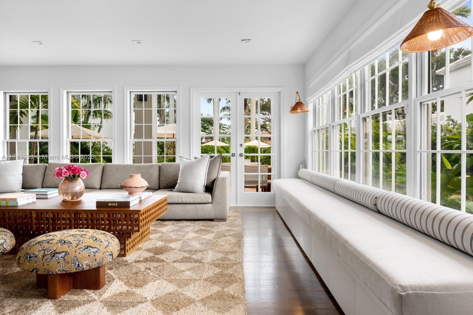 Nestled on exclusive guard-gated La Gorce Island, this exquisite colonial-style 2-story home has been meticulously renovated to blend timeless elegance with modern luxury. Boasting 6 bedrooms & 6.5 bathrooms across 5,472 square feet, the home sits on a 17,200 SF double-frontage oversized lot. This expansive home features a grand foyer, open kitchen to breakfast & family room w/ formal dining & living. Restored wood floors, a cozy fireplace and French doors bathed in natural light, offering serene views of the lush garden and pool. Outdoors complete w/ a half basketball court, and summer kitchen. The primary suite is a private retreat, including a sitting area, walk-in closet and a spa-like bath with separate tub & shower. This home offers unparalleled privacy, security and sophistication.