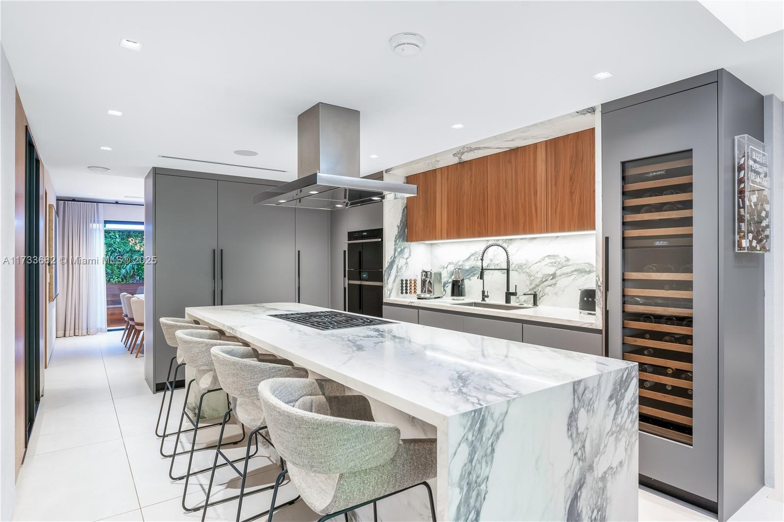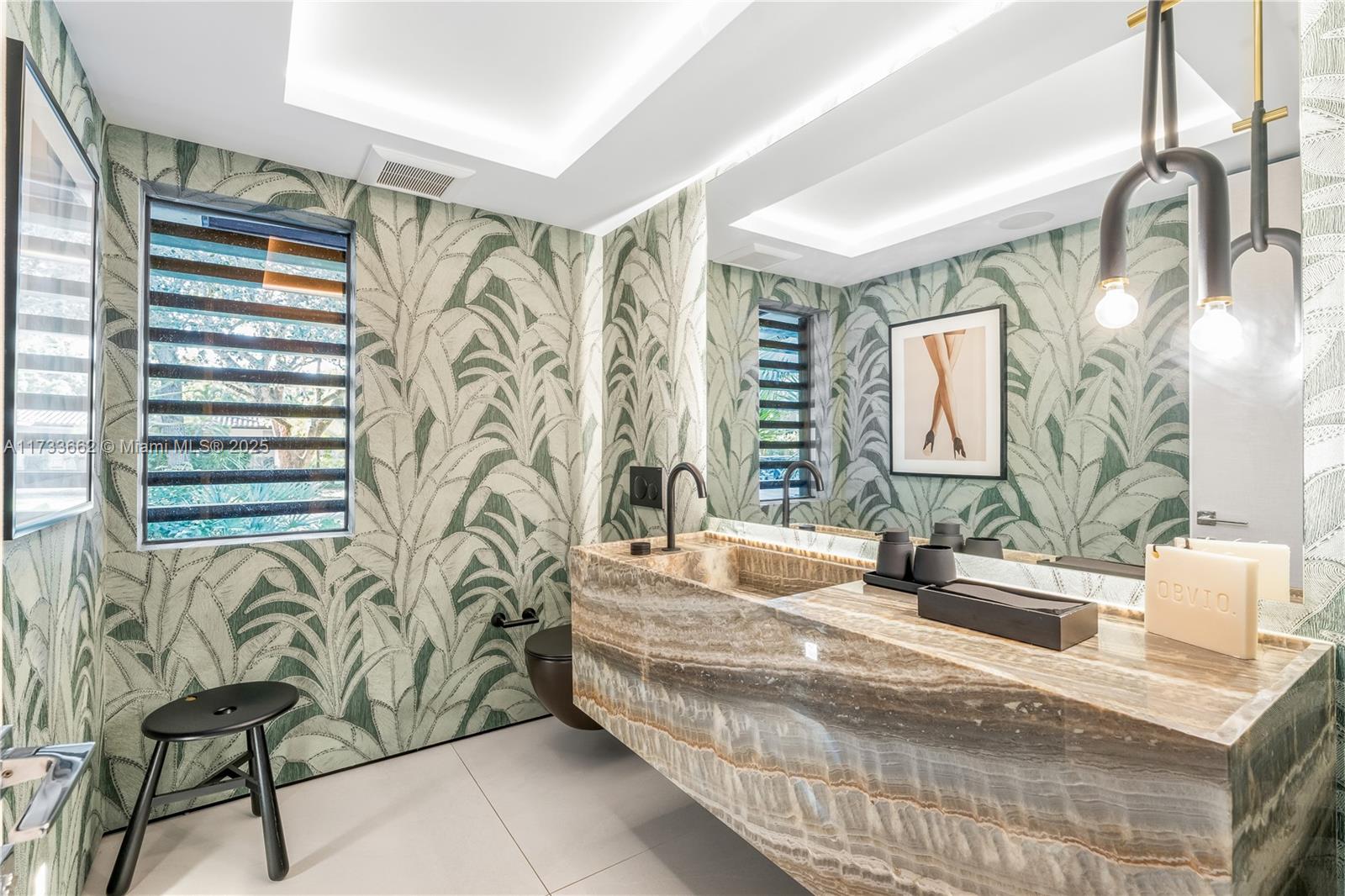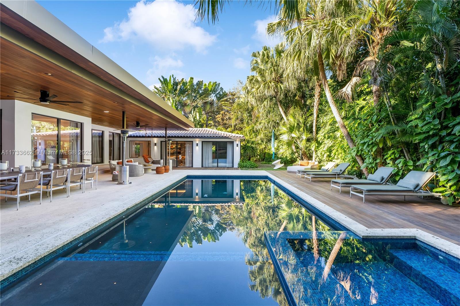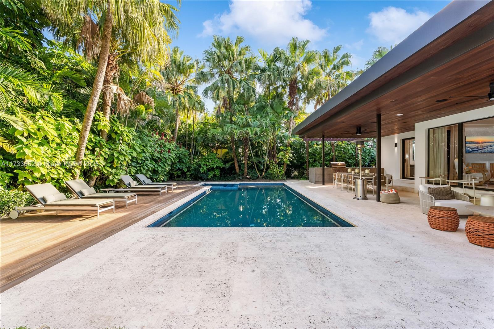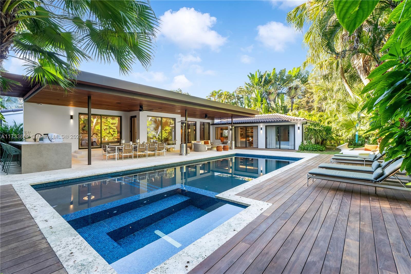Experience elegance with this fully renovated 4-bed,3.5-bath home by Design Solutions. The Coral Rock façade sets the tone for a sophisticated interior featuring a gourmet kitchen with a waterfall marble island, custom European cabinetry, and a glass-enclosed wine wall. Media lounge impresses with a backlit marble feature wall and custom shelving, while the sunroom offers a lush green wall, wraparound seating, and skylight roof. The primary suite boasts bespoke millwork and a spa-inspired bath with floor-to-ceiling marble and a rain shower. Floor-to-ceiling glass doors lead to a resort-style deck surrounded by lush landscaping. New Installed roof, great floor plan, two-car garage, and close to the Venetian Pool, Salvatore Park, Biltmore Hotel, and the area’s top public and private schools.