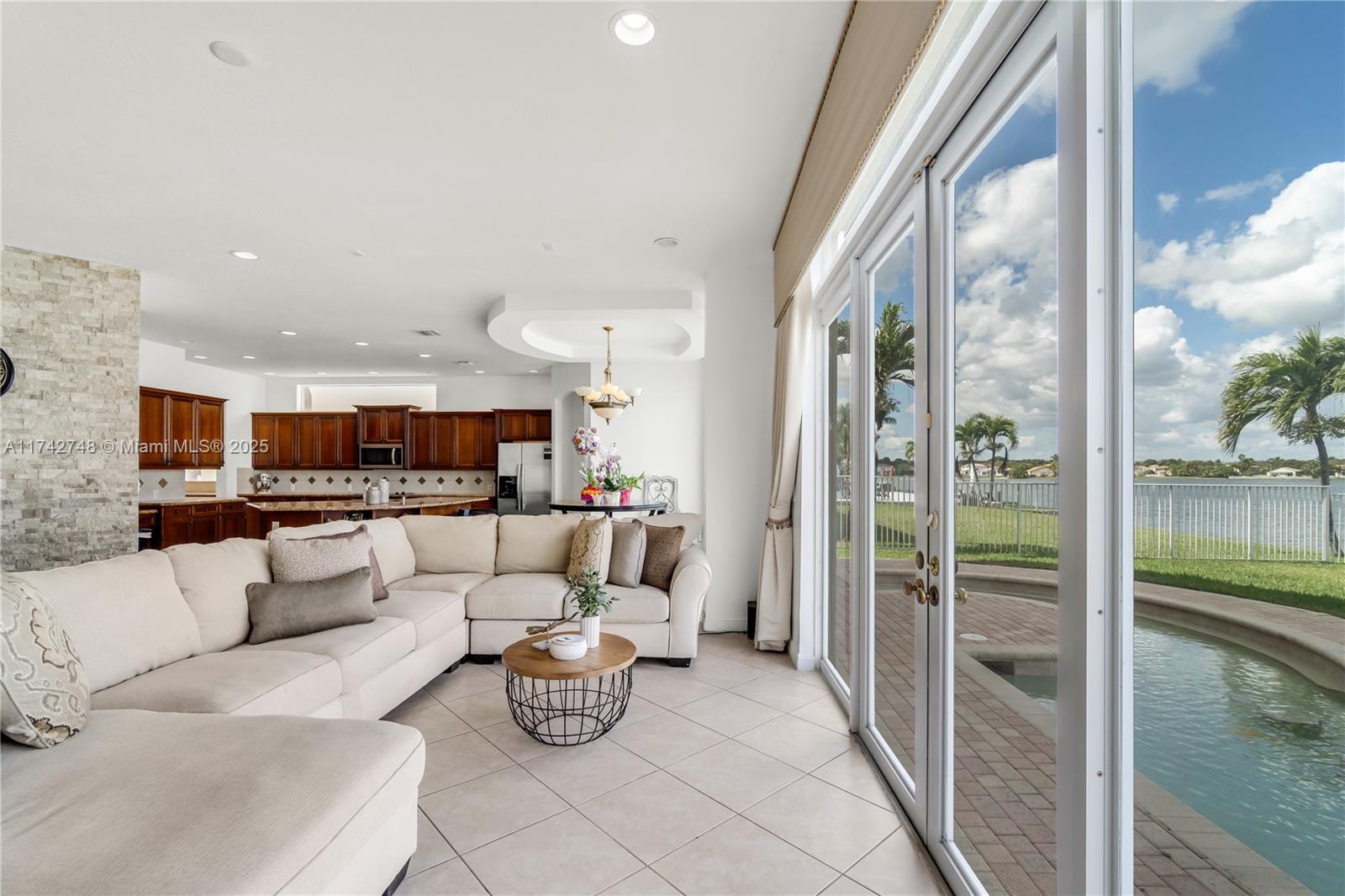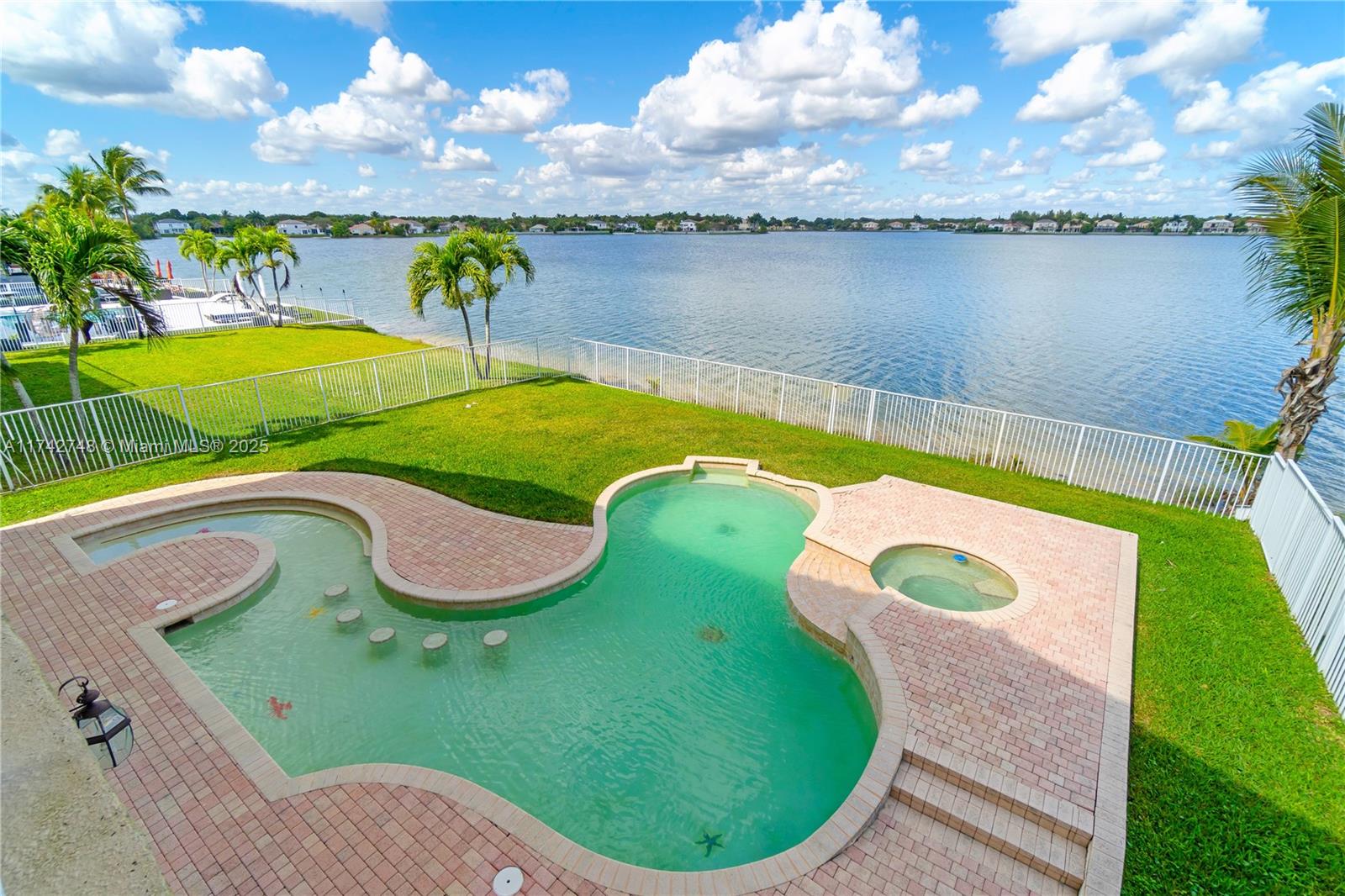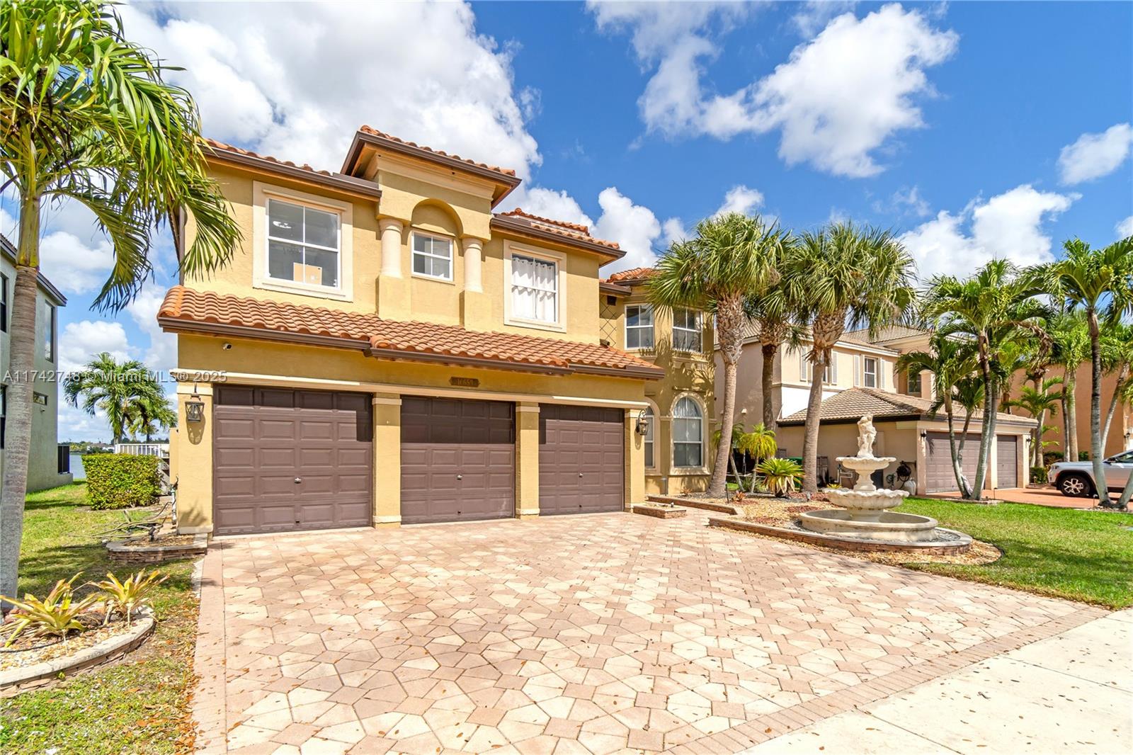 Exclusive waterfront opportunity in the gated community of Riviera Isles! This stunning 6-bedroom, 6-bathroom home with a 3-CAR garage boasts a lavish backyard oasis with a pool and spa, overlooking a breathtaking lake view. The home features an open concept with high double-volume ceilings, providing an airy and spacious feel. The gourmet granite kitchen includes plenty of counter space, built-in appliances, and an eat-in kitchen with everything you need. The breakfast area and large walk-in pantry offer ample storage space for your grocery and kitchen essentials. This home is a must-see! Close to schools, hospitals, supermarkets & shopping malls.