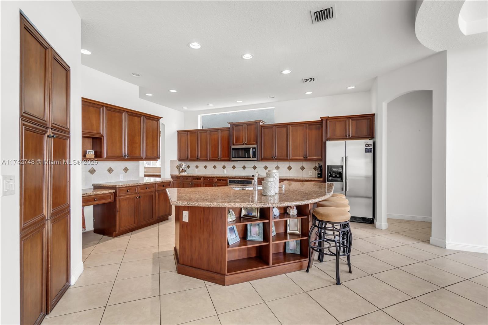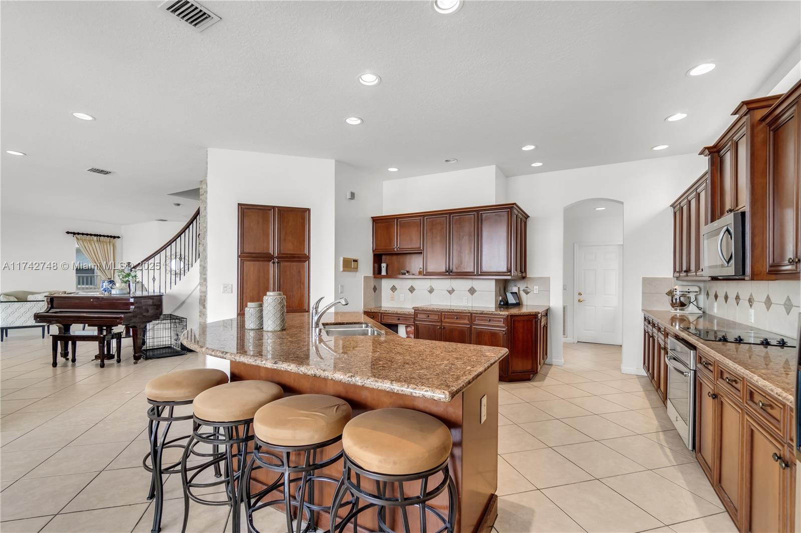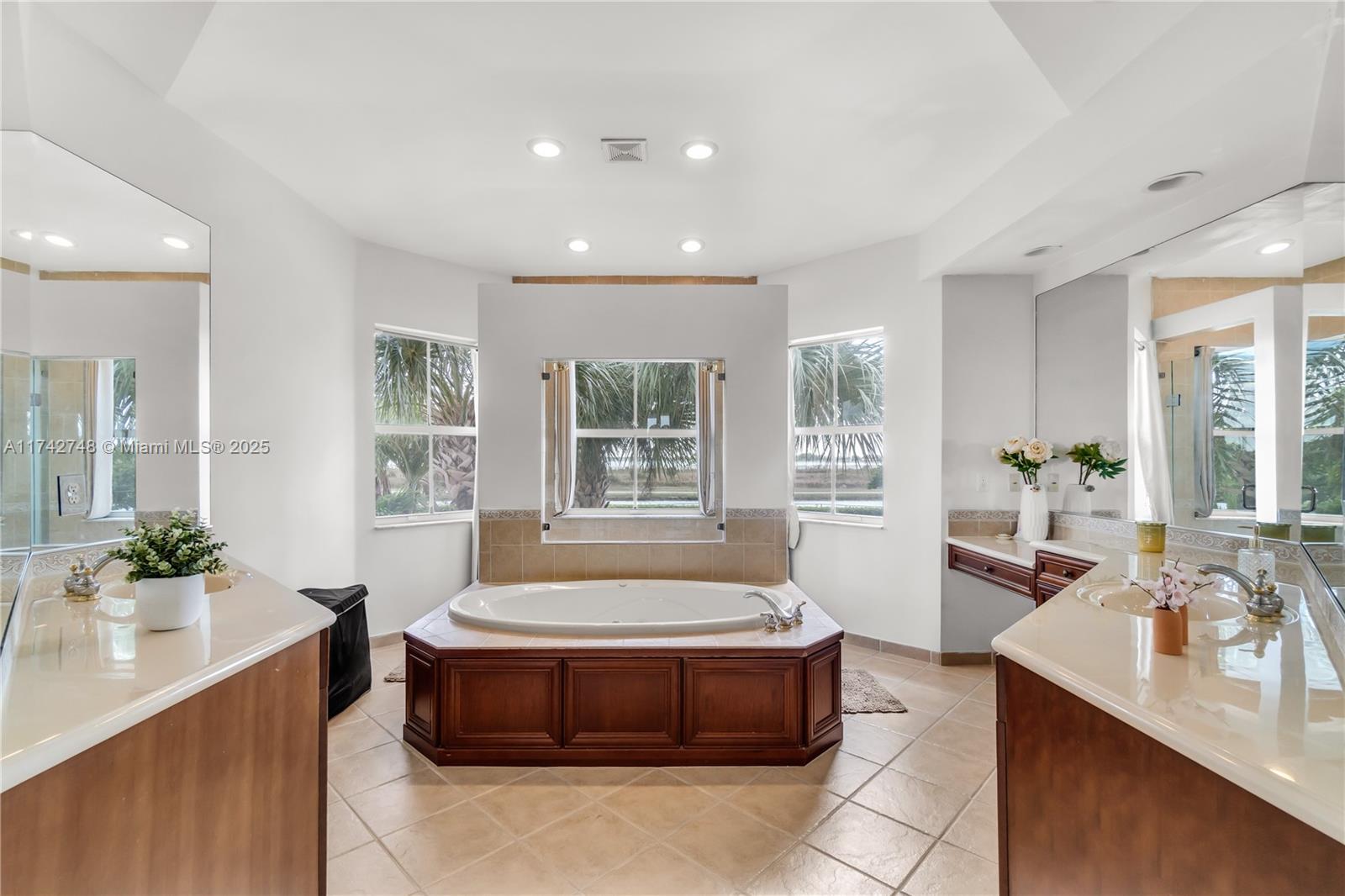 Exclusive waterfront opportunity in the gated community of Riviera Isles! This stunning 6-bedroom, 6-bathroom home with a 3-CAR garage boasts a lavish backyard oasis with a pool and spa, overlooking a breathtaking lake view. The home features an open concept with high double-volume ceilings, providing an airy and spacious feel. The gourmet granite kitchen includes plenty of counter space, built-in appliances, and an eat-in kitchen with everything you need. The breakfast area and large walk-in pantry offer ample storage space for your grocery and kitchen essentials. This home is a must-see! Close to schools, hospitals, supermarkets & shopping malls.