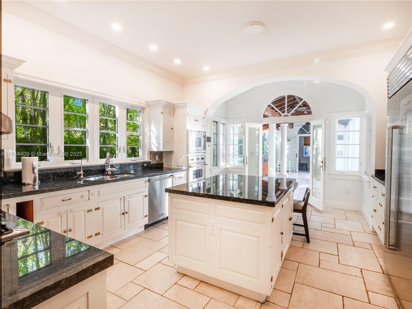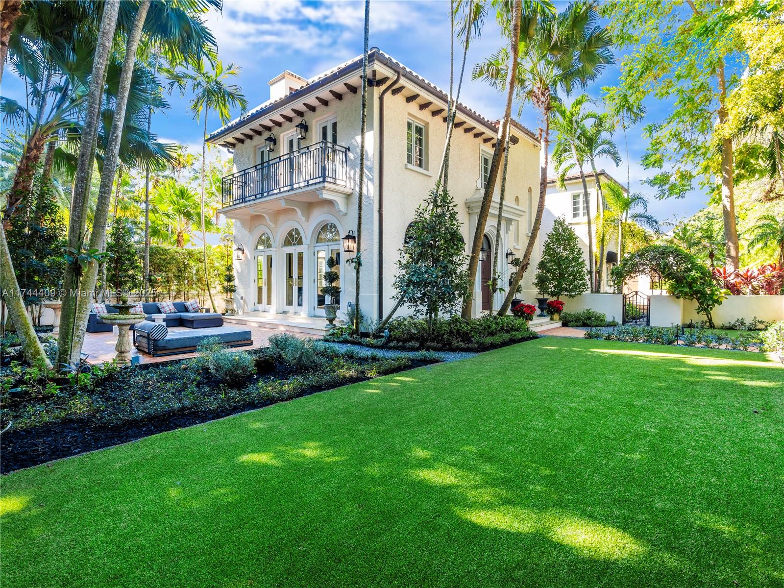 Experience sophisticated living in this elegant Coral Gables residence, gracefully situated on a coveted corner lot along the iconic Columbus Blvd. This beautiful Old Spanish-style home boasts 3,896 square feet of luxuriously appointed, light-filled living spaces. The gourmet eat-in kitchen, equipped with a gas stove, flows seamlessly into the airy interiors, complemented by rich hardwood floors. Upstairs, discover four spacious bedrooms, including a serene primary suite. The home offers multiple retreats and peaceful escapes, enhanced by a loggia, summer kitchen, and patios that frame a sparkling pool, inviting year-round indoor/outdoor entertaining. Surrounded by centennial Banyan Trees and lush landscape, this property embodies the epitome of the highly-coveted Gables lifestyle.