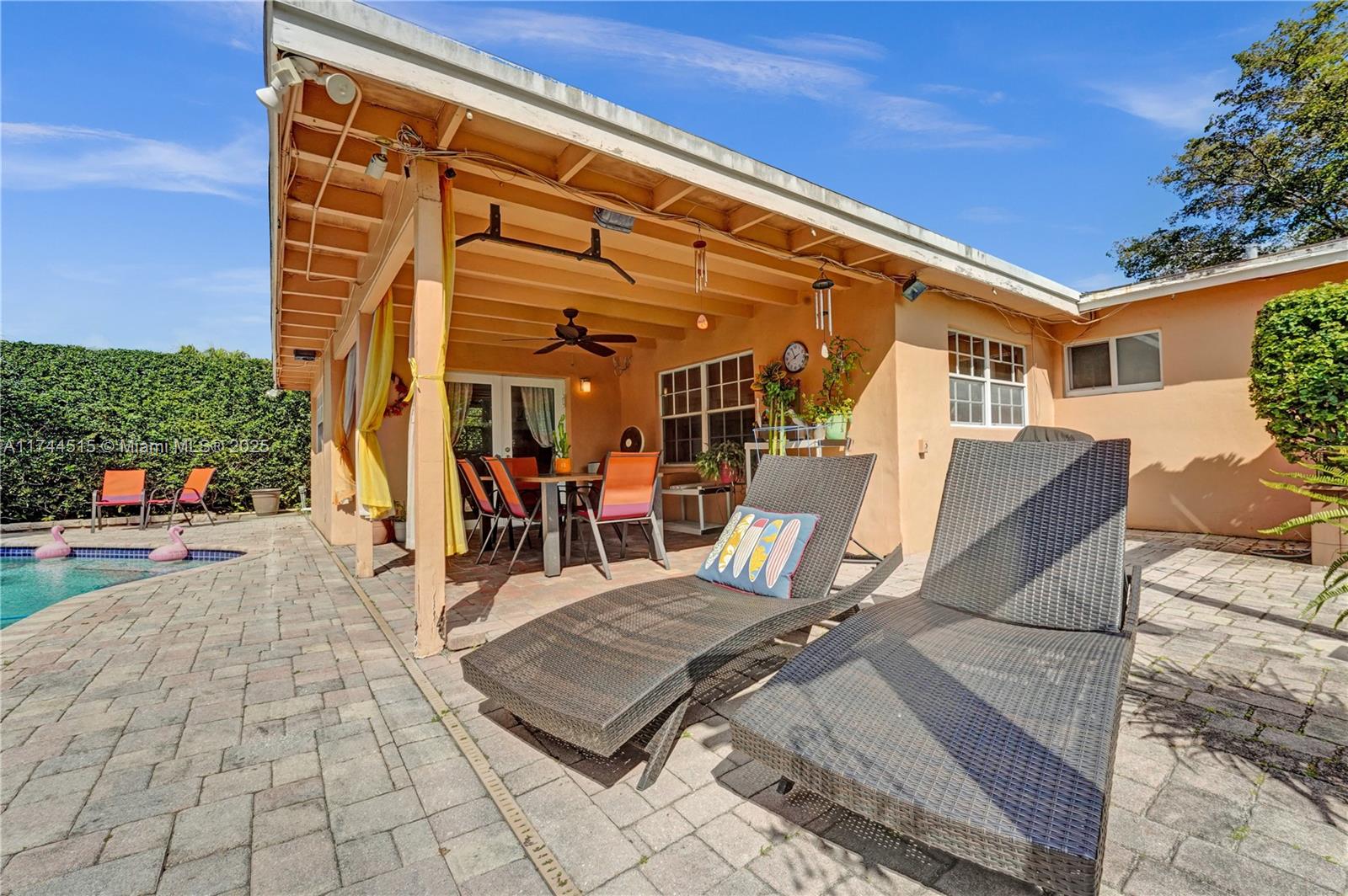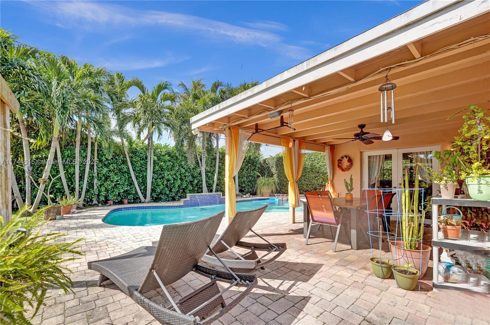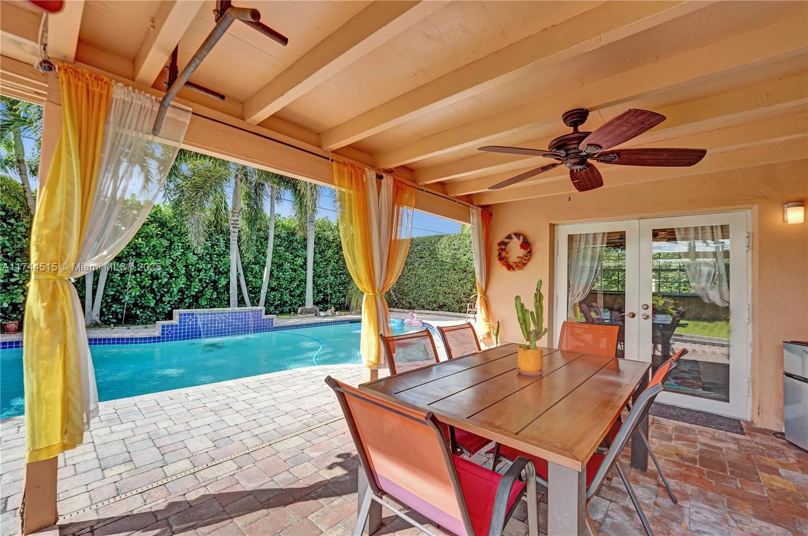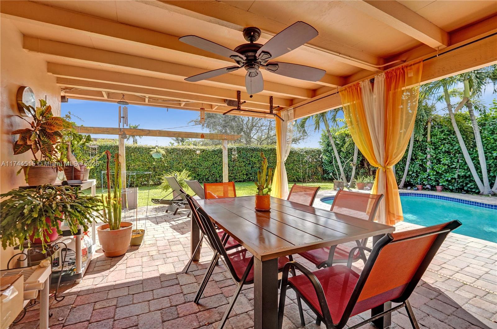 Open and spacious, 4-bedroom, 3-full-bath pool home in the heart of Hollywood Hills! All living spaces are open and make this home ideal for living, raising a family and entertaining. The piece de resistance is the resort-like backyard and in-ground pool with fountain, covered patio area for outdoor dining rain or shine and lots of green grass for playing games and watching your pets and family play! There's also a mosquito system, sprinkler with auto timer, 3 security cameras, house alarm, wired smoke detectors all with ADT, a storage shed with electricity, newer AC and water heater. Most windows and all doors are impact. Close to A-rated elementary school and houses of worship.