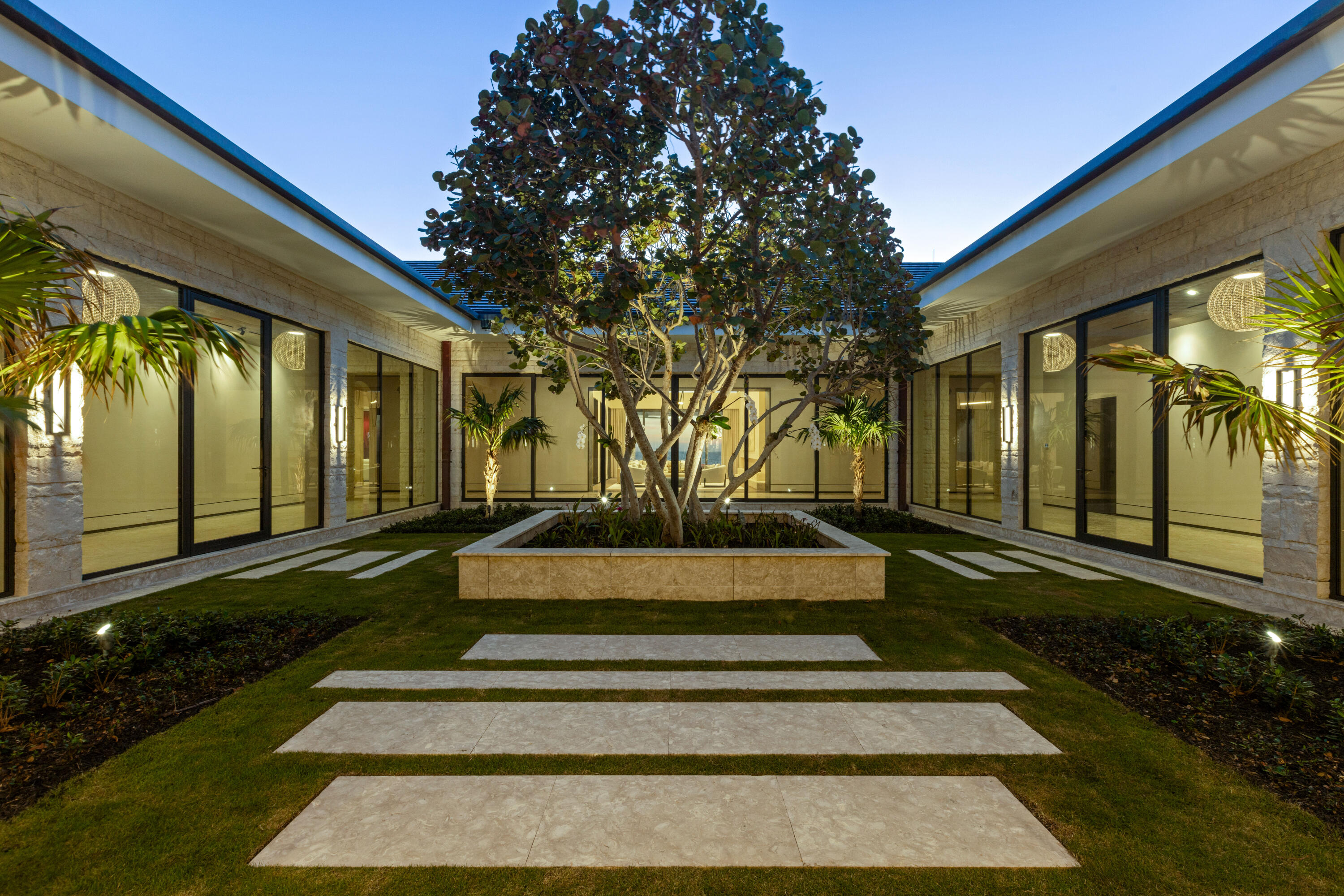 Set between the Atlantic Ocean and Intracoastal Waterway, 1160 S. Ocean Blvd is a rare retreat where architecture and nature exist in perfect harmony. Spanning 27,745+/- square feet under roof on nearly 2 acres, this newly completed estate offers 160 feet of direct ocean frontage and private Intracoastal access, creating an unrivaled connection to land and sea. Designed with balance and thoughtful craftsmanship, the 25,197+/- square-foot main house flows effortlessly from one space to the next. From the grand entry hall, the journey unfolds--a symphony of light and space, where the living room merges with the ocean beyond. The formal dining room, with its ocean-facing bar, sets the stage for elegant entertaining, while the open-concept kitchen and family area form the heart of the home.