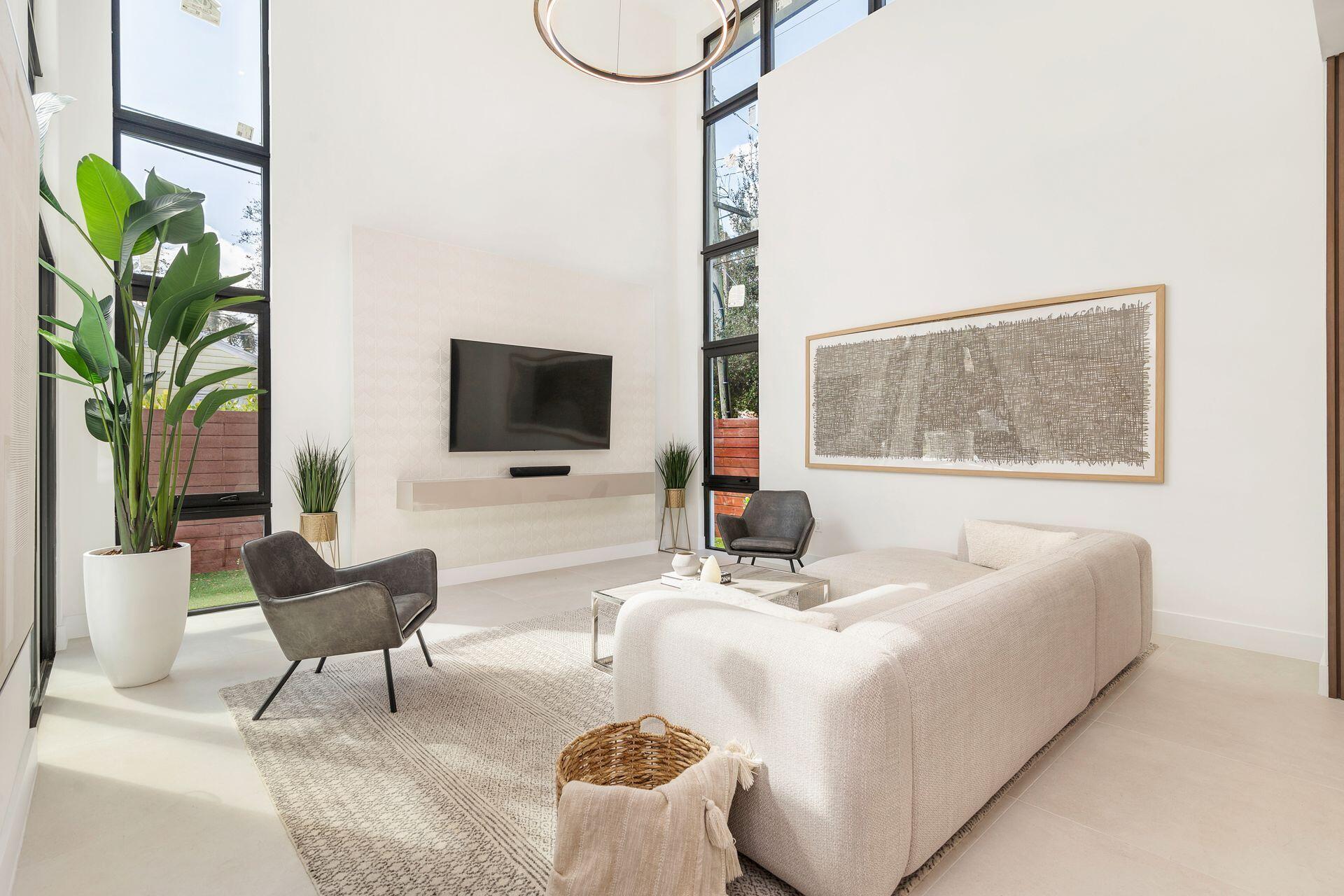 Stunning Contemporary Steel Home Near Downtown West Palm BeachExperience the pinnacle of modern living in this brand-new steel construction home, ideally situated just minutes from downtown West Palm Beach and the Intracoastal Waterway. Designed with sleek contemporary style, this architectural masterpiece offers a perfect balance of elegance, functionality, and cutting-edge design.Step inside to soaring 24-foot ceilings and an open-concept layout flooded with natural light. Floor-to-ceiling windows frame the stunning surroundings, creating a seamless indoor-outdoor connection and a bright, airy ambiance. Clean lines and high-end finishes define the space, offering a minimalist aesthetic that feels both sophisticated and inviting.This 3 bedroom, 3.5 bath residence is