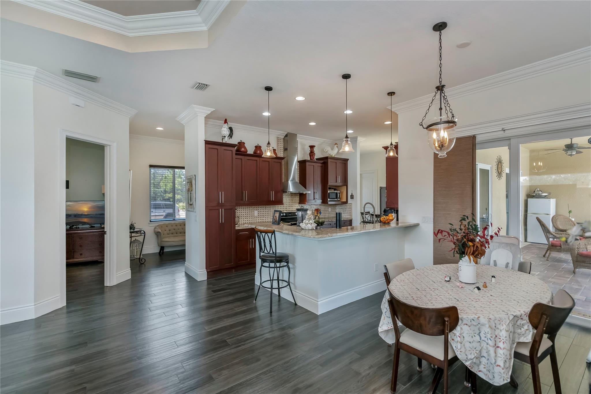 Beautiful Costume Pool Home on corner 1 acre lot, 3 bedrooms + den/office, 2.5 bathrooms, 2 car garage, Custom wood cabinets, granite countertops, 10'8'' ceilings with 8'' crown molding, ceiling fans, costume light fixtures, spacious Livingroom, tile throughout, 7'' baseboards, coffered ceilings in master and living room, his and hers vanity, his and hers closet, spacious laundry room with plenty of storage, lanai, 15*30 pool, impact windows and doors, METAL ROOF! Stainless steel appliances, plenty of parking space on oversize paved driveway, high speed internet available, double circular driveway with electric gates and keypads, property is fence, 20'*40' carport with space for 4 cars, concrete slab set with 2 basketball hoops and lighting. House is wire with cameras and security system.