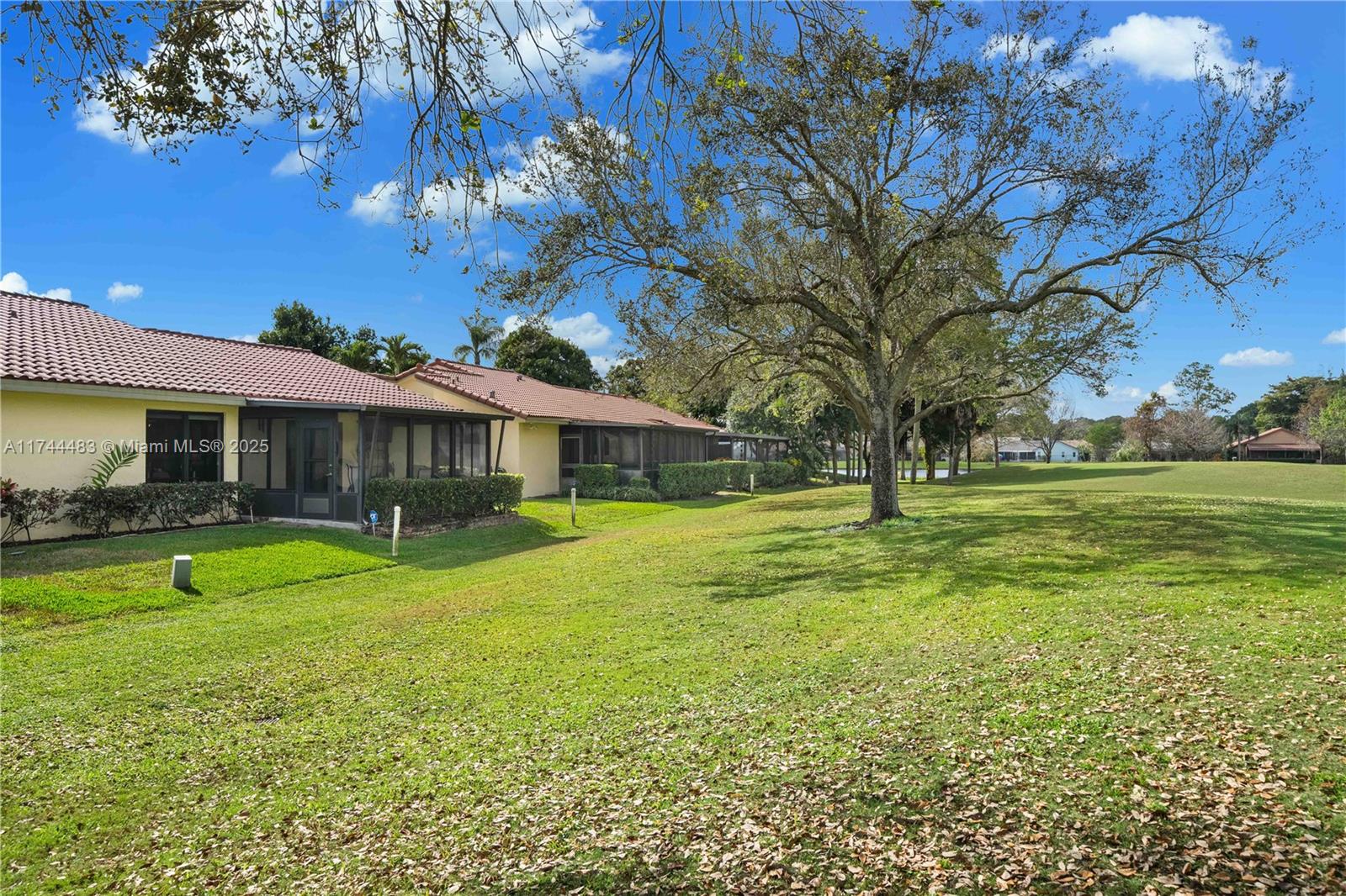 Enjoy tranquil Golf Course views from your spacious, well appointed 2/2 villa w/garage in desirable Alhambra Circle of Pine Island Ridge. Open floor plan boasts large rooms, ample storage & tile floors throughout. Spacious Primary bedroom w/custom walk-in closet & updated bath. Secondary bedroom is bright & airy with custom built-in closet. The 2nd bathroom is tastefully updated with additional storage in hallway. Other features include attached one car garage, Impact Windows, New Roof in 2014, updated kitchen w/granite counters, large screened-in patio with removable windows, side patio perfect for BBQ's, pre-wired for smart home features & more. With it's central location, peaceful setting & Country Club amenities, this is the perfect place to call home!
