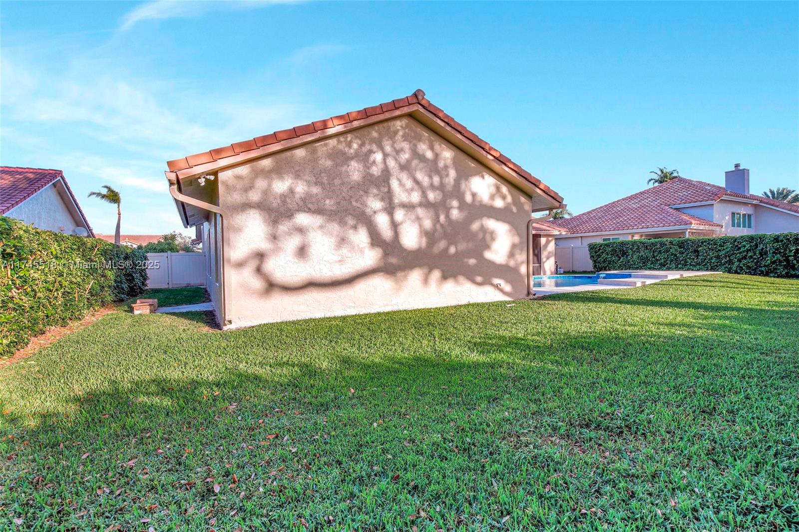 This is the one you have been waiting for!!!! 5/2 pool home in the newer section of Jacaranda Lakes. Just under 2,500 sq. ft. of living space on over a 1/4 acre lot. Gorgeous porcelain flooring in all main living areas, wood laminate floors in the bedrooms, and impact windows throughout. The updated kitchen boasts granite counters, wood cabinets, a center island, and overlooks the large family room. Enjoy vaulted ceilings in the oversized living and dining room which is perfect for those who like to entertain. Relax outside with your morning coffee in your expansive screened-in patio, or take a dip in the pool with plenty of room to roam in your backyard. 2007 Roof, 2014 AC, and 2019 Water heater. Low HOA, close to Publix, Plantation Walk, Sawgrass Mills Mall, and multiple highways.