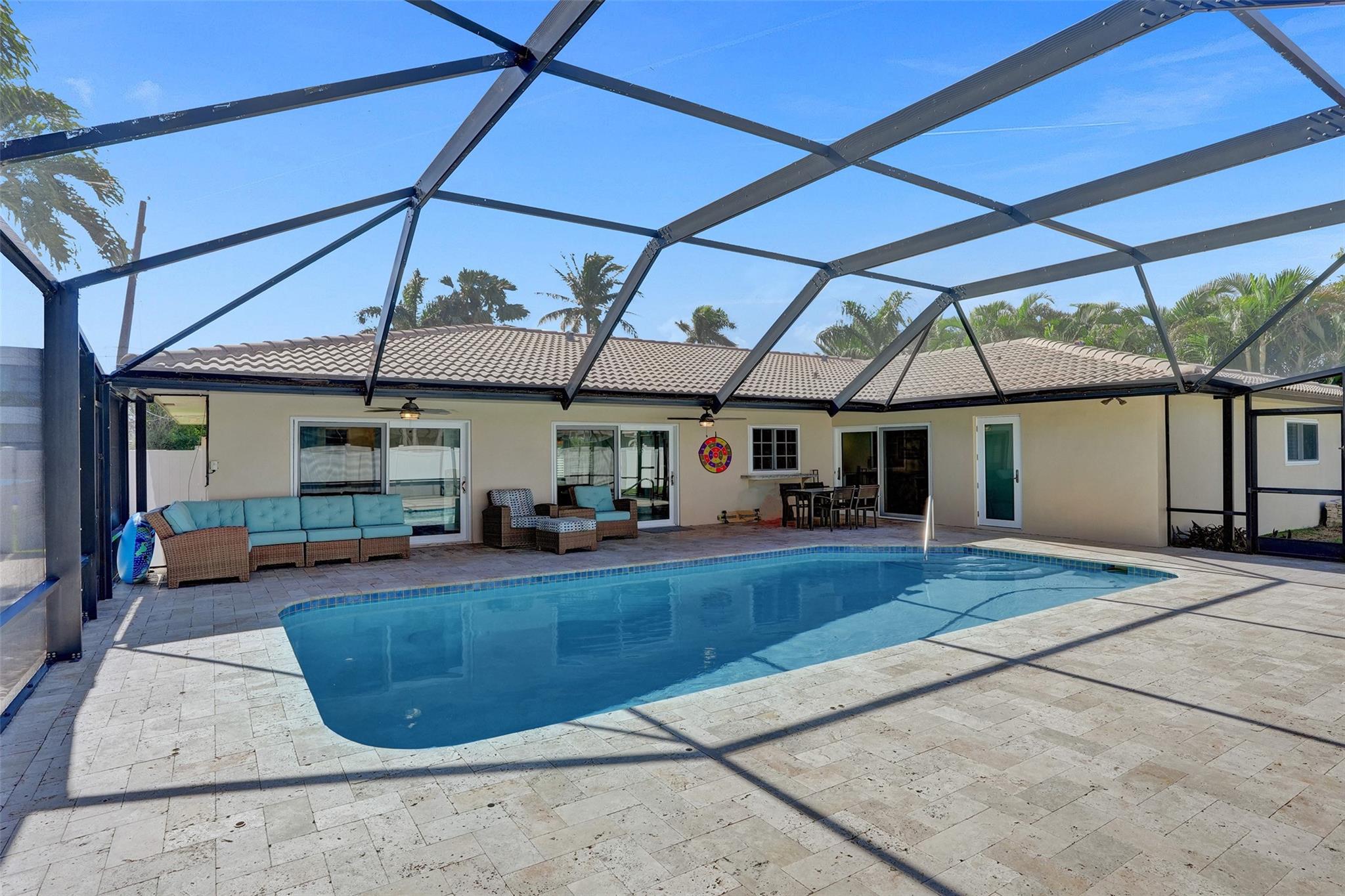 This well-maintained three-bedroom, two-bathroom home is in a prestigious neighborhood surrounded by million-dollar properties. Located east of I-95 and within walking distance to the Intracoastal, it offers an unbeatable location close to top restaurants, shopping plazas, and just 10 minutes from the renowned Mizner Park. The expansive outdoor area is perfect for entertaining, featuring a spacious screened-in pool, a large terrace ideal for gatherings, and additional green space beyond the screen for relaxation, play, or future enhancements. Filled with natural light, the home also features impact windows and plantation shutters throughout. A rare opportunity in an exclusive area. Schedule your showing today.