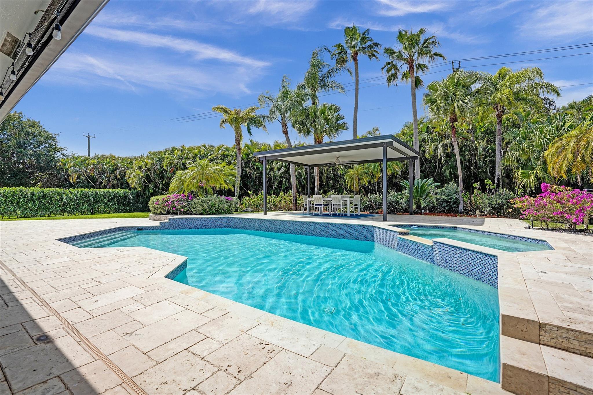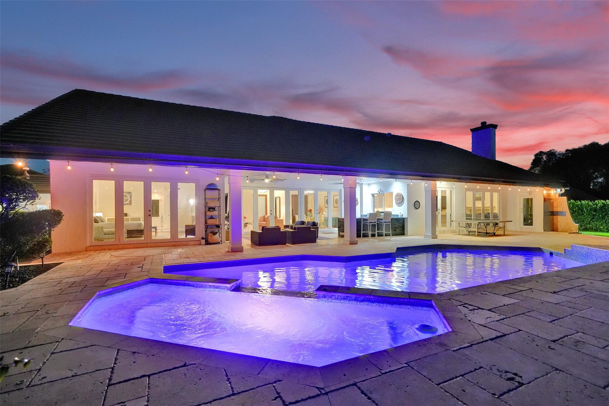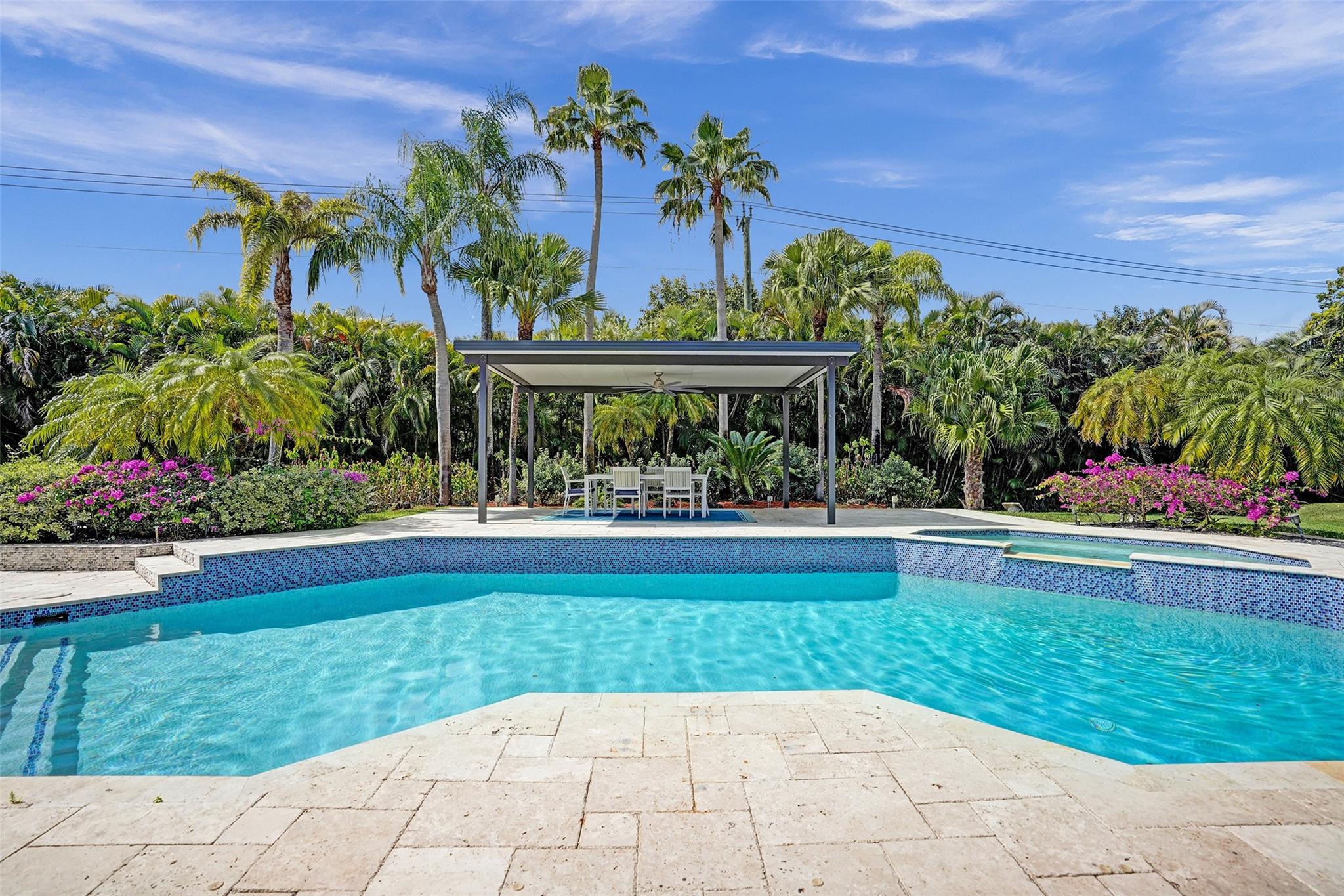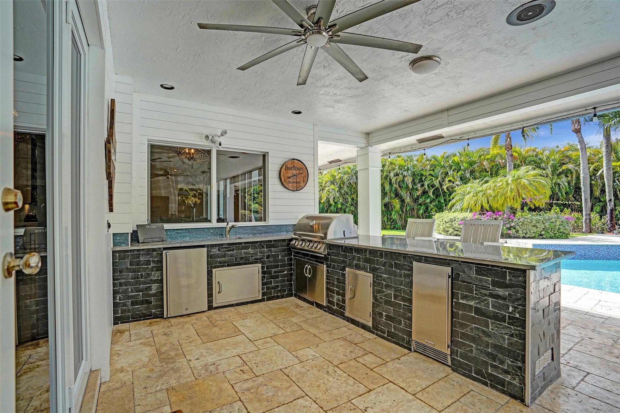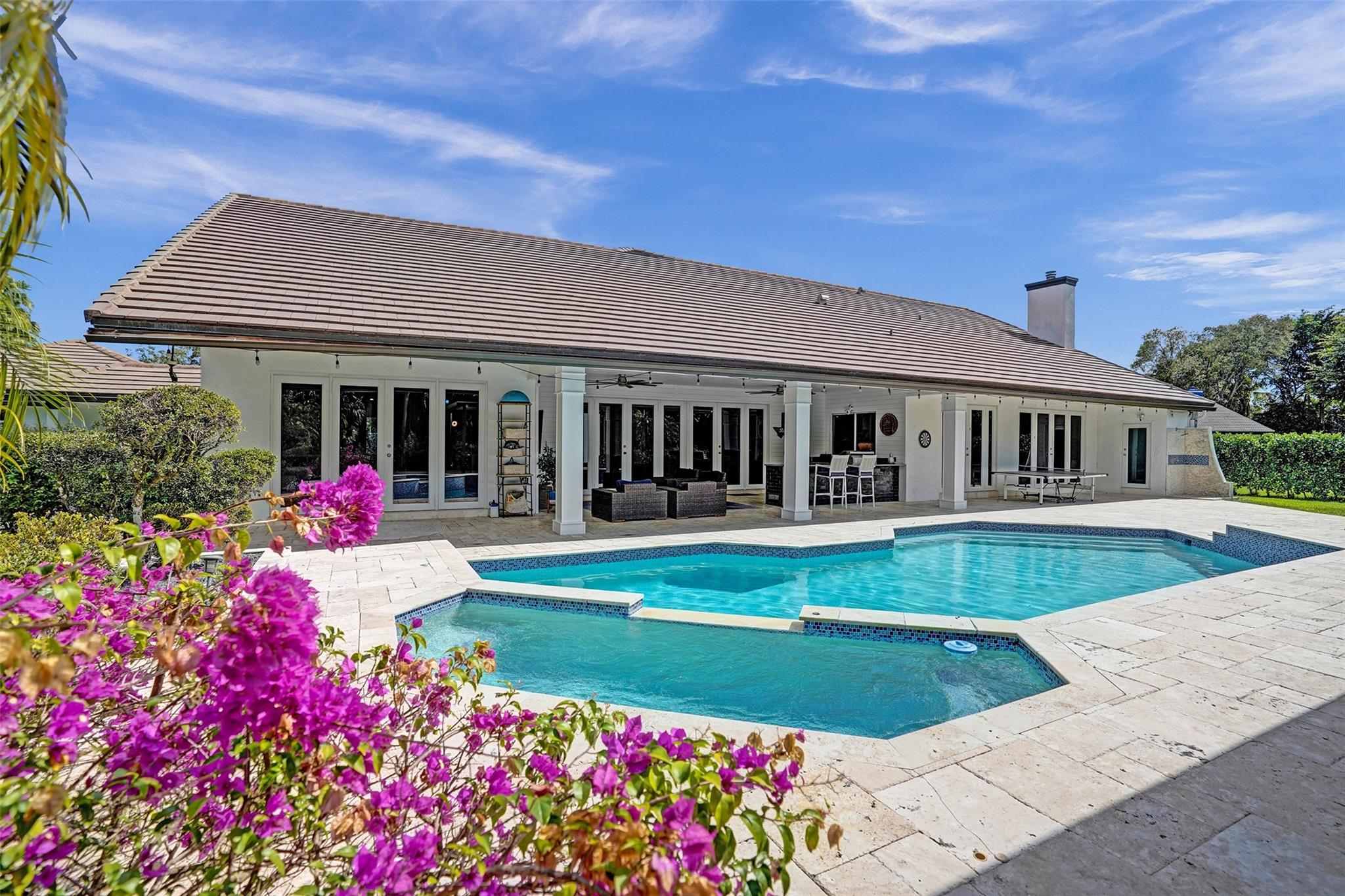 Absolutely Perfect! This beautifully updated estate home features impact windows and doors and a split floor plan that provides privacy and flexibility, making it ideal for families of all sizes. Flooded with natural light, the home boasts stunning marble flooring, a sleek new white kitchen, and a striking stacked-stone fireplace. The resort-style outdoor space features a refreshed pool and spa, marble pavers, and a summer kitchen—perfect for family gatherings and entertaining. A separate guesthouse adds even more versatility for extended family or visiting guests. With impressive exterior charm and a spacious backyard, this home is a rare gem! CONCRETE ROOF 10yrs old, 3 NEWER AC's (2 yrs old), BRAND NEW H/W HEATER, HURRICANE IMPACT THRU OUT!!
