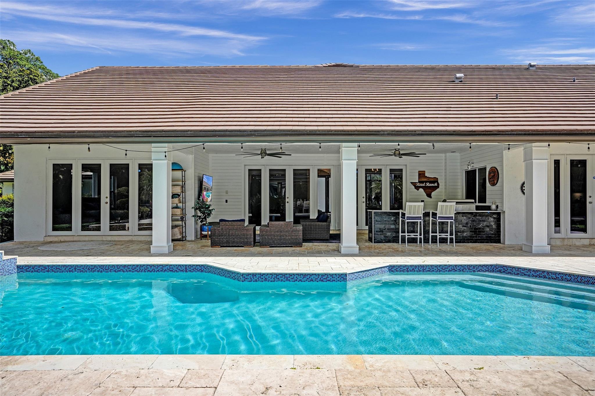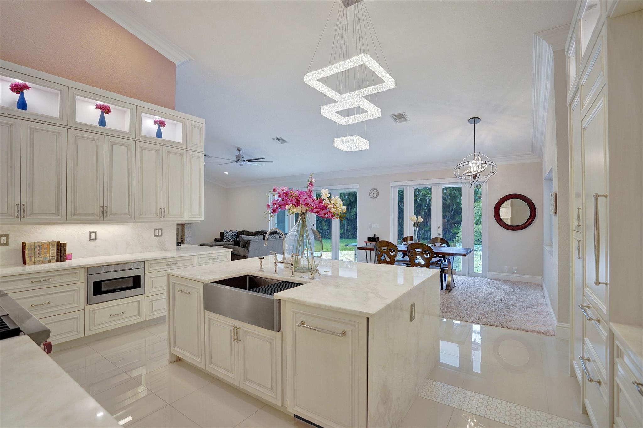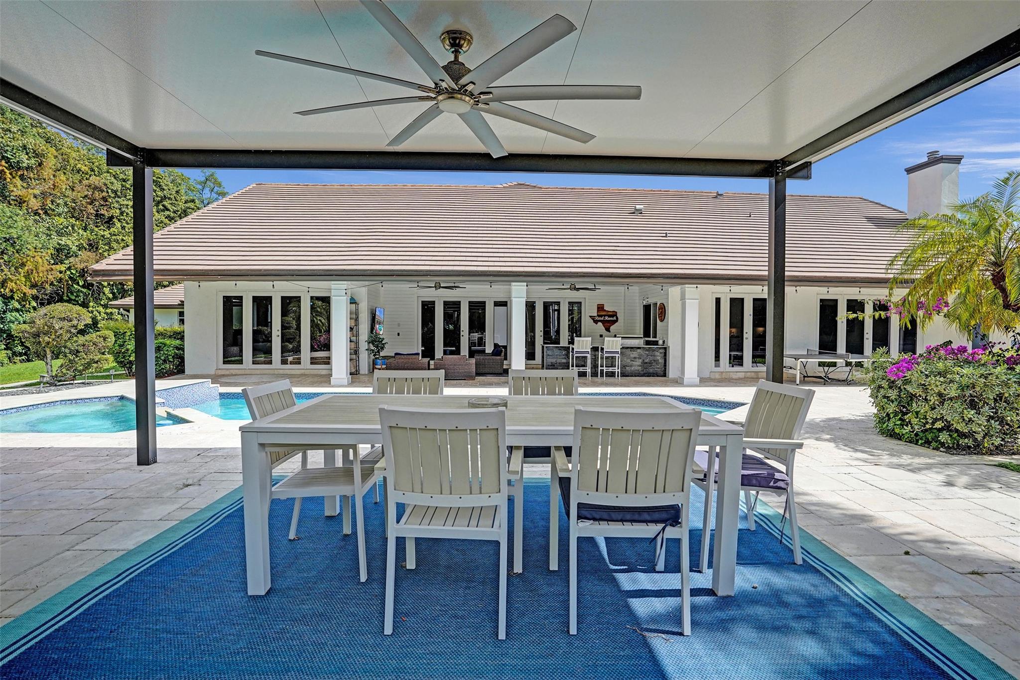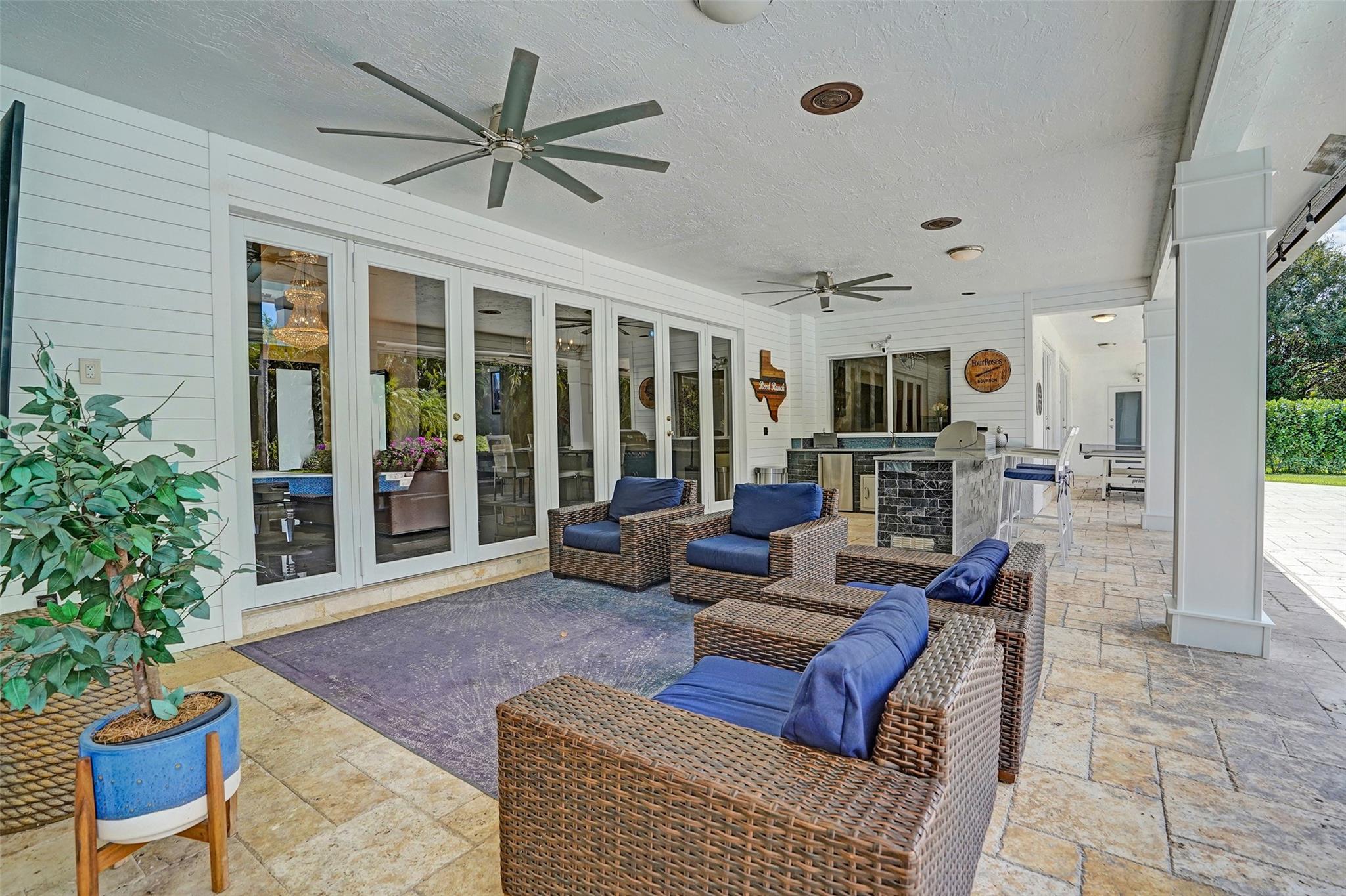 Absolutely Perfect! This beautifully updated estate home features impact windows and doors and a split floor plan that provides privacy and flexibility, making it ideal for families of all sizes. Flooded with natural light, the home boasts stunning marble flooring, a sleek new white kitchen, and a striking stacked-stone fireplace. The resort-style outdoor space features a refreshed pool and spa, marble pavers, and a summer kitchen—perfect for family gatherings and entertaining. A separate guesthouse adds even more versatility for extended family or visiting guests. With impressive exterior charm and a spacious backyard, this home is a rare gem! CONCRETE ROOF 10yrs old, 3 NEWER AC's (2 yrs old), BRAND NEW H/W HEATER, HURRICANE IMPACT THRU OUT!!
