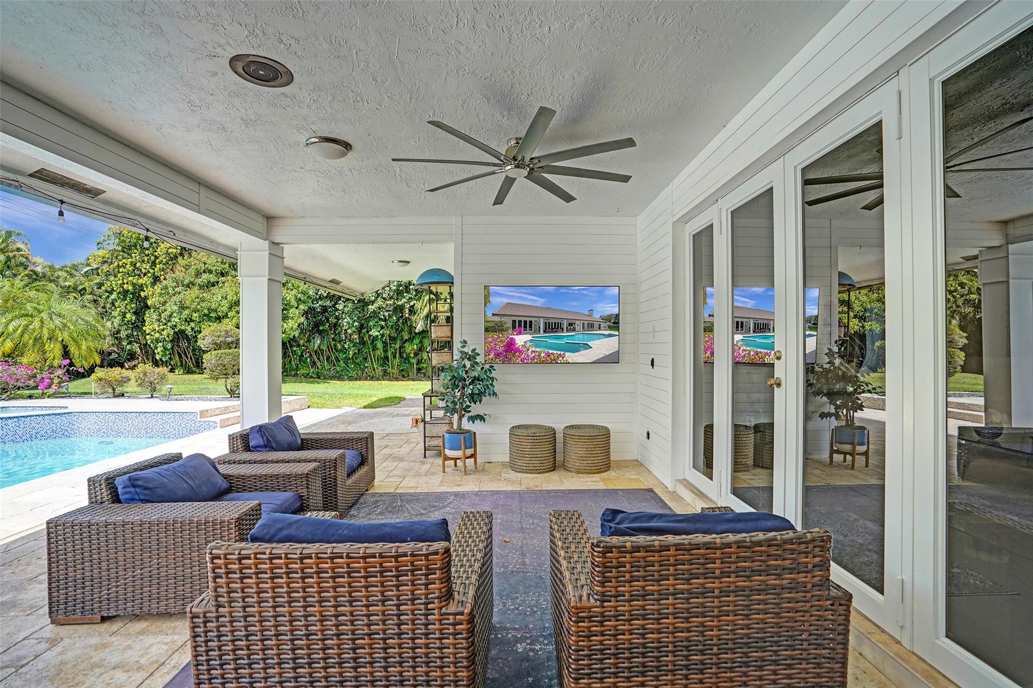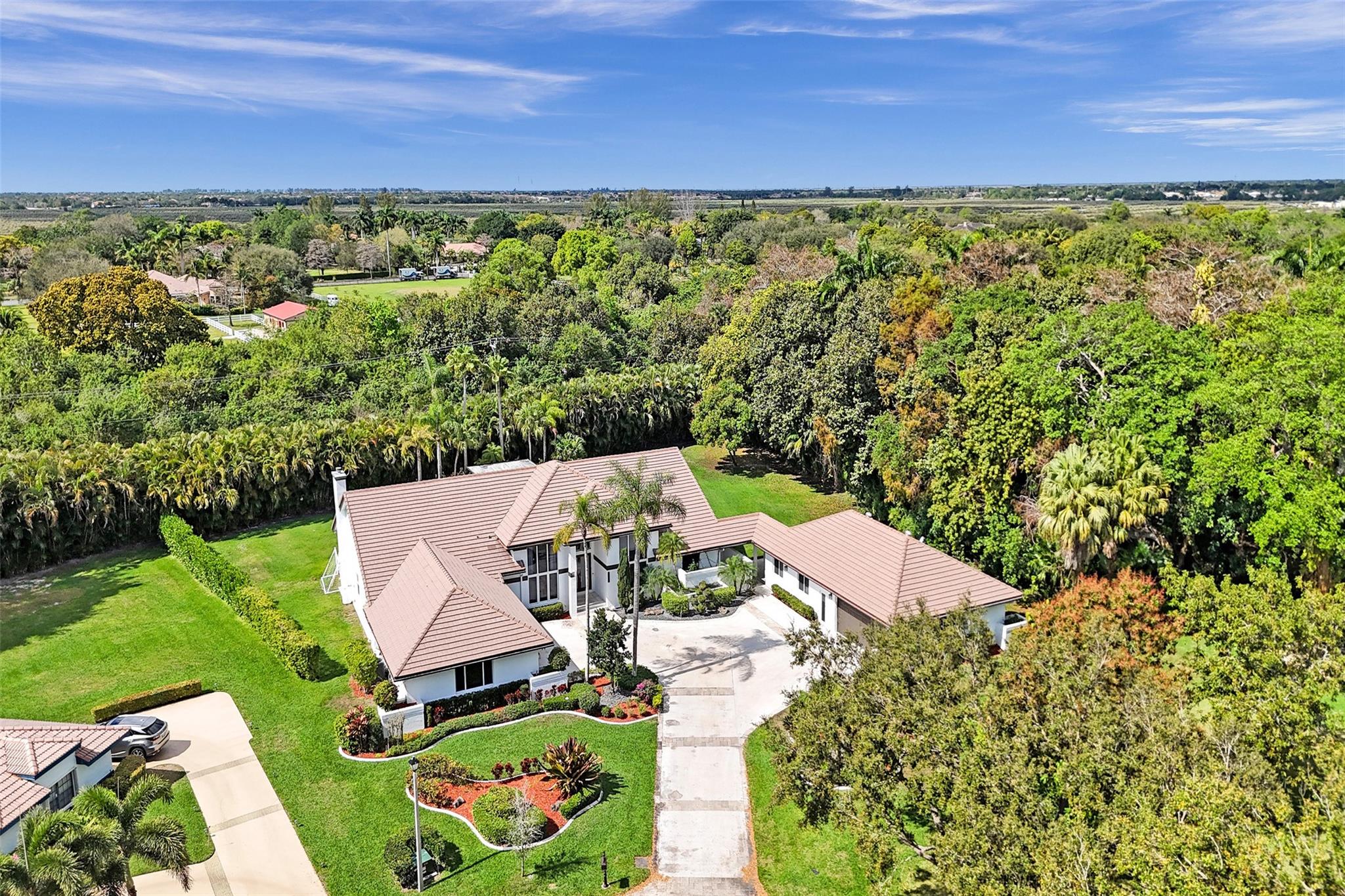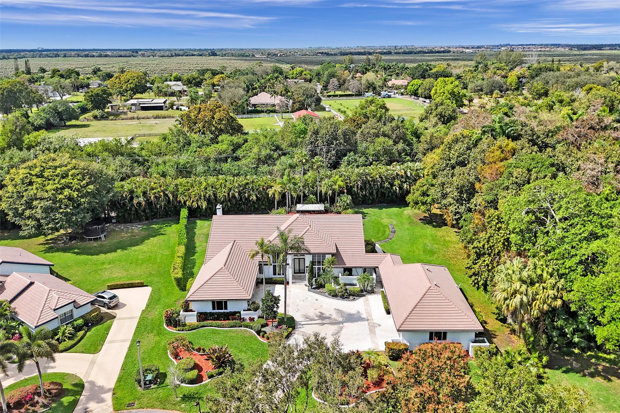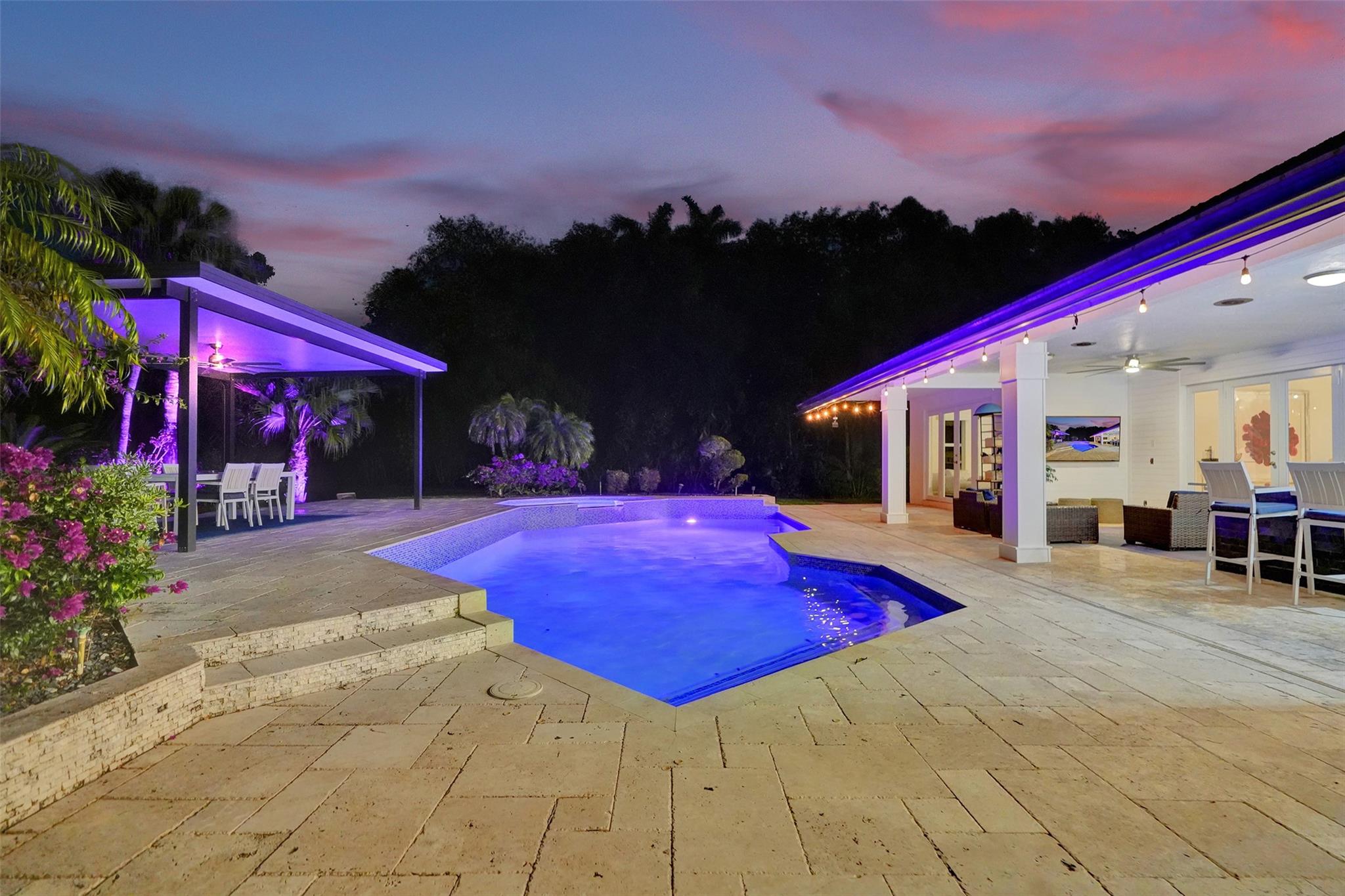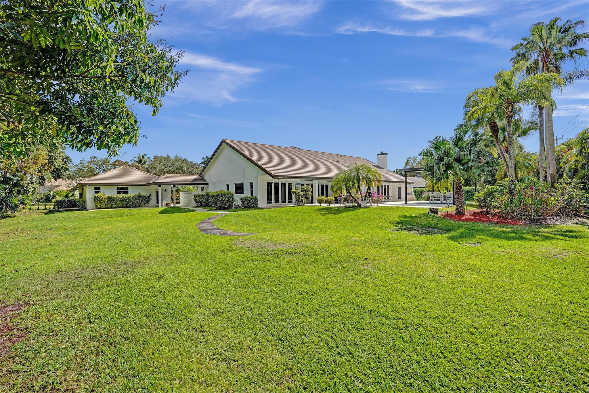 Absolutely Perfect! This beautifully updated estate home features impact windows and doors and a split floor plan that provides privacy and flexibility, making it ideal for families of all sizes. Flooded with natural light, the home boasts stunning marble flooring, a sleek new white kitchen, and a striking stacked-stone fireplace. The resort-style outdoor space features a refreshed pool and spa, marble pavers, and a summer kitchen—perfect for family gatherings and entertaining. A separate guesthouse adds even more versatility for extended family or visiting guests. With impressive exterior charm and a spacious backyard, this home is a rare gem! CONCRETE ROOF 10yrs old, 3 NEWER AC's (2 yrs old), BRAND NEW H/W HEATER, HURRICANE IMPACT THRU OUT!!