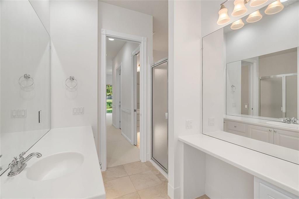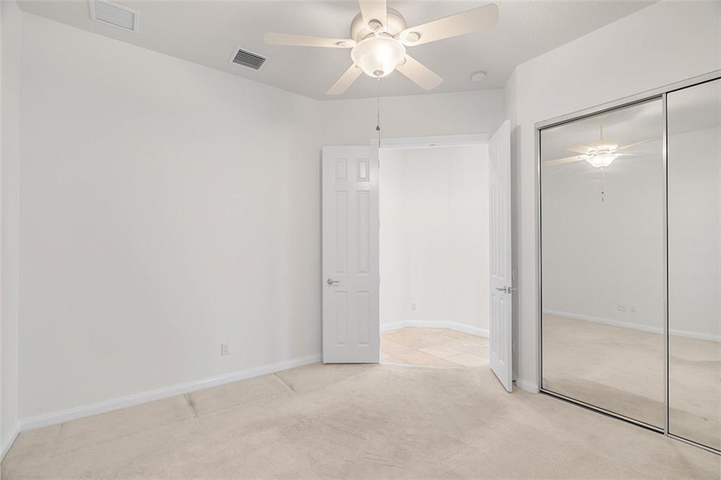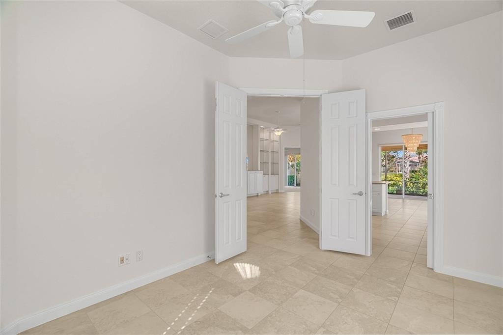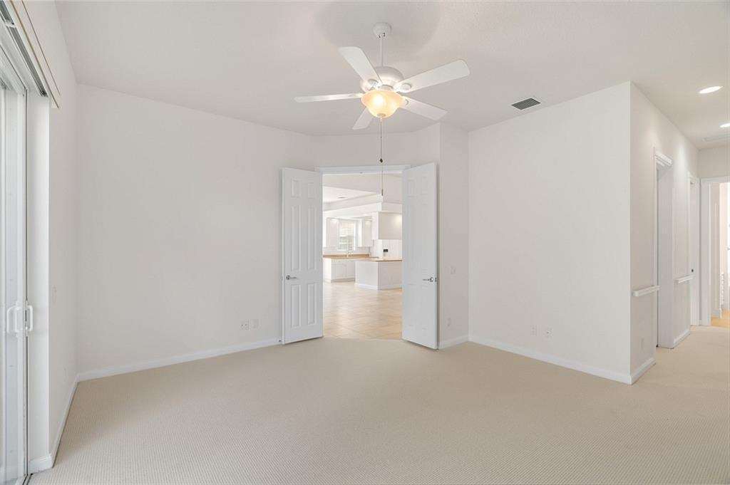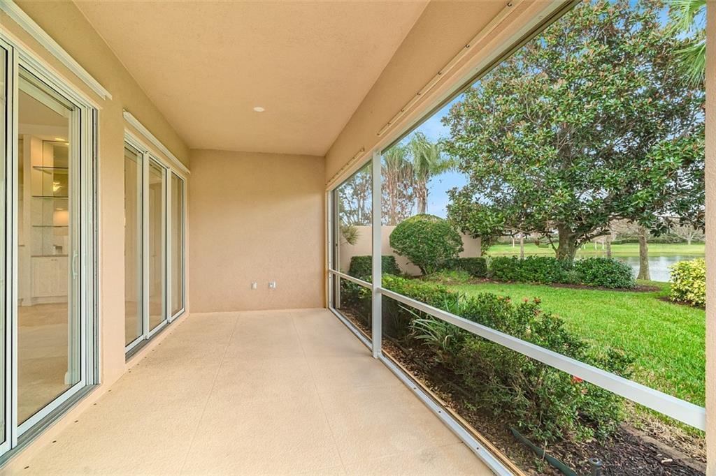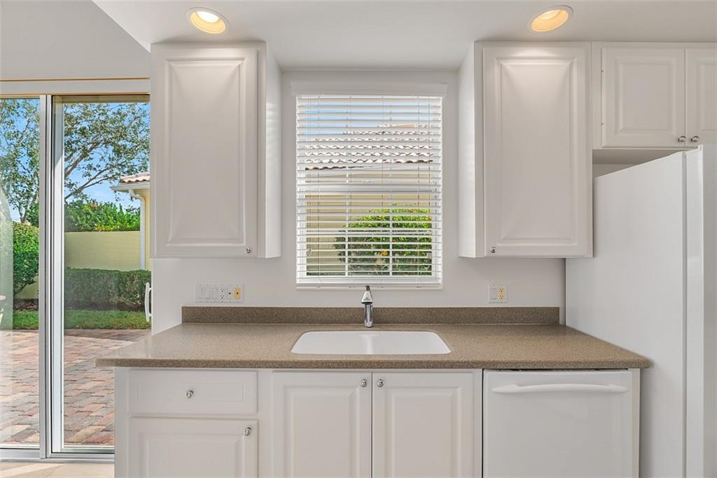 Relax and Enjoy this charming Oakmont Model Home - 3BD/3BA w/Den overlooking the lake! NEW 2025 AC; Freshly painted inside & out included the 2 car garage. The Kitchen boasts white cabinets & corian countertops; white appliances; tile throughout main living area; beautiful built-in wall unit w/glass shelves; new carpet in Primary Bedroom w/walk in the closets & his & her bathroom; accordion shutters. Extended brick paver patio to enjoy Florida's sunrises and sunsets. Resort style amenities incl. clubhouse, heated pool, tennis/pickleball courts, fitness center and gathering area for our many social events!