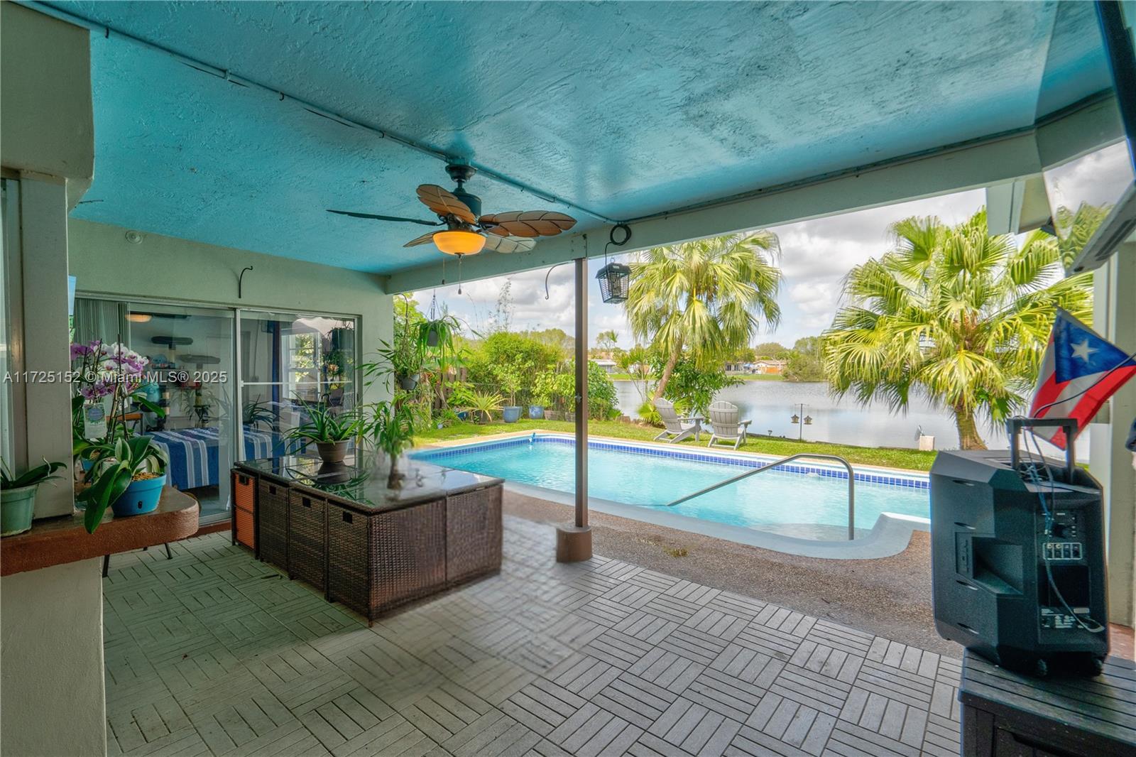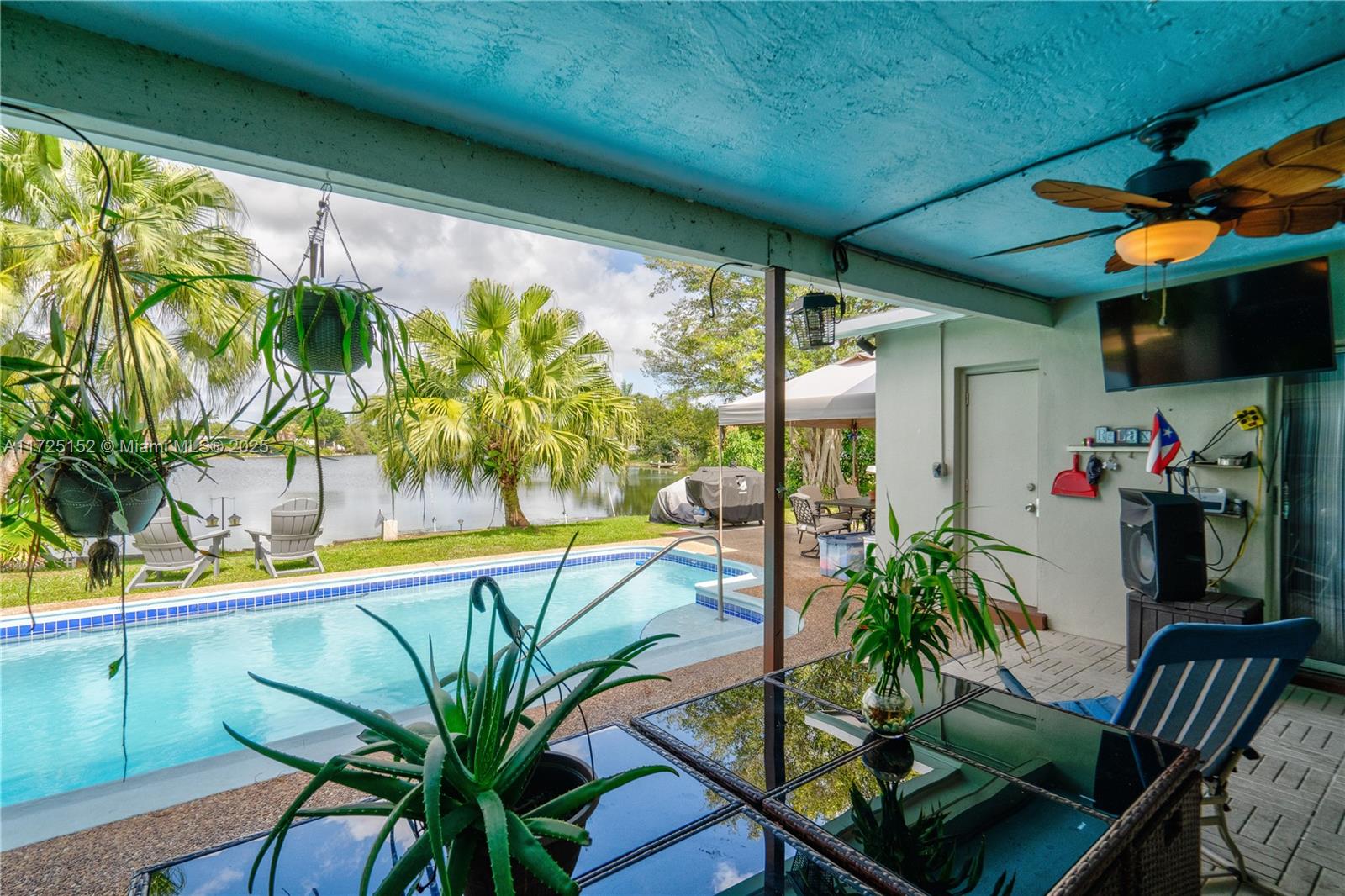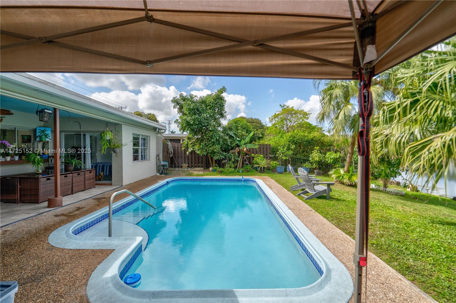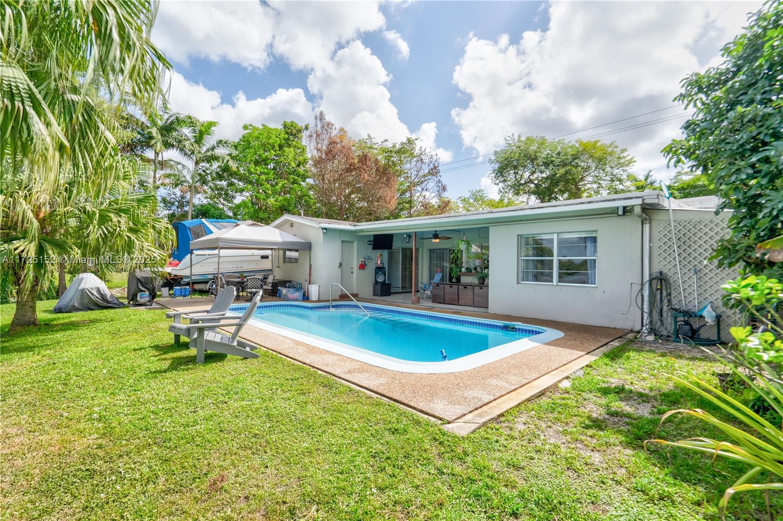 This charming home in Sunrise offers a spacious one-story layout with 3 bedrooms, 2 full baths, and 1,320 square feet of living space on one of the largest lots in the area, 9,497 sq ft. With no HOA, this property provides flexibility and convenience. The backyard features a private pool with stunning lake views, a covered patio, and ample space for entertaining. The home includes extra parking on the side for an RV or boat, a one-car garage, and a large driveway that accommodates up to four or more cars. Inside, the freshly painted interior boasts stainless steel appliances and a tankless water heater. The property is surrounded by lush tropical landscaping, adding privacy and charm. Located in a desirable neighborhood, this home is a rare find with plenty of space and modern updates.