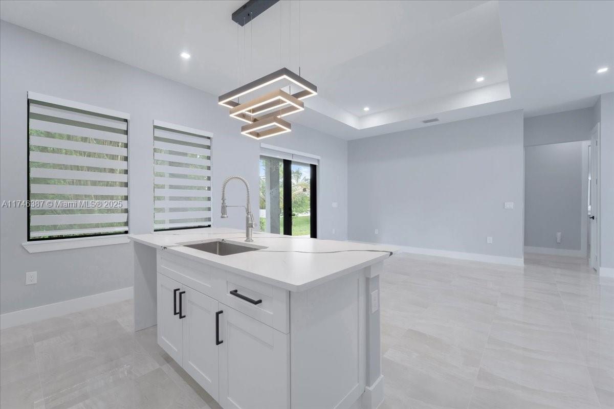 NEW MODERN STYLE MODEL!This stunning new construction home boasts 3 bedrooms, 3 full bathrooms, a 2 car garage and an OUTDOOR KITCHEN, with storm Impact resistant doors and windows. The modern floor plan is truly unique, boasting quartz countertops, and custom, luxurious Floor and wall tile throughout. Updated LED lighting and plumbing fixtures, double showers, all add a touch of elegance, While the designer zebra shades provide privacy and style. With breathtaking 10ft to 14ft ceilings and 8ft tall doors, this home feels spacious and airy, creating a welcoming, resort styled atmosphere. The oversized lot on a Cul-de Sac which offers plenty of space for outdoor activities and plenty of room for pool and RV / Boat. The outdoor kitchen is perfect for hosting summer barbecues.