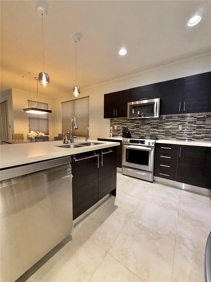 Beautiful 4 bedroom/3.5 bathroom 2 story home in private gated community, Modern open concept kitchen, quartz countertops, ceramic floor all throughout 1st floor and wood in second floor, glass stairwell, impact windows, Two master bedroom, custom closets large backyard. There is a 1 garage & a driveway for 3 cars, visitor parking in from of unit. Walking distance from club house. The HOA fee includes cable, alarm, high-speed internet/fiber optics with pool, gym, sauna, game room, playground, & new BBQ area overlooking the lake Excellent & quiet community. Near shopping centers, highways and excellent schools. Tex for a private tour!