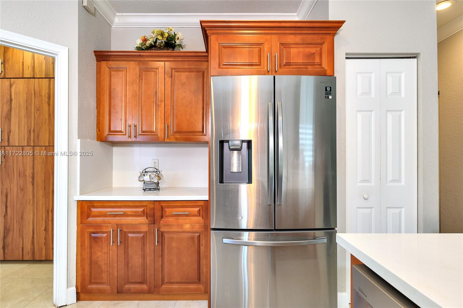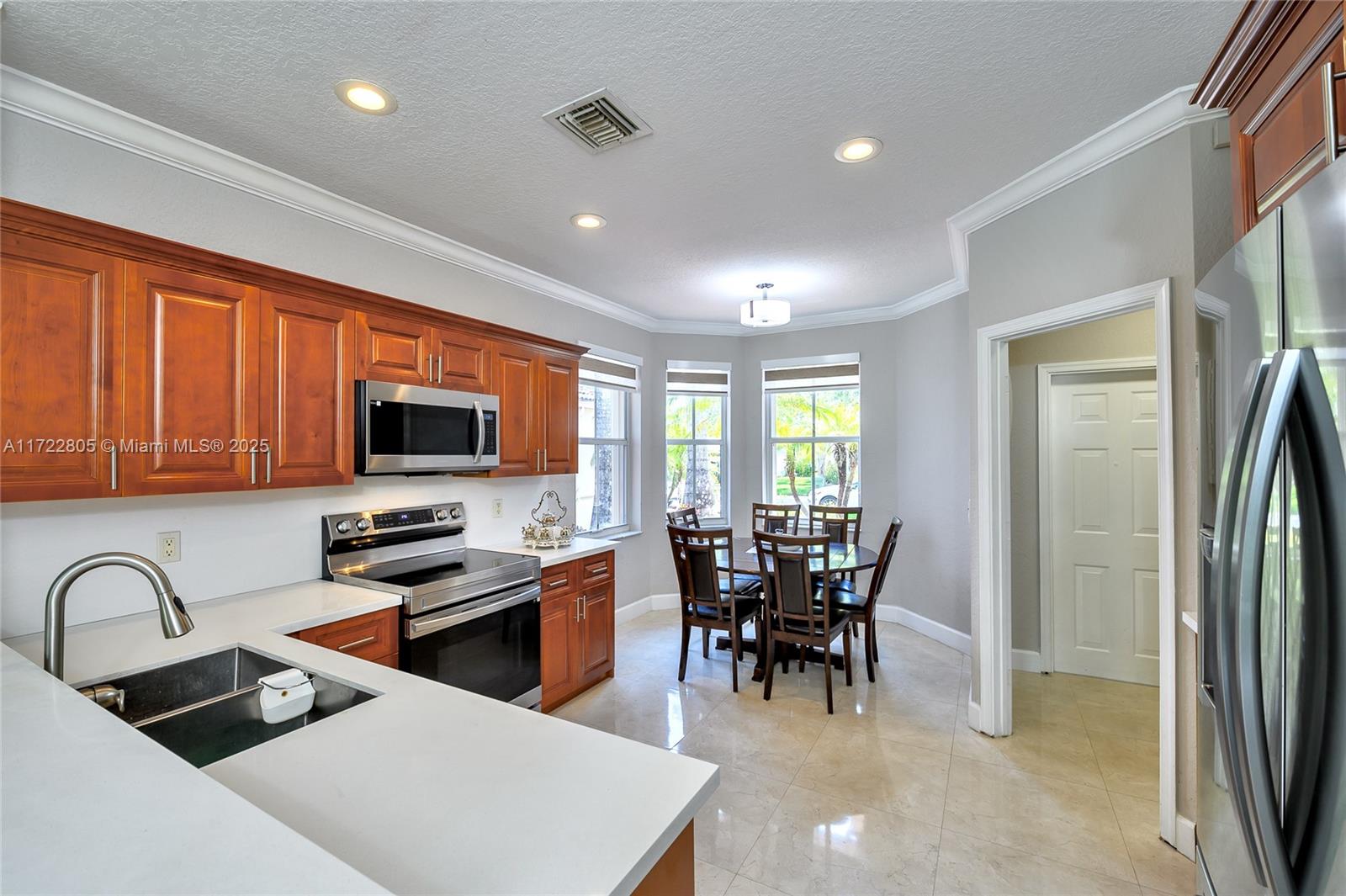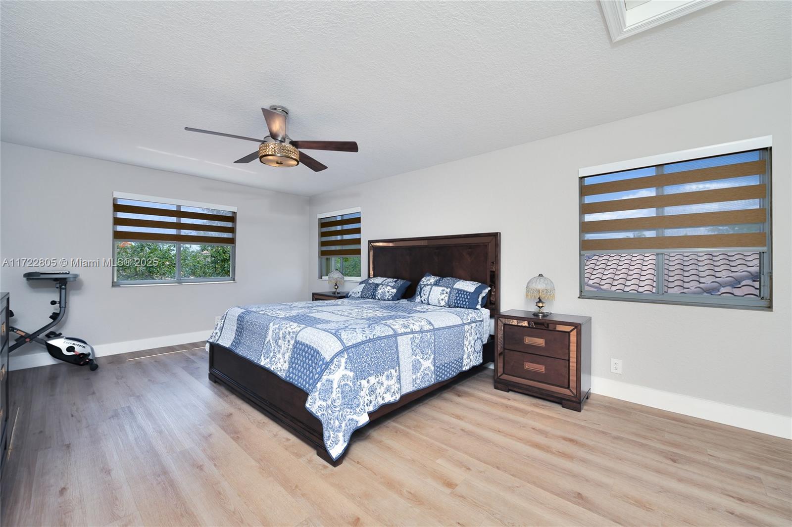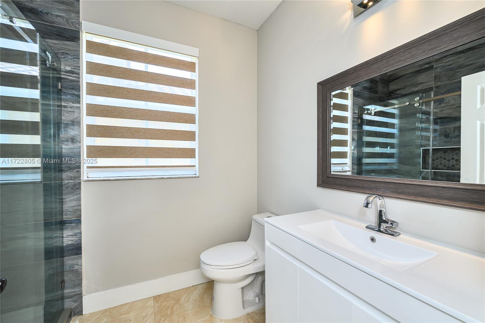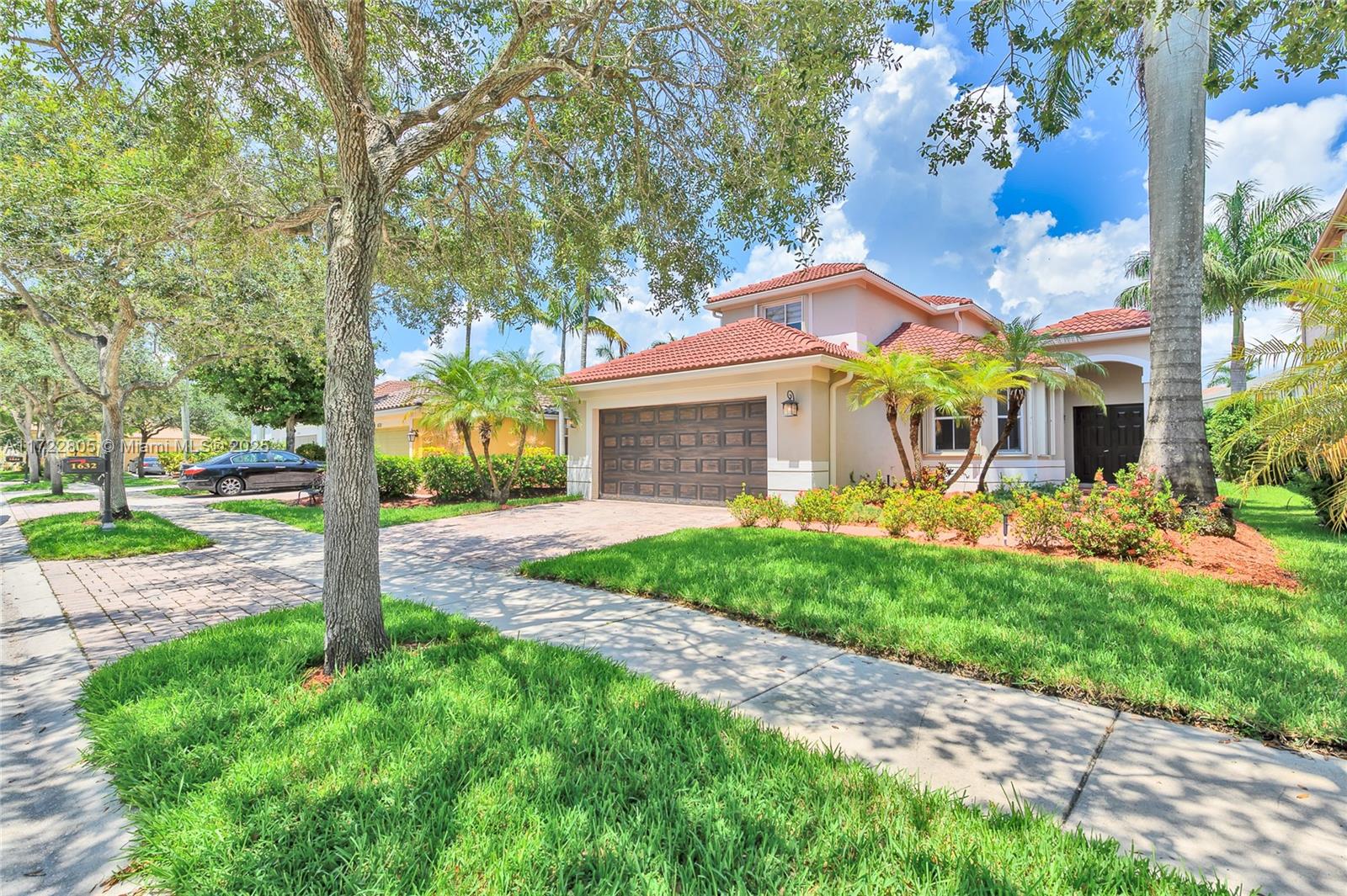 Single family home in the desirable community of Savanna with NEW ROOF installed in February 2025 (+gutters), with 4 bedrooms and 3 full baths on two floors. A fully renovated 2 story model with 2 master rooms. It has 3 rooms on the 1st floor & a bigger suite on the second floor. Beautiful Spanish porcelain flooring downstairs & newer laminate flooring on the 2nd floor. The updated kitchen is a dream with tons of cabinets & countertop with full backsplash (critsal white). Renovated 2 bathrooms with Italian porcelain on the floor and walls, new toilets, new medicine cabinets, new LED mirrors. New blinds & appliances. Accordion shutters in all windows.Savanna is an excellent family oriented community with a Resort style Club House featuring two swimming pools, and an amazing kids pool area.