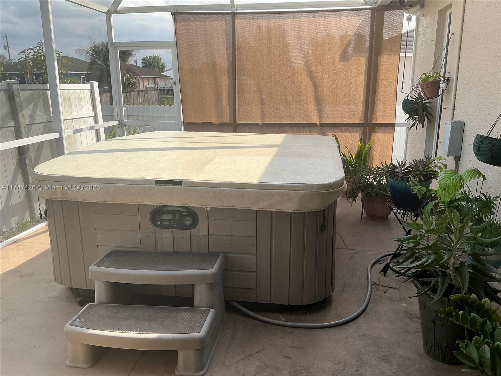 Beautifully remodeled home with in-law quarters and stunning outdoor space. Located in a highly desirable area close to schools, shopping, restaurants, and major roads making it an ideal choice for families or those who love convenience. The garage has been expertly converted into a guest or in-law quarters. Step outside to your private oasis - a large screened in lanai with a hot tub, perfect for relaxing in the evenings. The lot is surrounded by an aluminum fence for privacy and features a variety of fruit trees, a storage shed, and ample space for outdoor activities. This property is being sold by a motivated seller. Schedule your showing today!