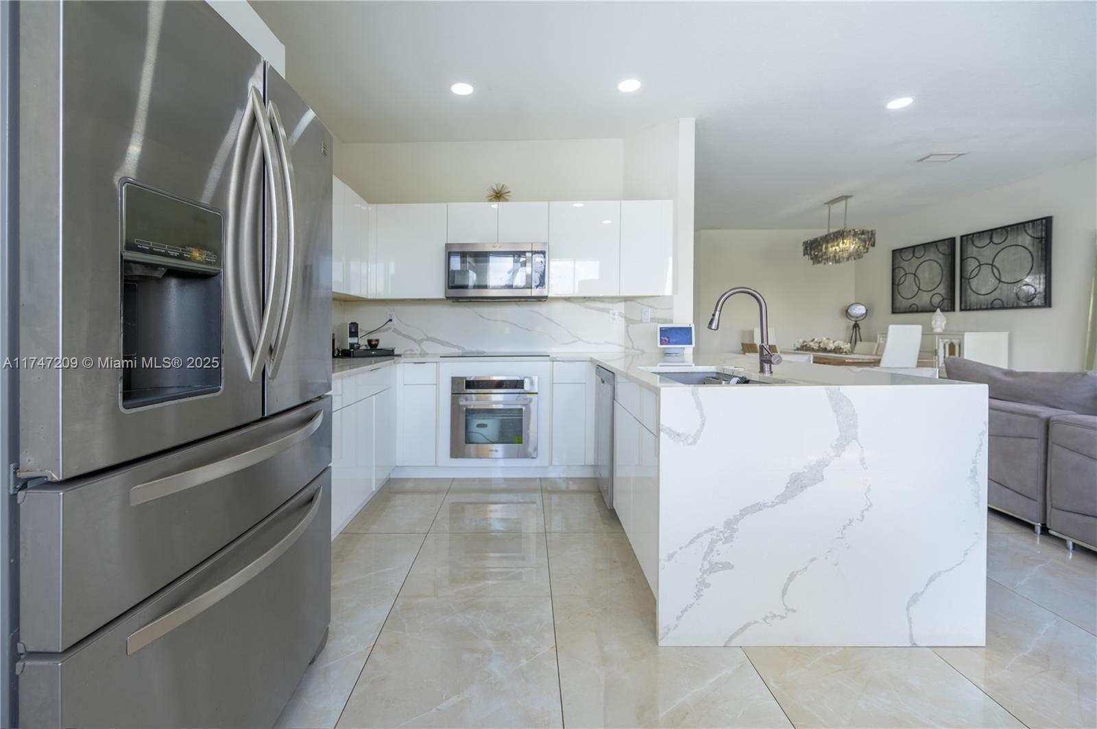 This luxurious, newly remodeled 4-bedroom townhouse offers elegance, space, and prime location. With 2.5 bathrooms and a bonus room in the garage, it provides flexibility for an office, gym, or guest space. Positioned in a top location with a stunning lake view, open land on the side, and extra windows, it enjoys abundant natural light. The renovation features premium materials in the kitchen, bathrooms, bedrooms, and living areas. The modern kitchen includes high-end appliances and a breakfast nook overlooking the patio. The spacious patio faces the lake, has a tiled floor, and is pre-wired for TV and sound, making it perfect for entertaining. This unique, high-end property is the best in the area, offering comfort, style, and breathtaking views. Don't miss out