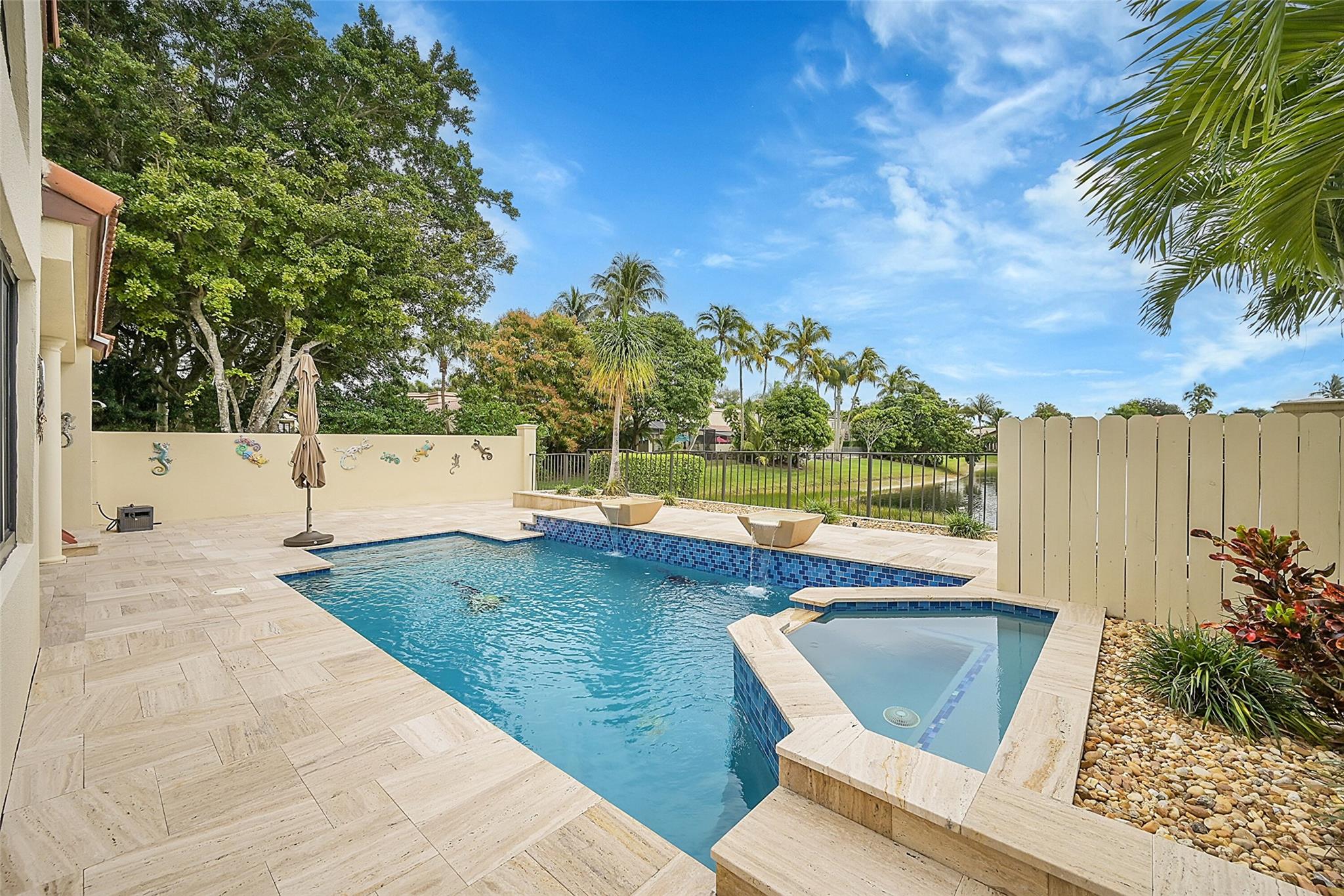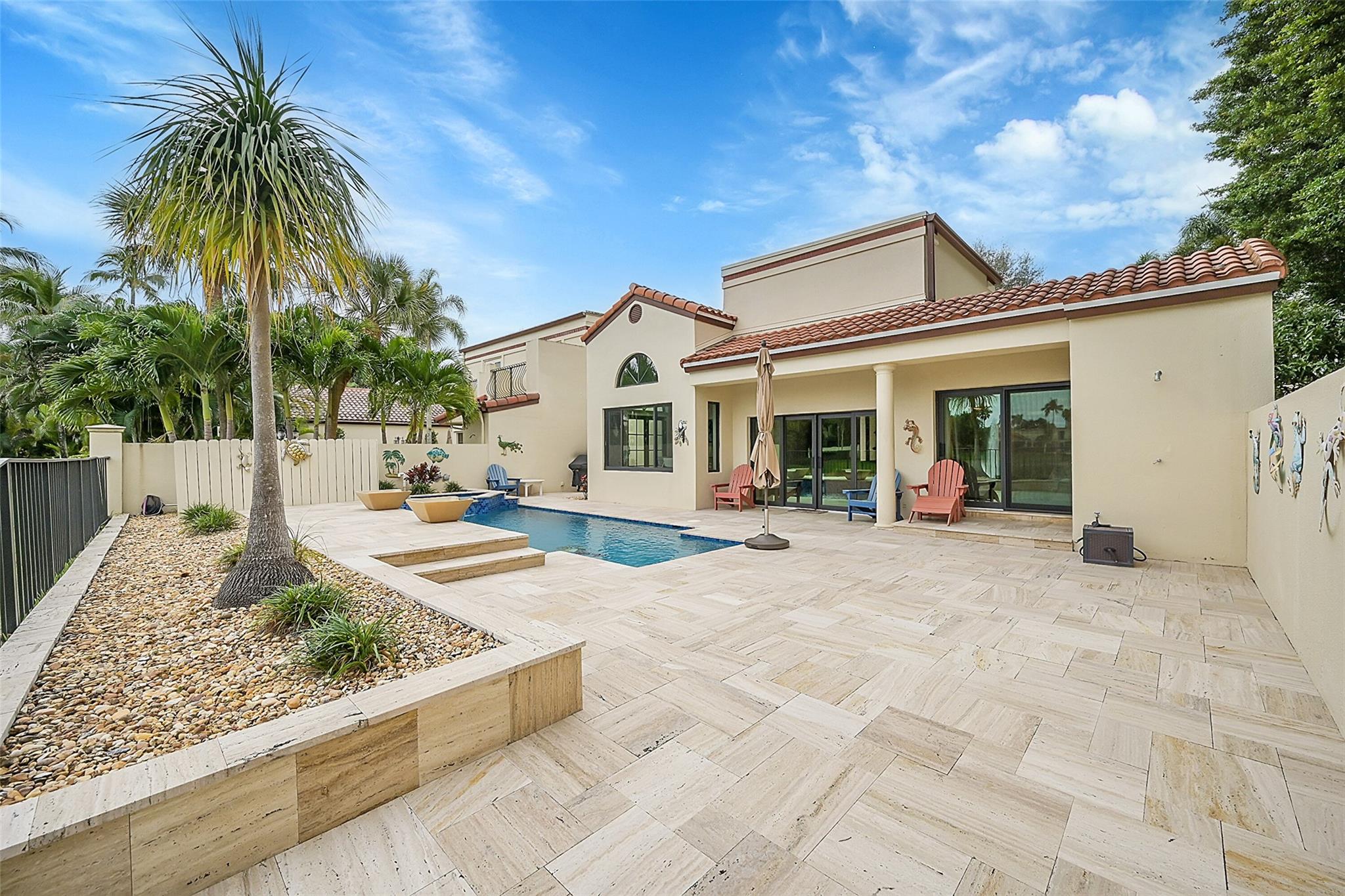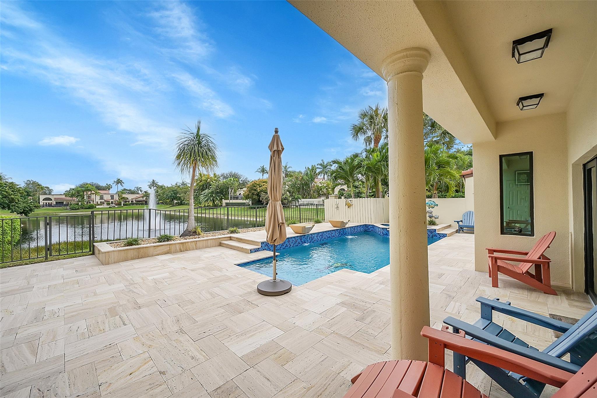 Move in ready home in the highly desirable Boca Pointe neighborhood! Membership optional - seasonal memberships available - perfect for snowbirds! ALL IMPACT WINDOWS & DOORS! Newer roof. Marble flooring throughout. Kitchen features new white shaker cabinets, granite countertops, & stainless steel appliances. Formal dining room overlooks the beautiful pool and lake view. Large master bedroom features 2 closets - 1 walk in. Master bathroom was completely remodeled and features XL shower w/ bench & a dual-sink vanity. 2nd bathroom also updated & modern. Pool area is a work of art & features separate pool bathroom, travertine tile deck, new diamondbrite, salt water system, spa & pool heater overlooking the long lake view w/ peaceful fountain feature.