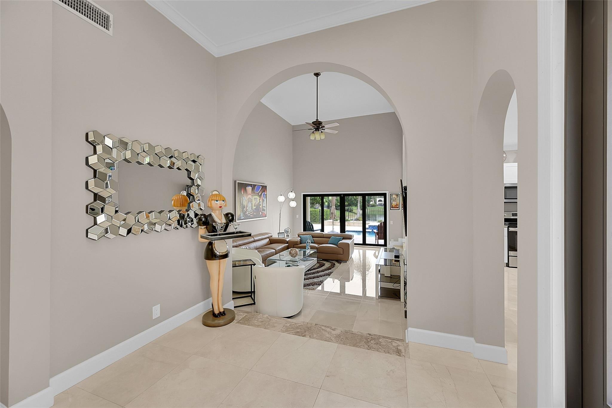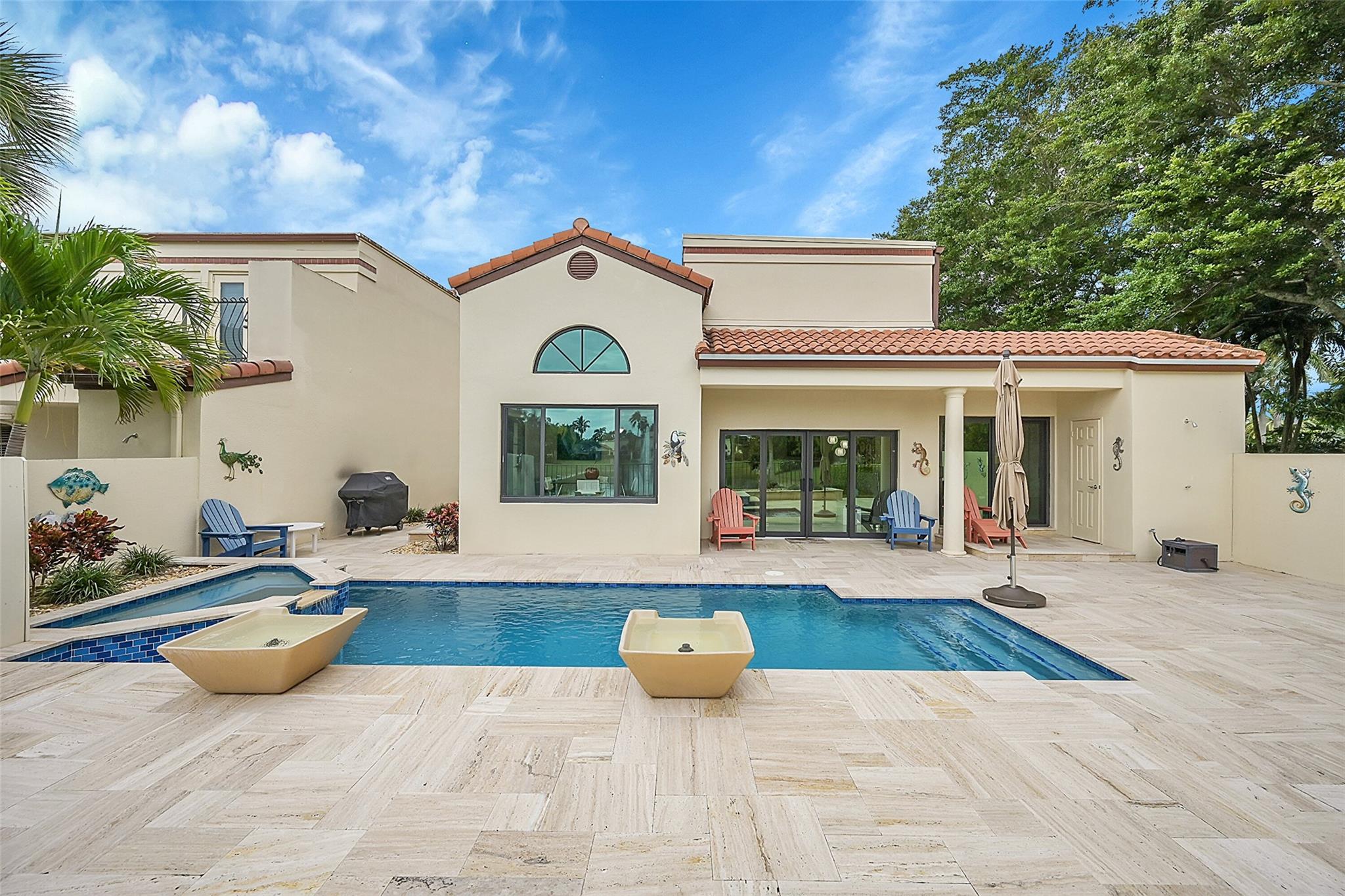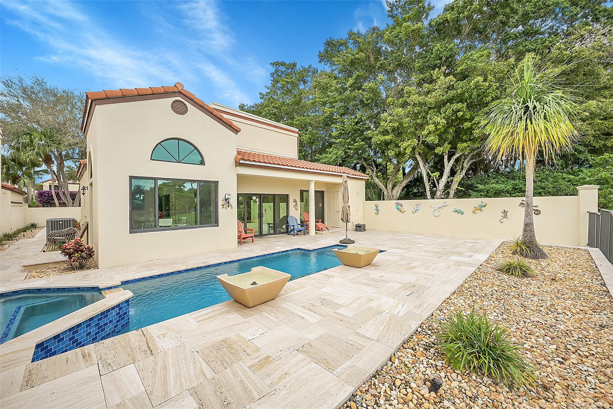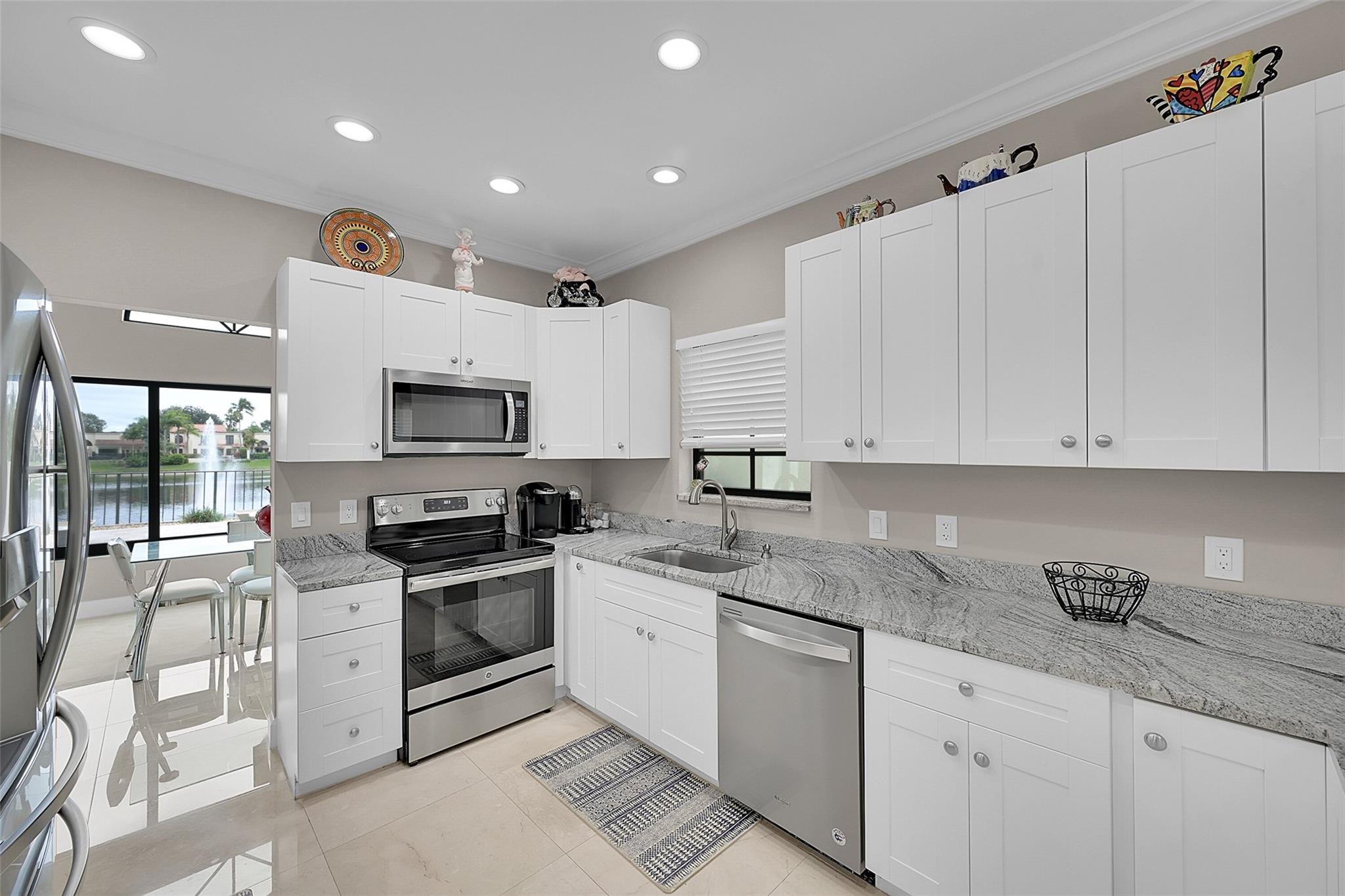 Move in ready home in the highly desirable Boca Pointe neighborhood! Membership optional - seasonal memberships available - perfect for snowbirds! ALL IMPACT WINDOWS & DOORS! Newer roof. Marble flooring throughout. Kitchen features new white shaker cabinets, granite countertops, & stainless steel appliances. Formal dining room overlooks the beautiful pool and lake view. Large master bedroom features 2 closets - 1 walk in. Master bathroom was completely remodeled and features XL shower w/ bench & a dual-sink vanity. 2nd bathroom also updated & modern. Pool area is a work of art & features separate pool bathroom, travertine tile deck, new diamondbrite, salt water system, spa & pool heater overlooking the long lake view w/ peaceful fountain feature.